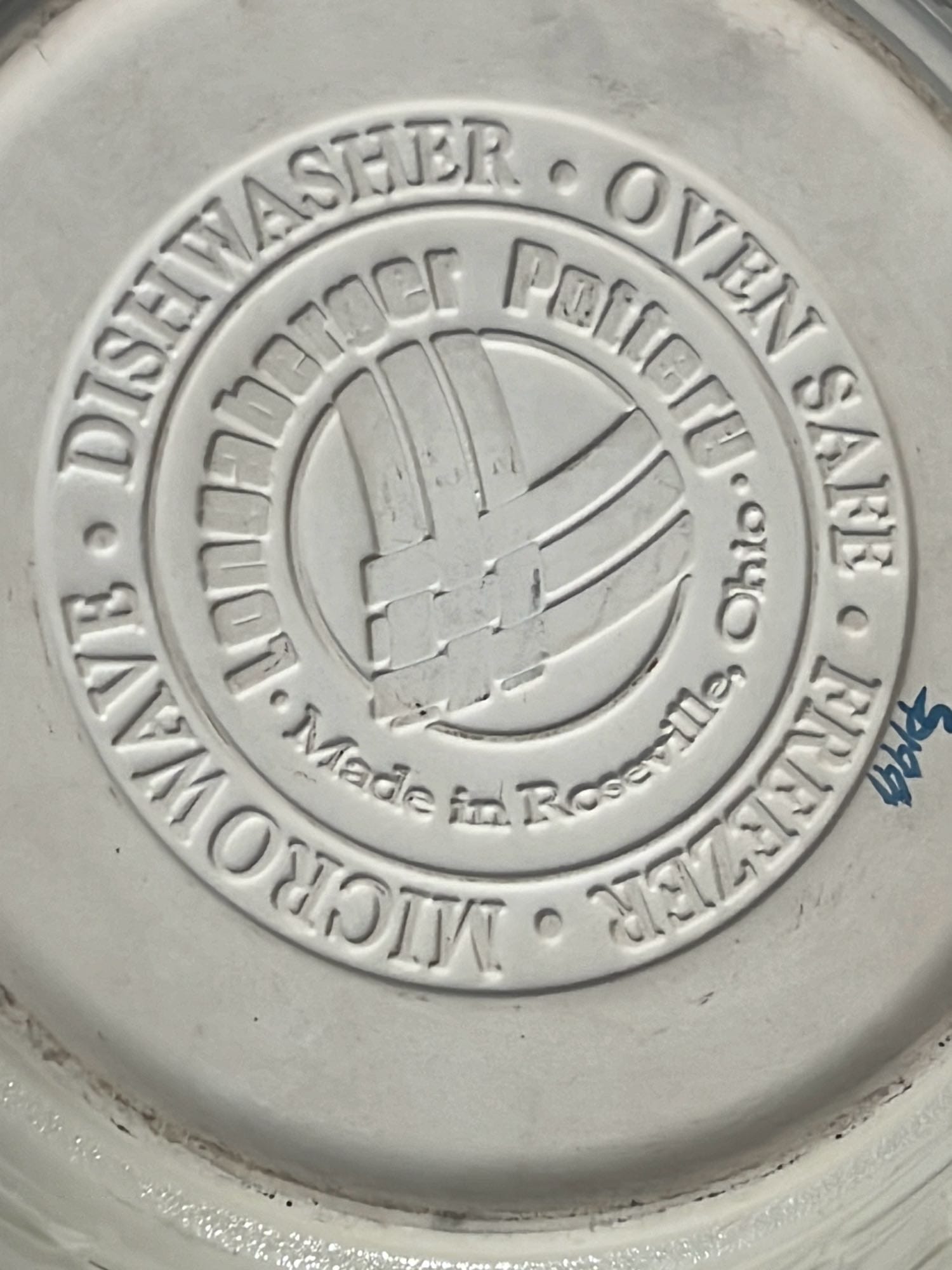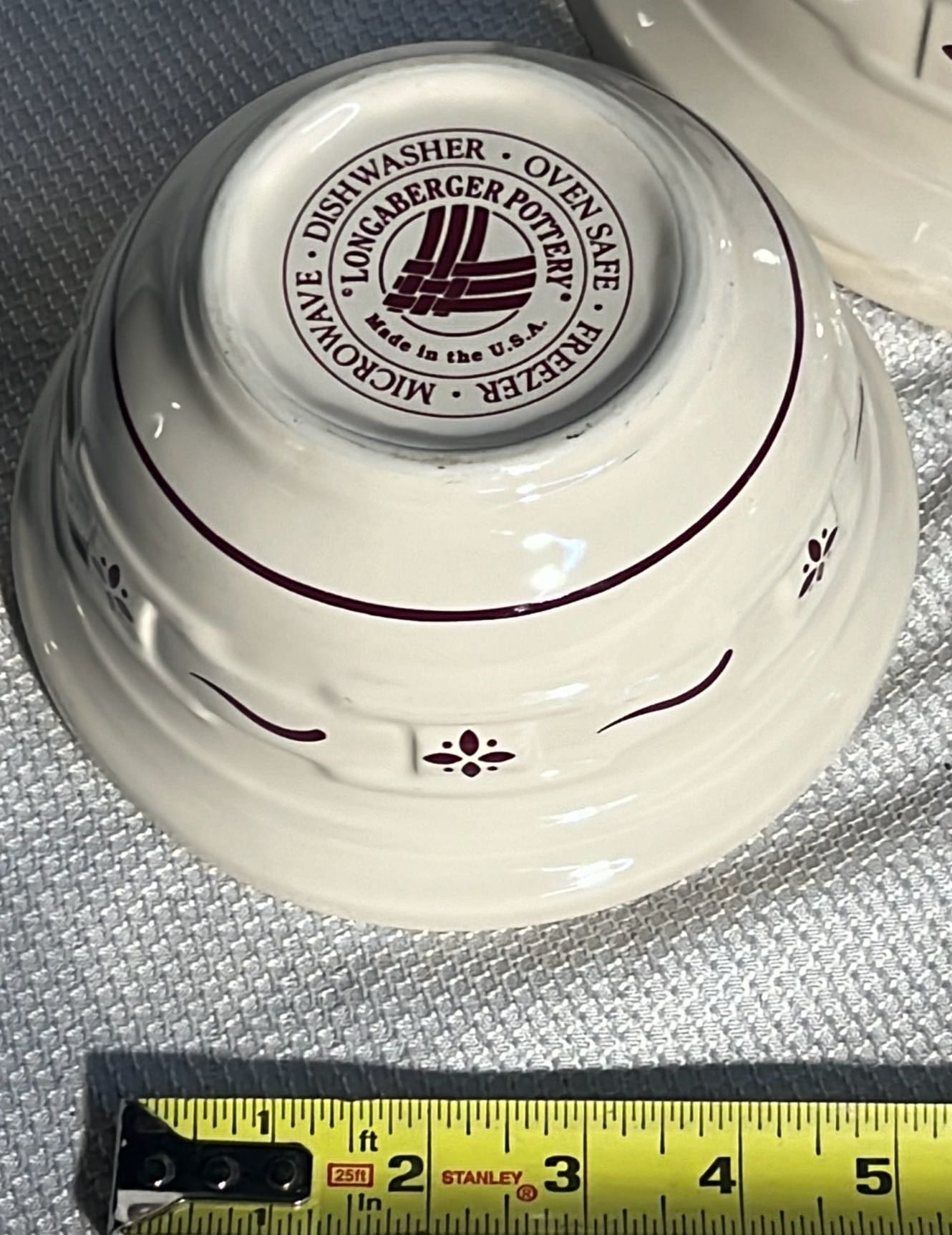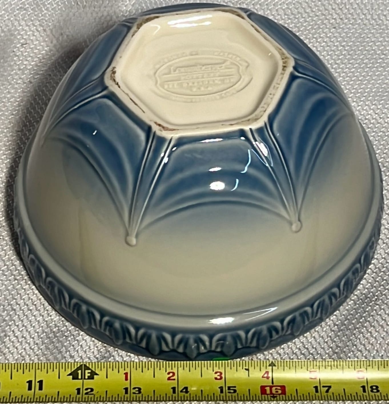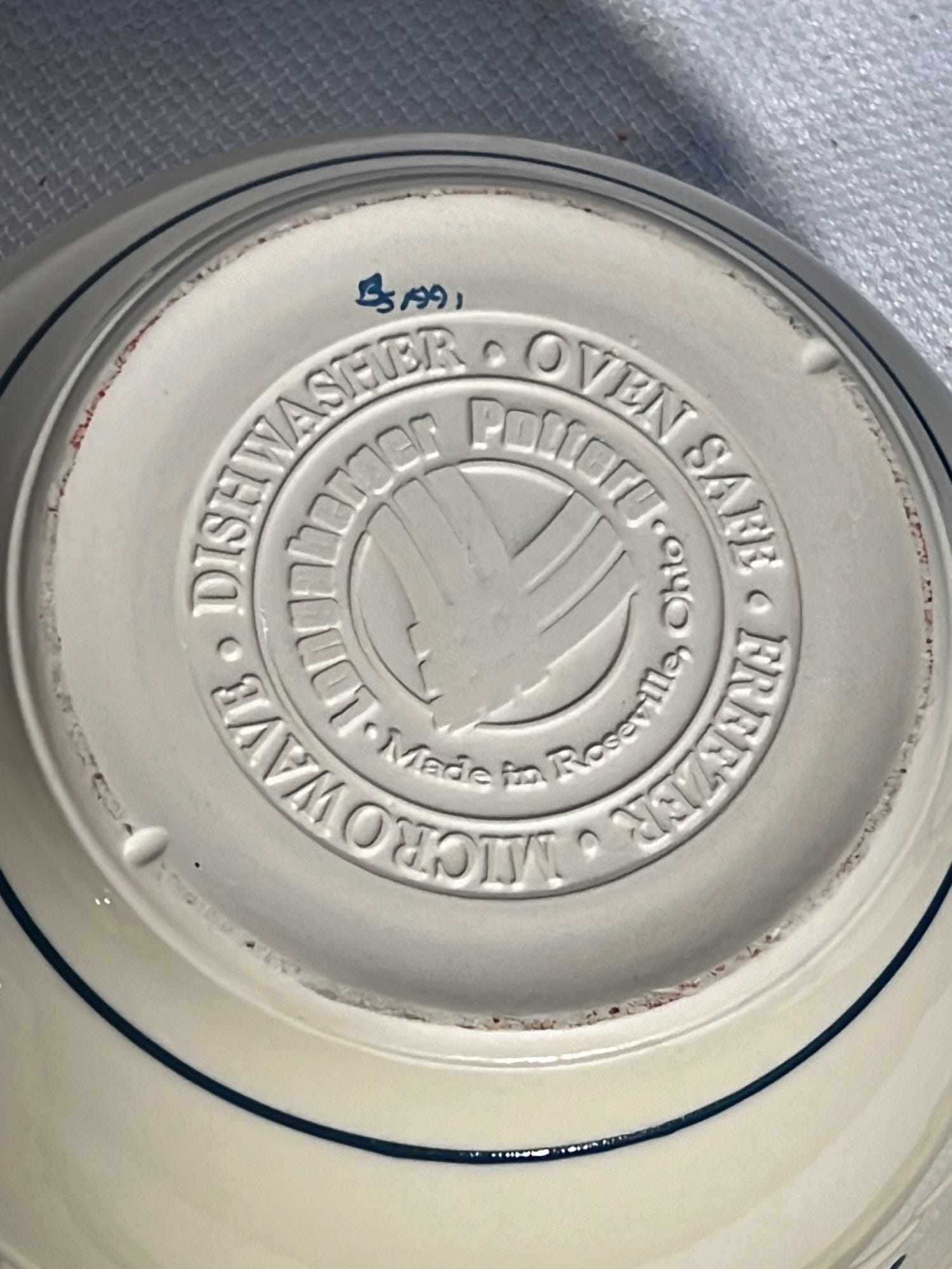 868 2- Longaberger Pottery 1st edition woven Traditions Blue Bowls 8”, 10”