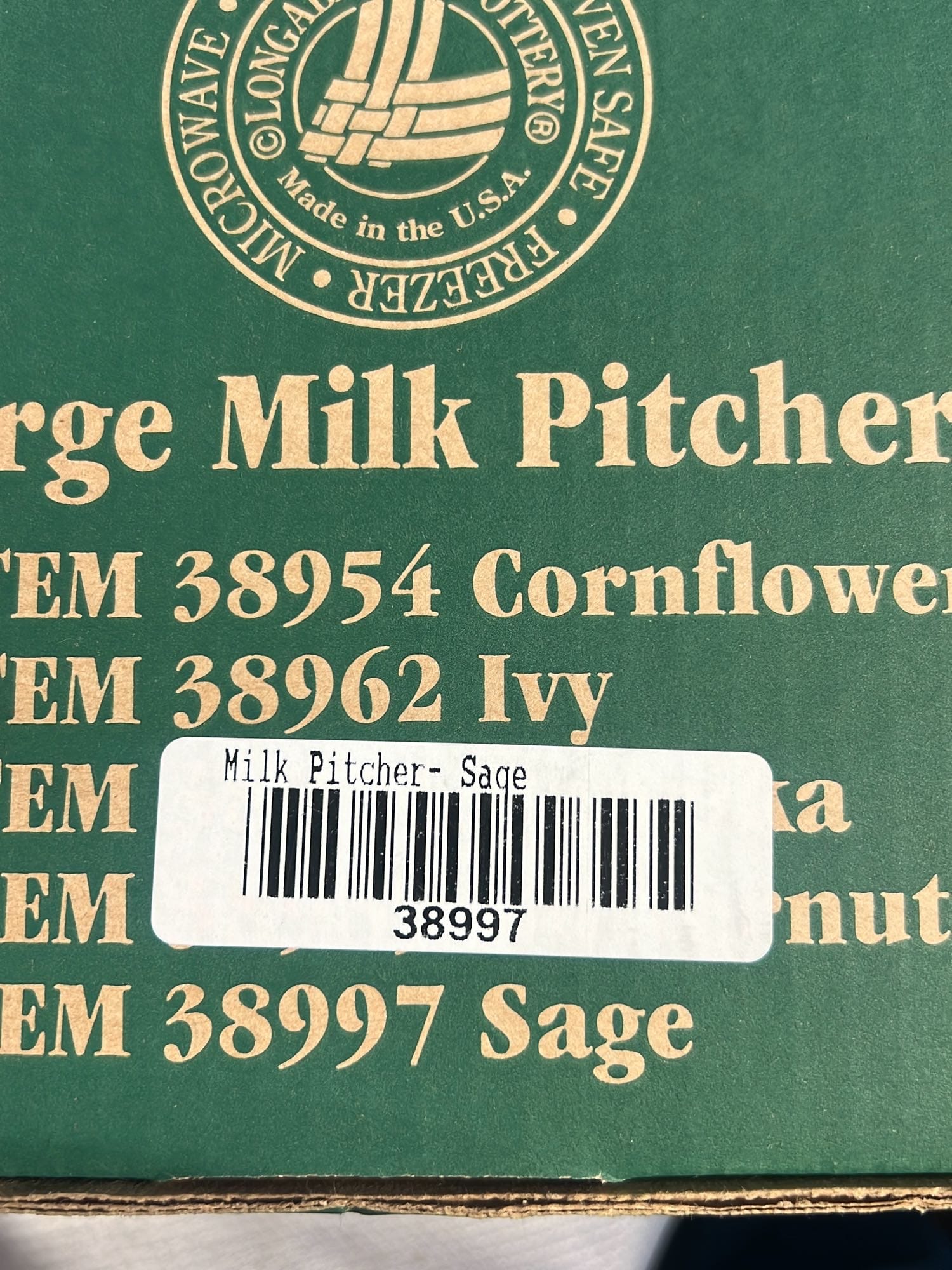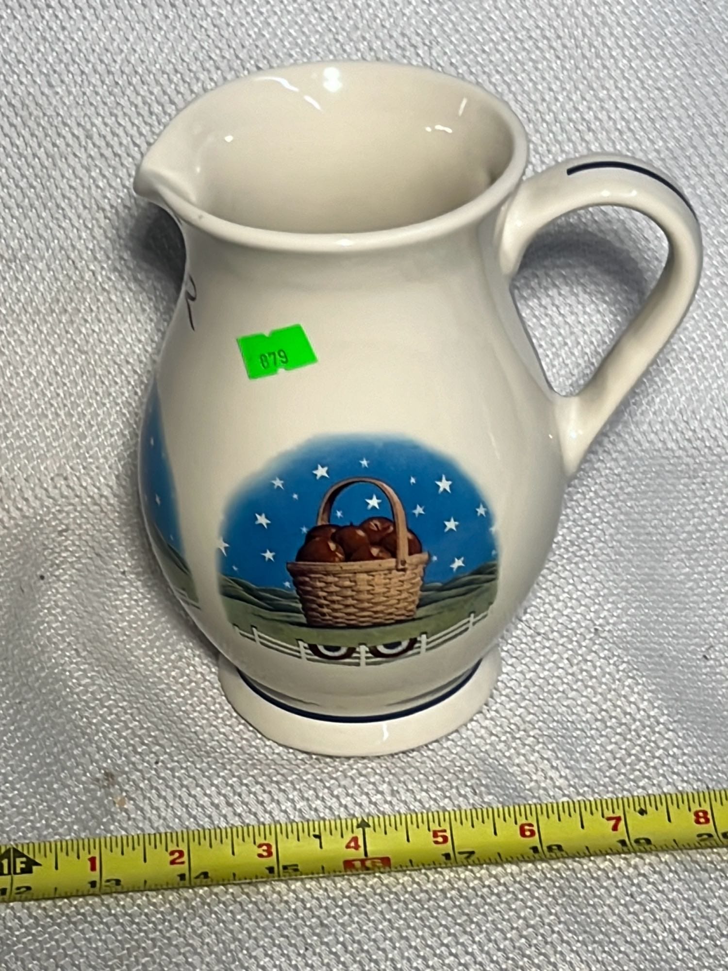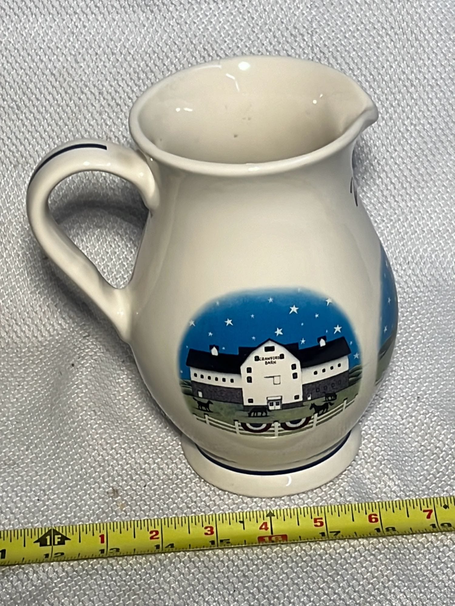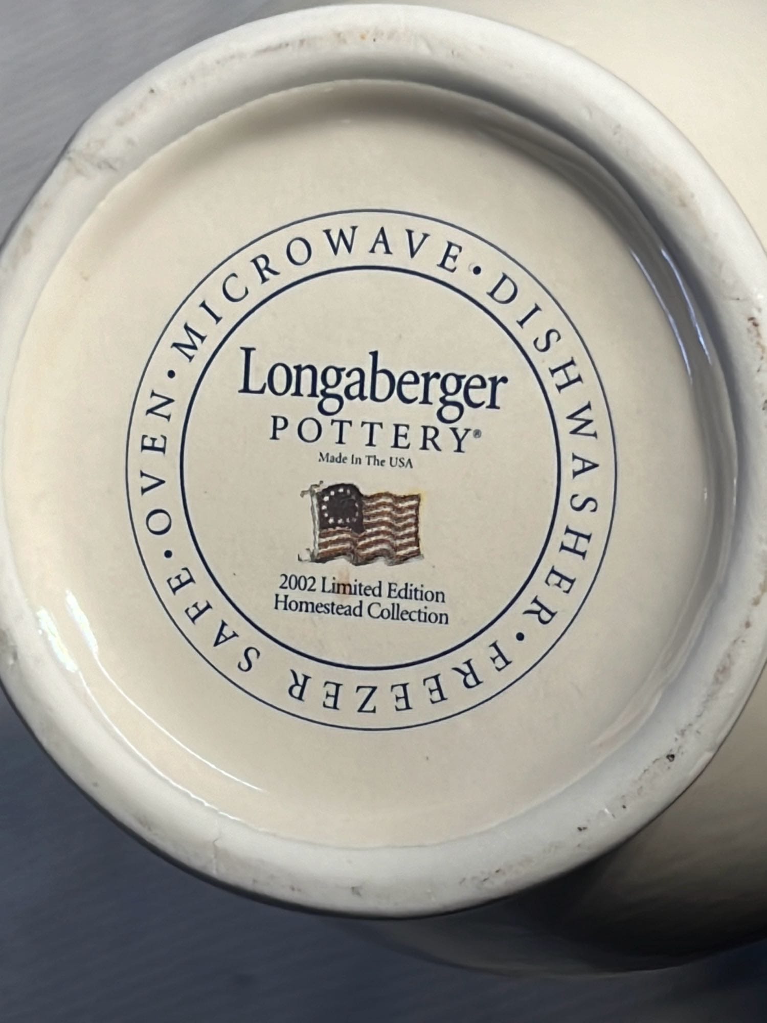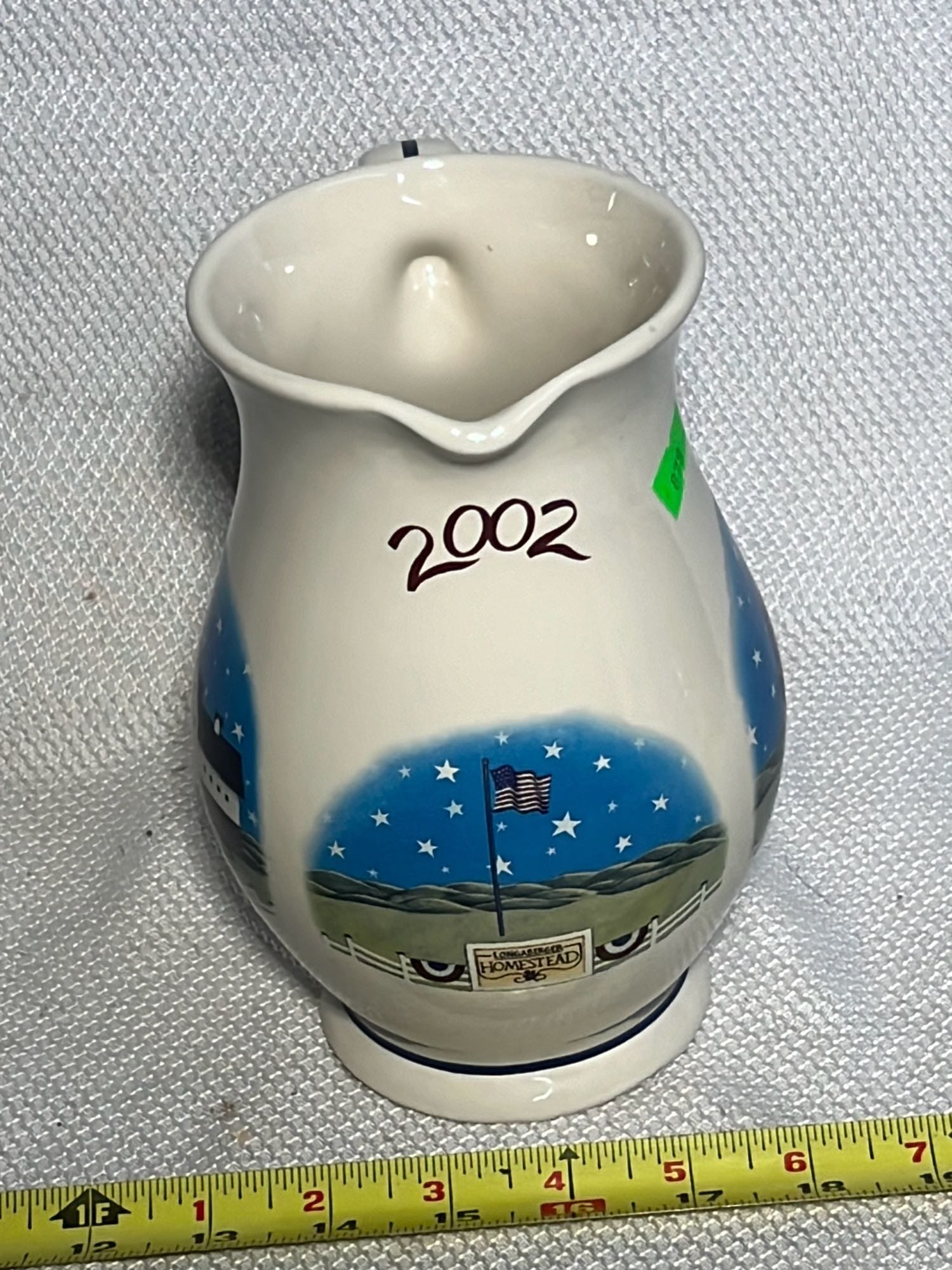 879 2002 Longaberger Pottery Homestead Pitcher 7.25”