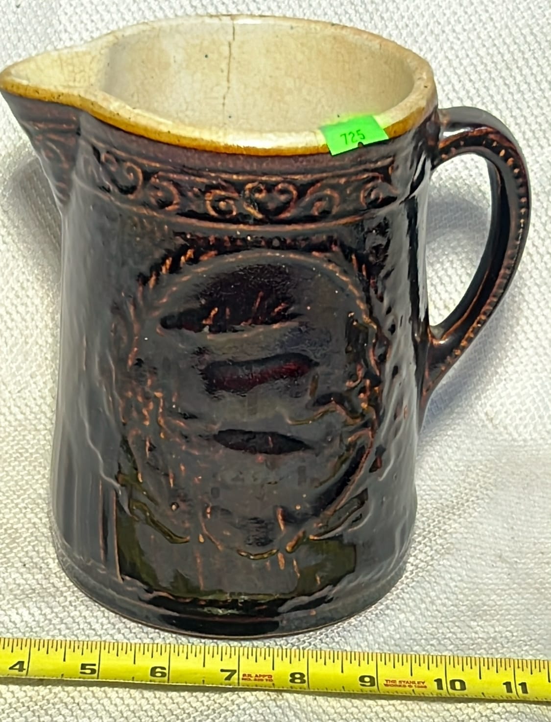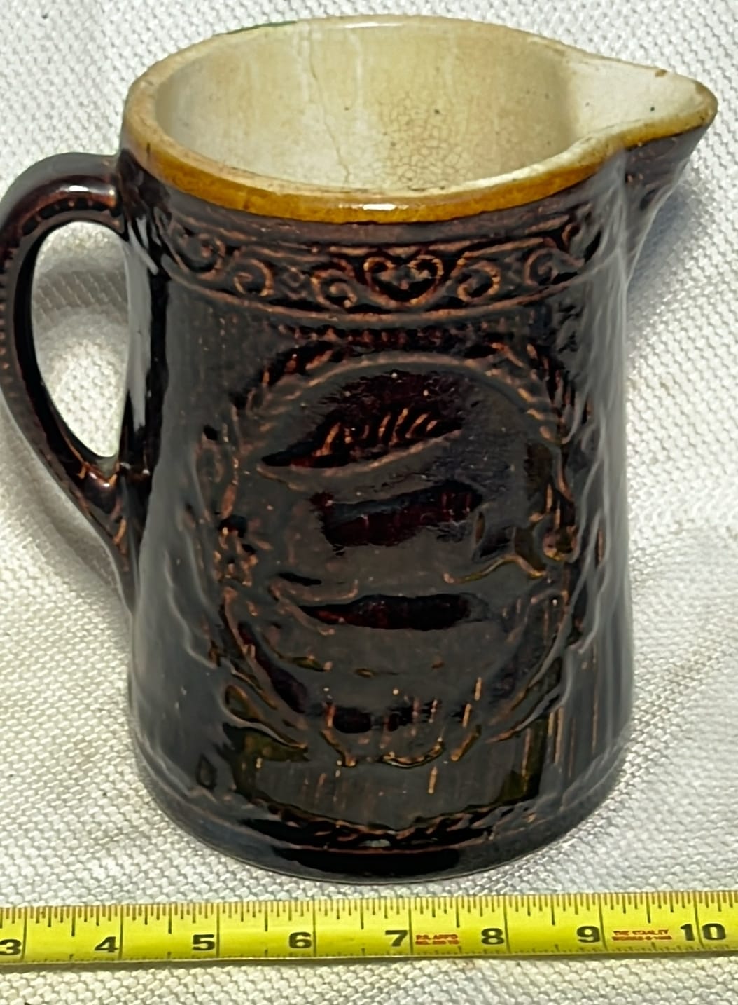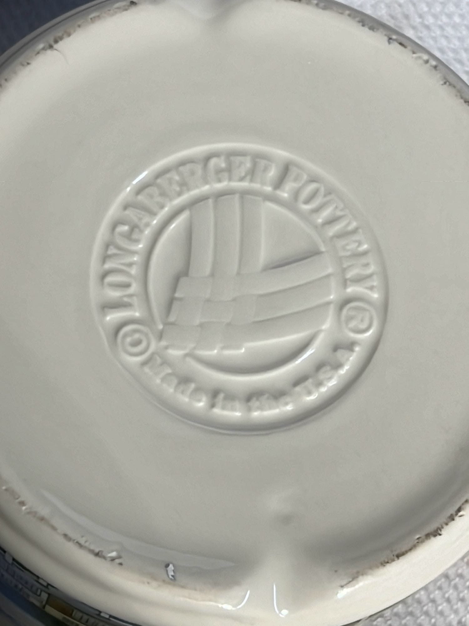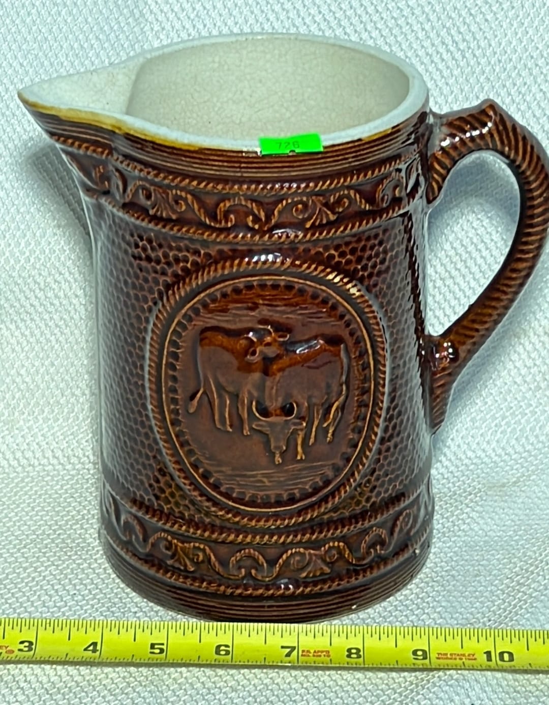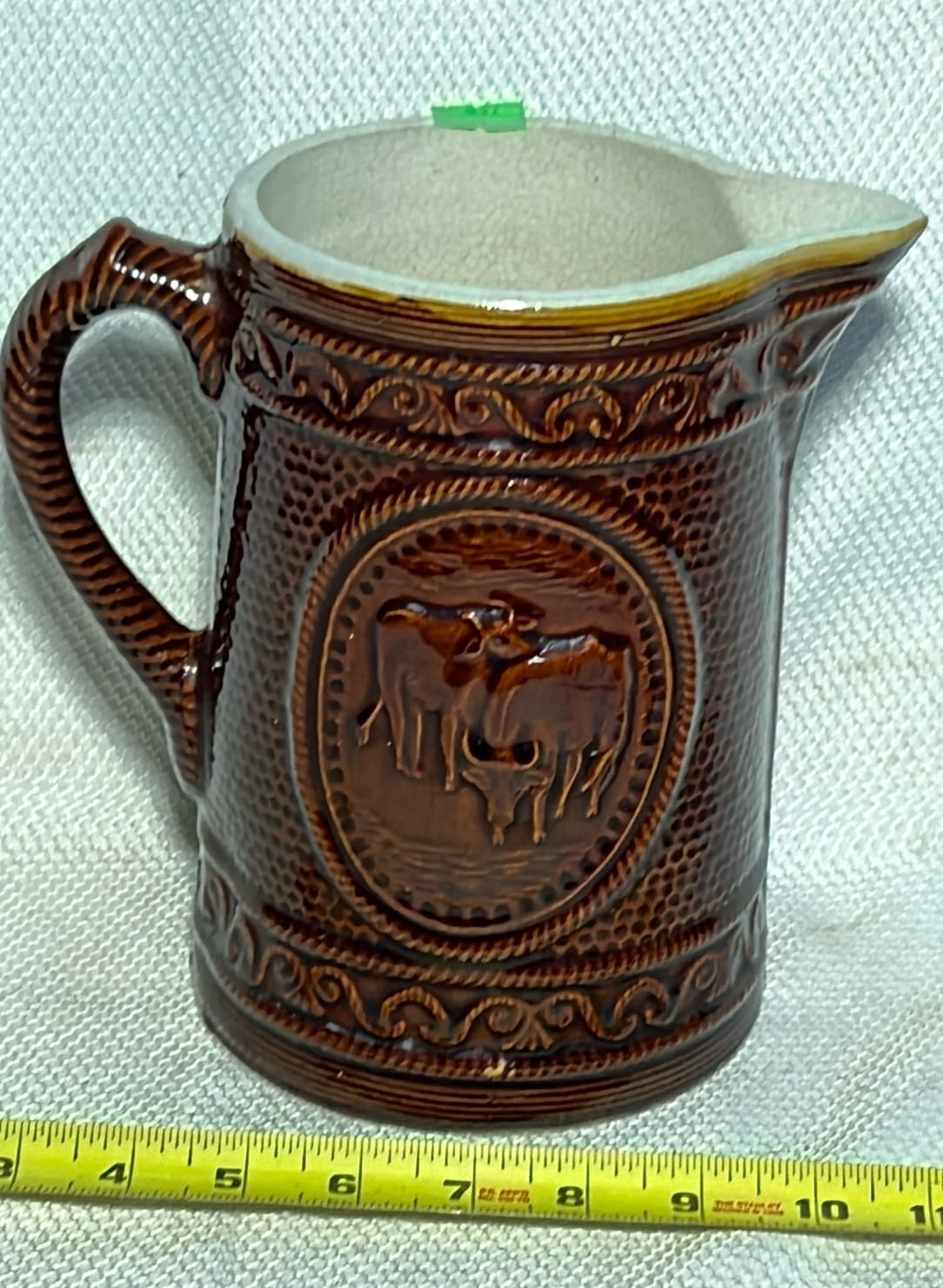 879 2002 Longaberger Pottery Homestead Pitcher 7.25”