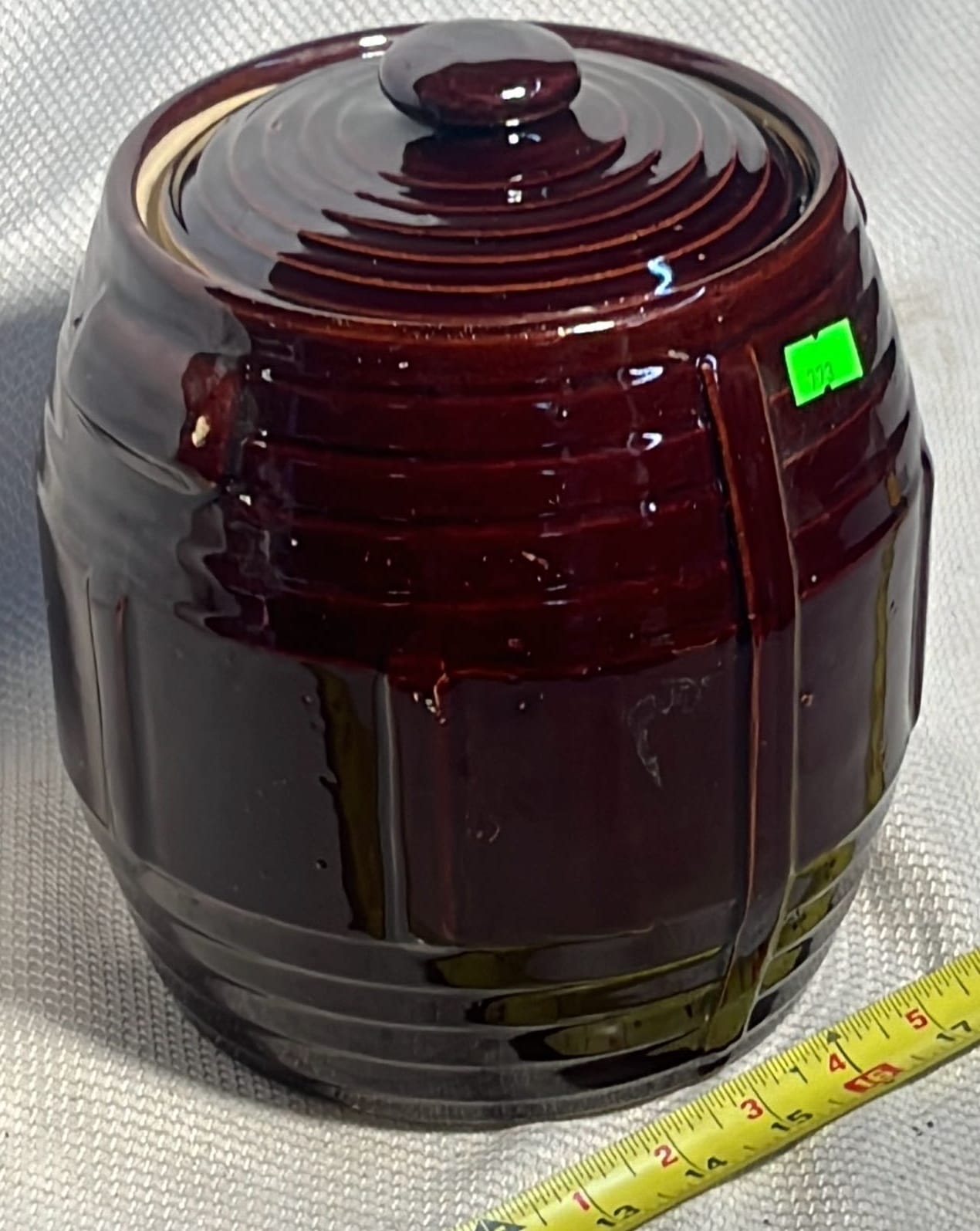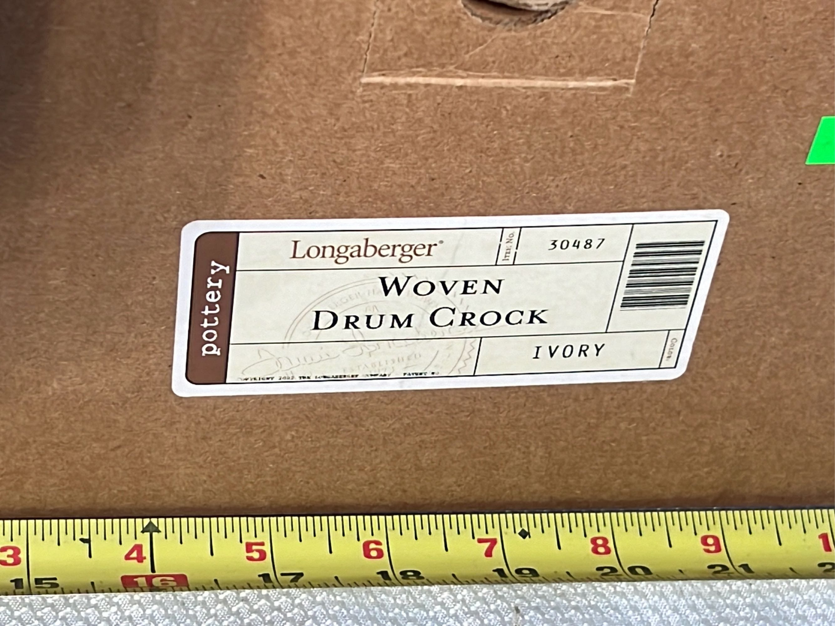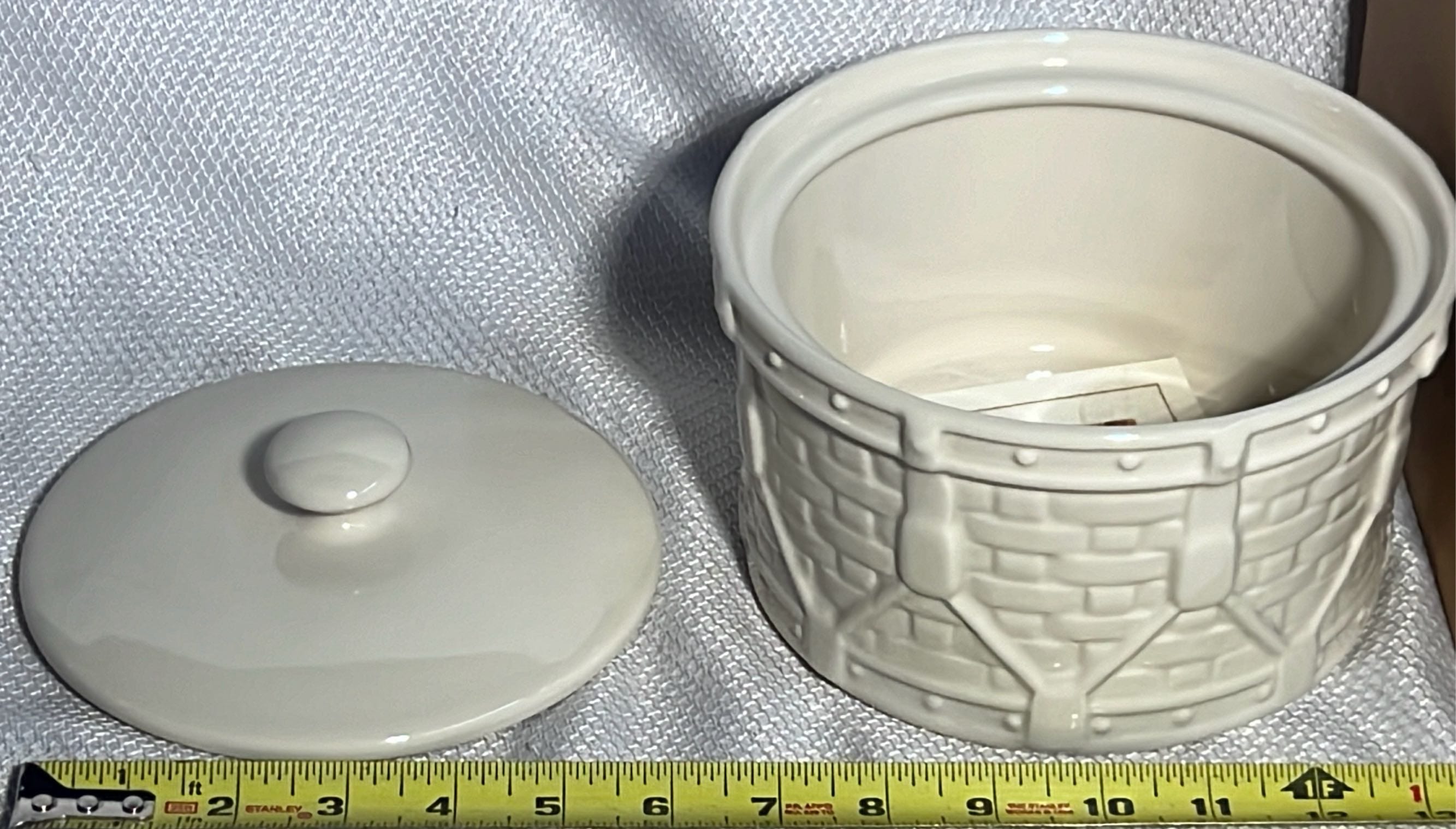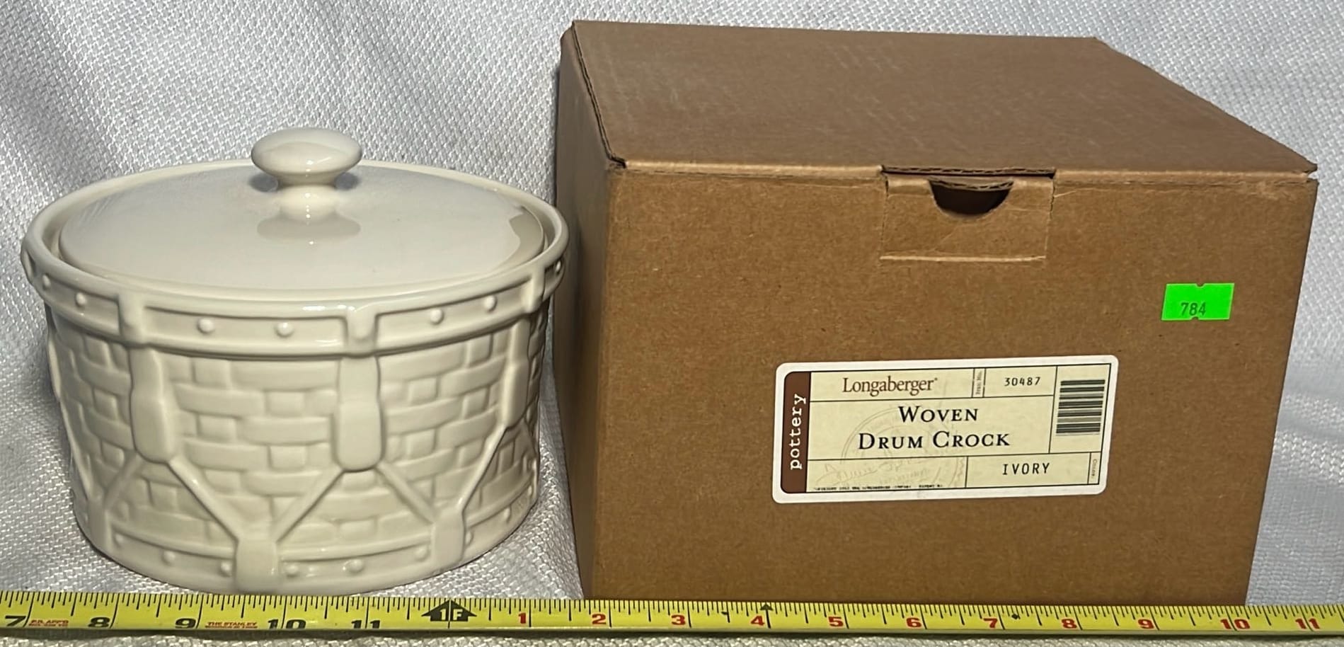 869 Longaberger Pottery Ivy Drum Crock with Lid 5”