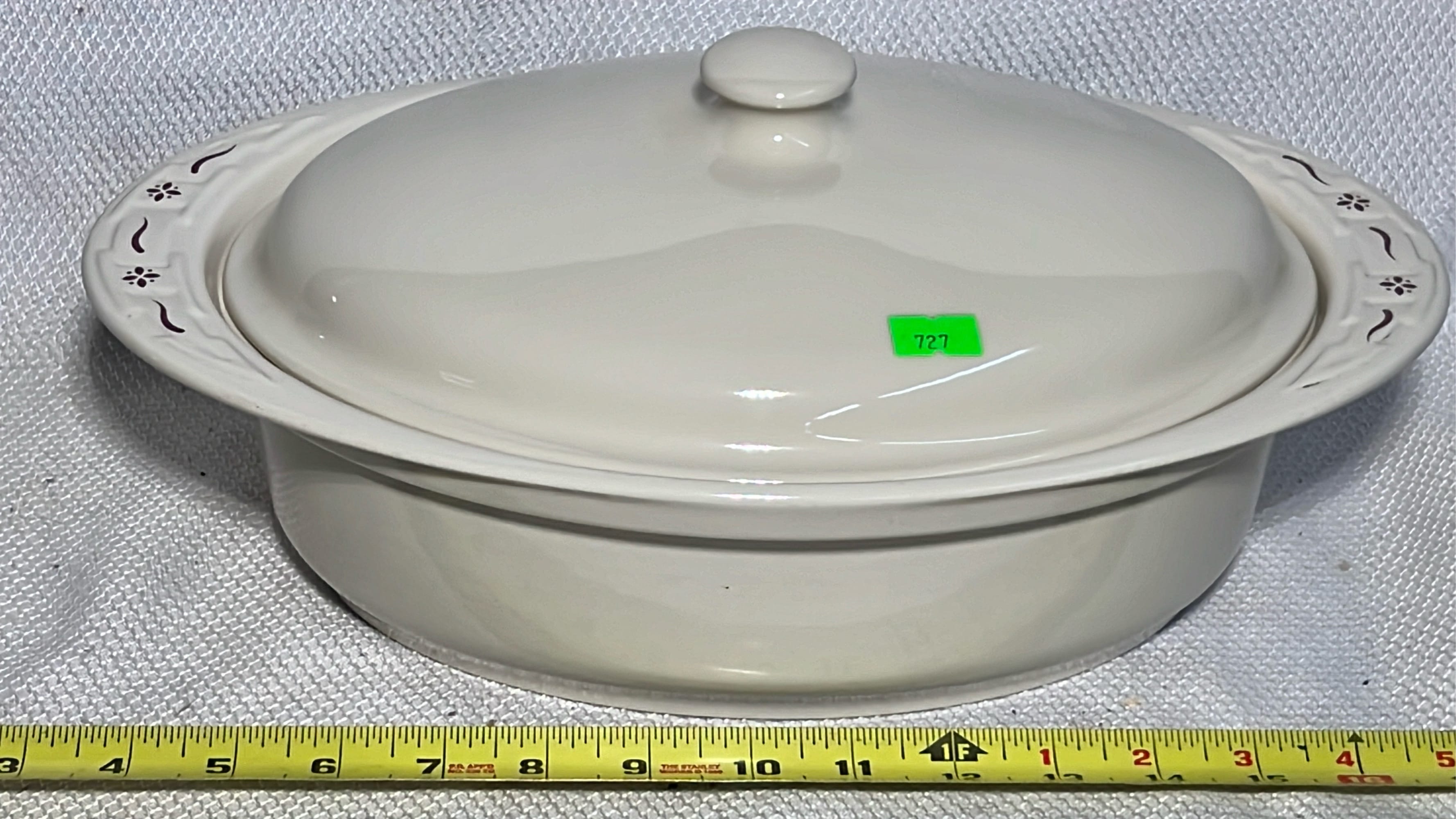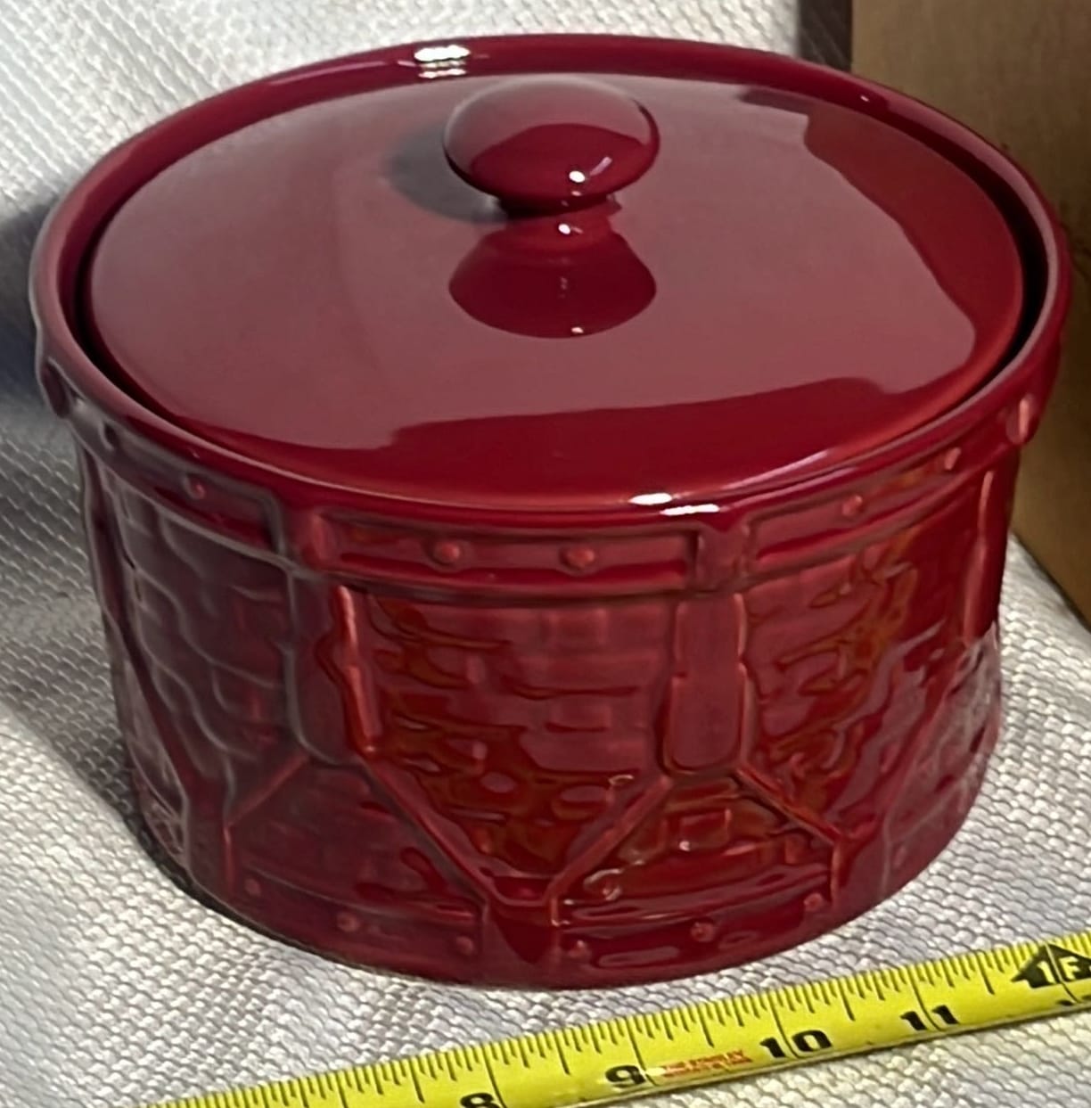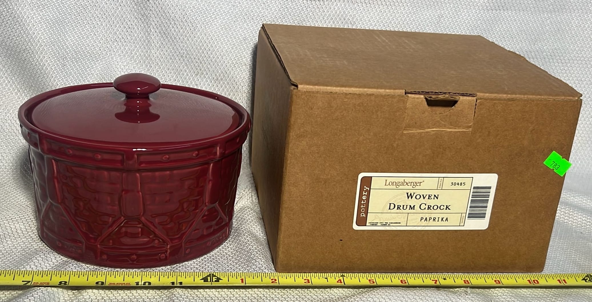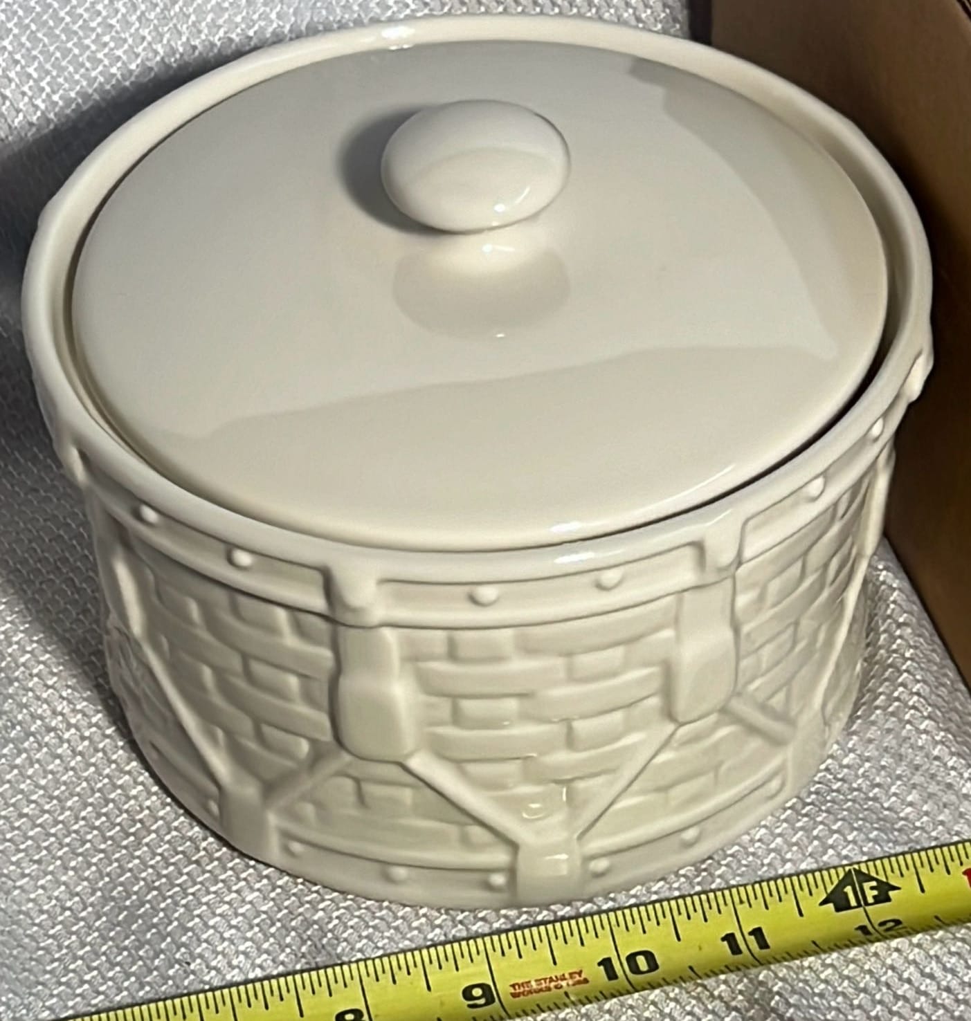 869 Longaberger Pottery Ivy Drum Crock with Lid 5”