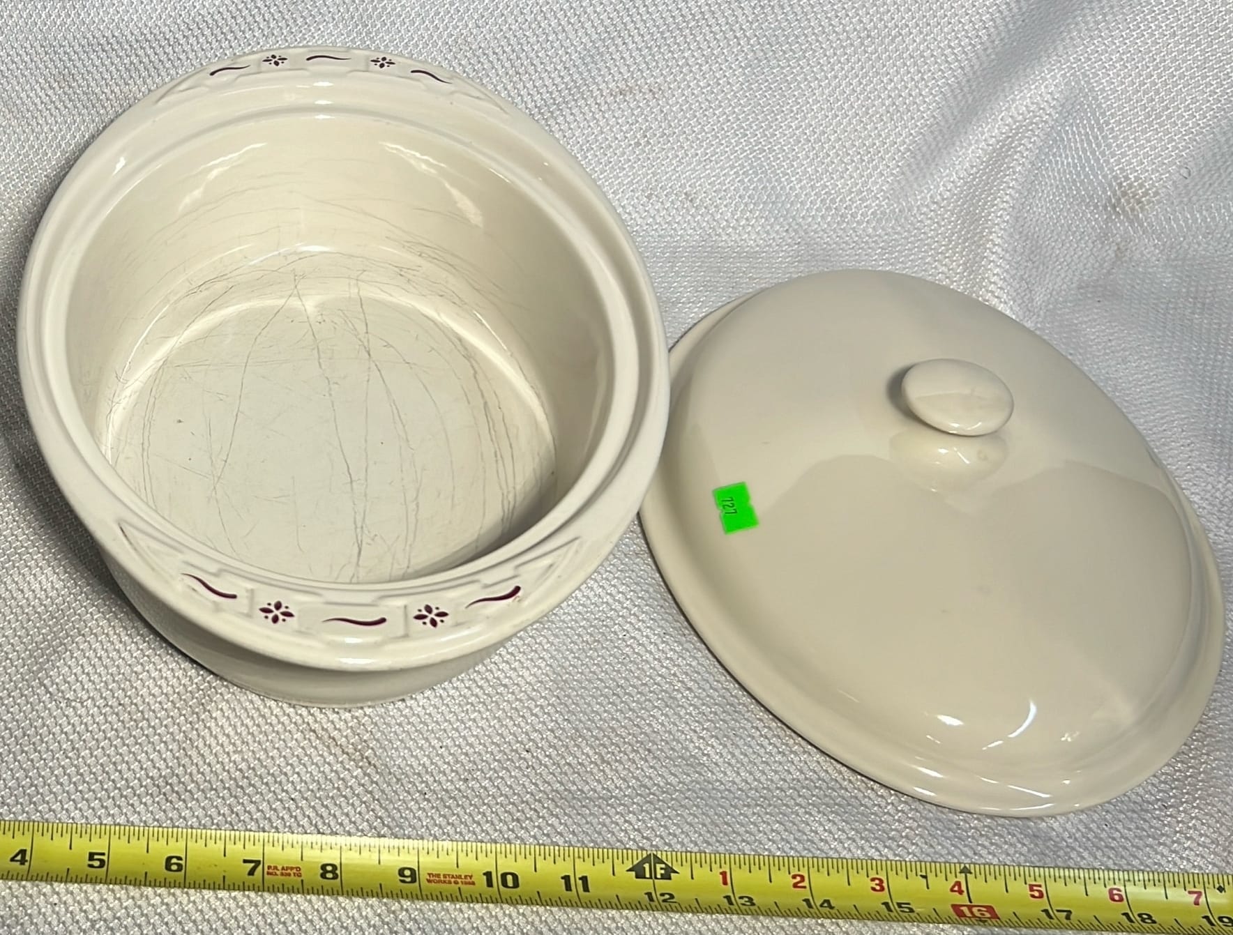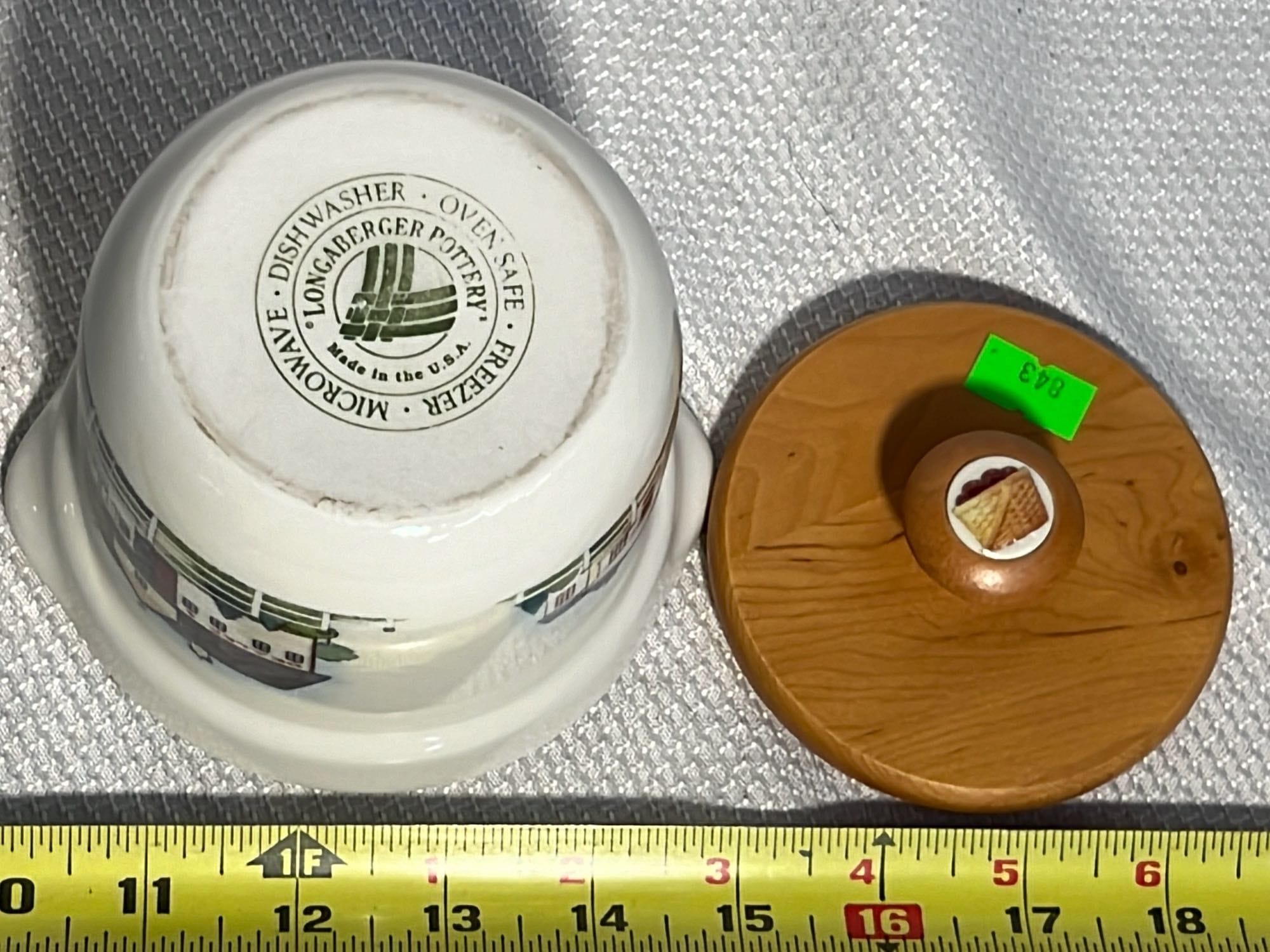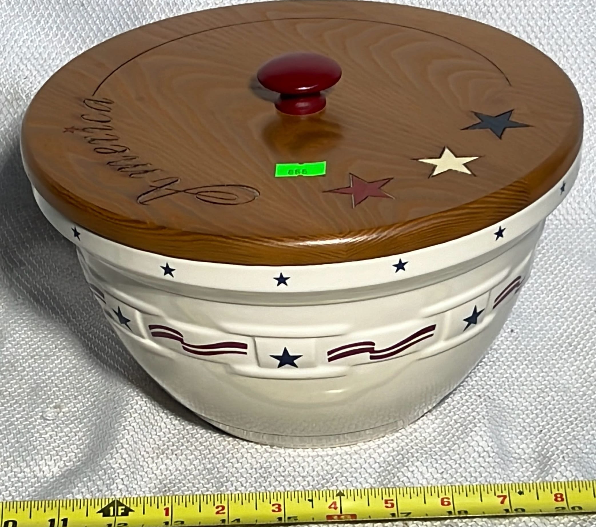 855 Longaberger Pottery All American Mixing Bowl with wood lid 10”