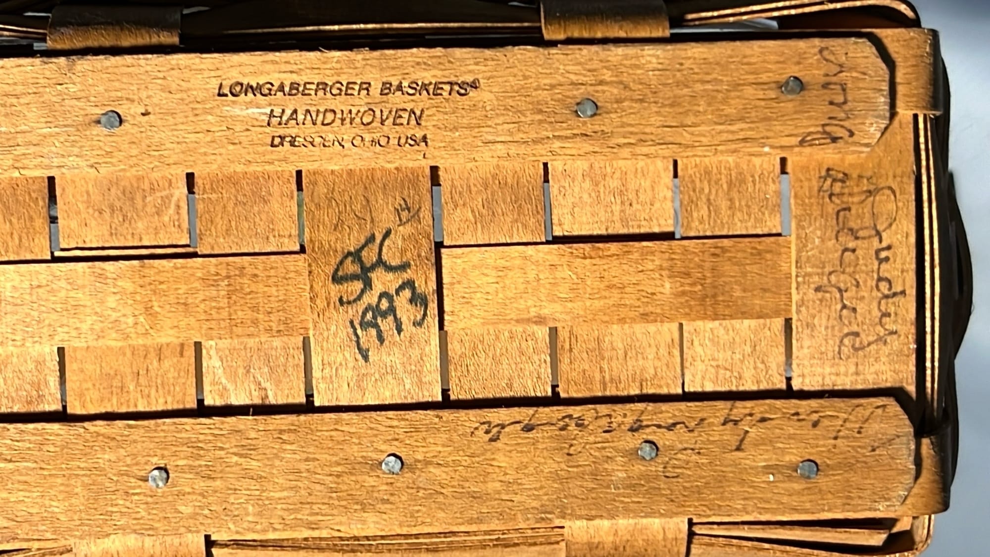 852 1982 Longaberger Craddle Basket 13”x19”x9”