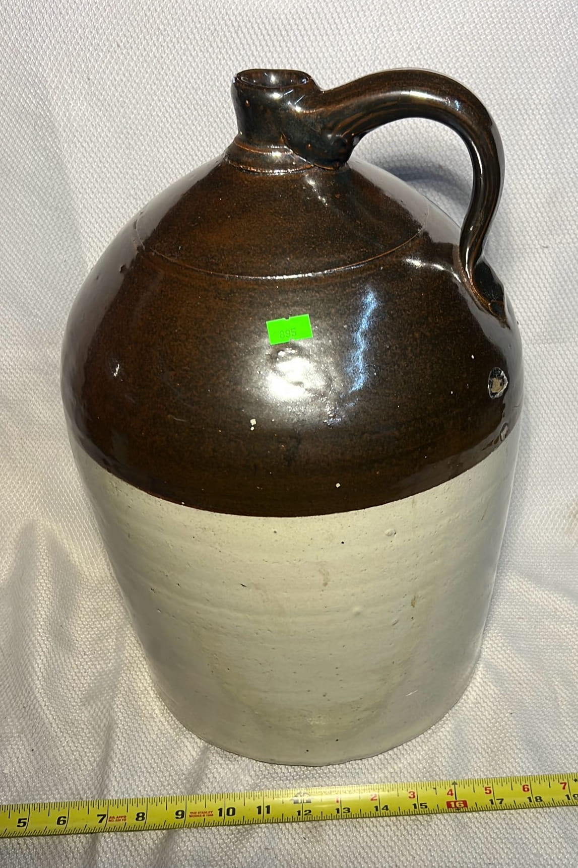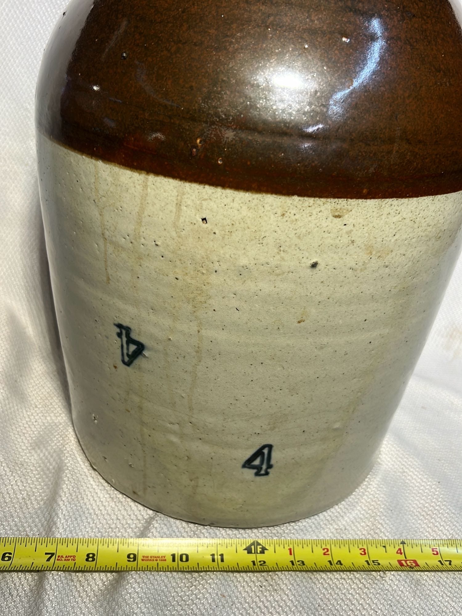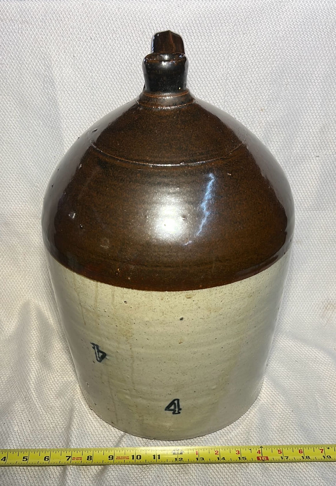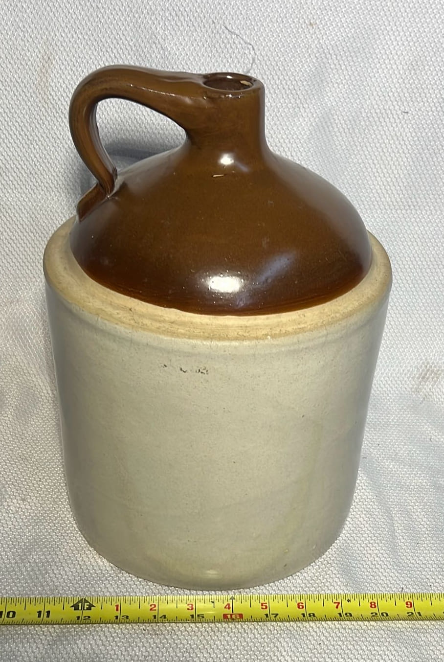 895 Stoneware 2-Tone 4gal Crock Jug 4gal 10.5”x17”