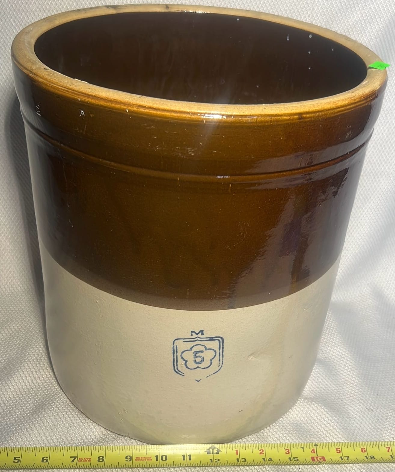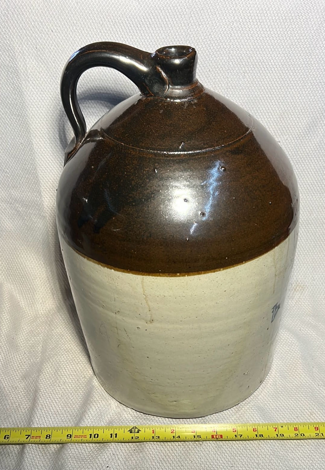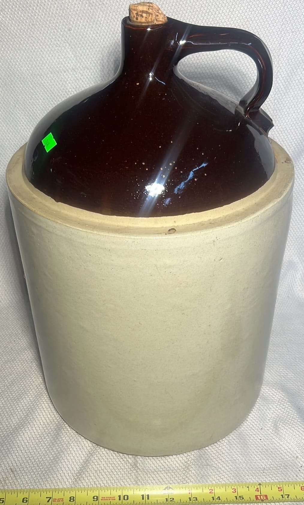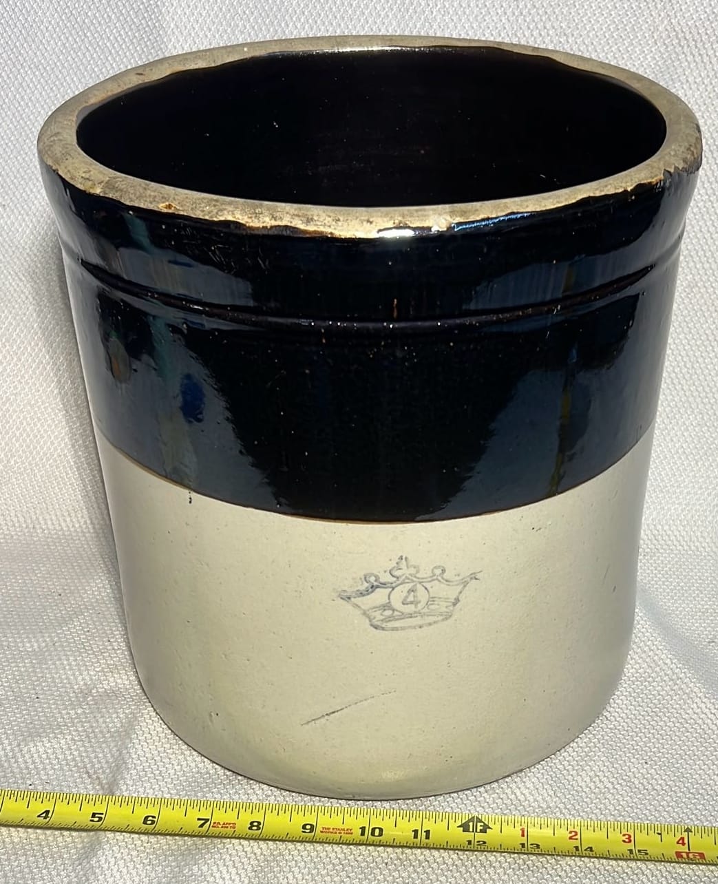 895 Stoneware 2-Tone 4gal Crock Jug 4gal 10.5”x17”
