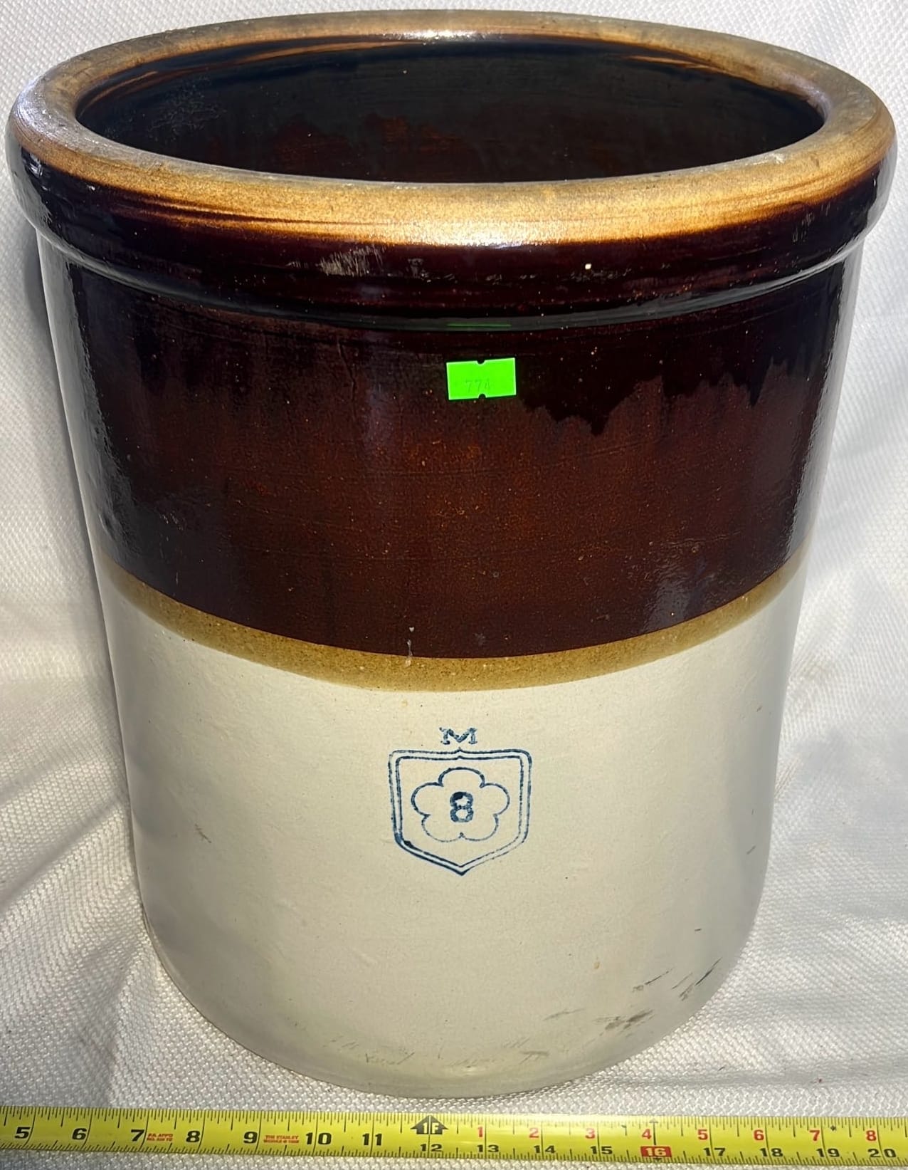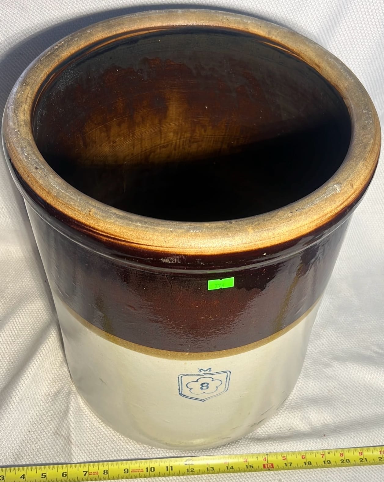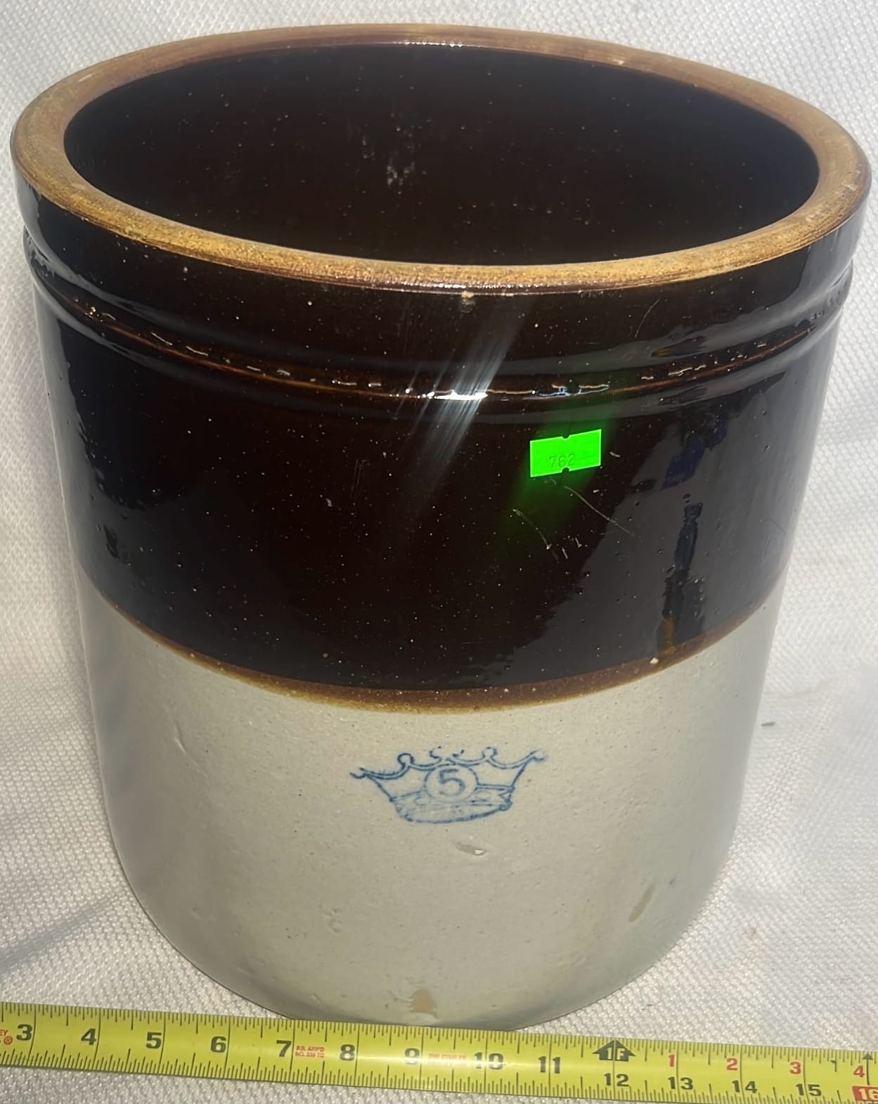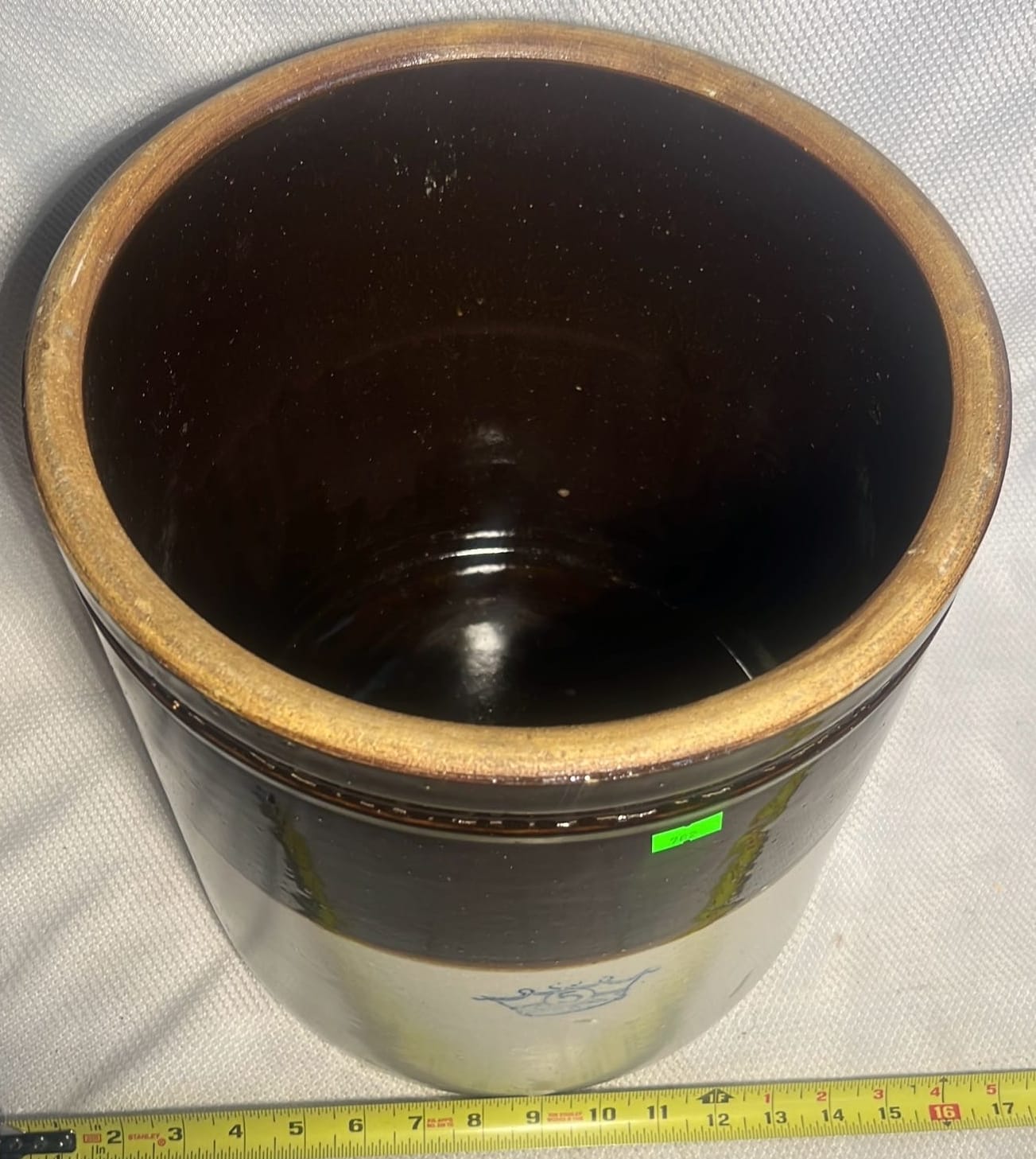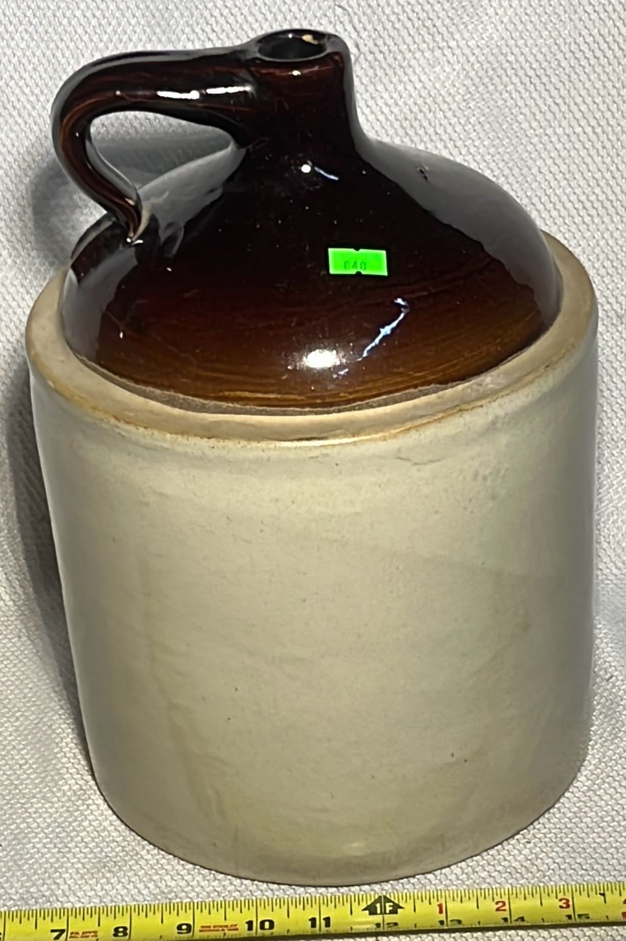 895 Stoneware 2-Tone 4gal Crock Jug 4gal 10.5”x17”