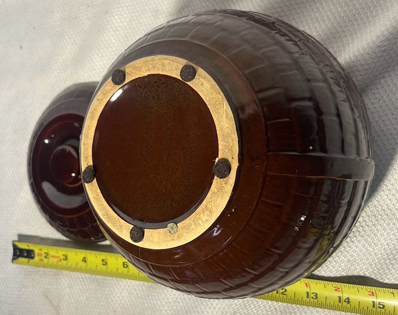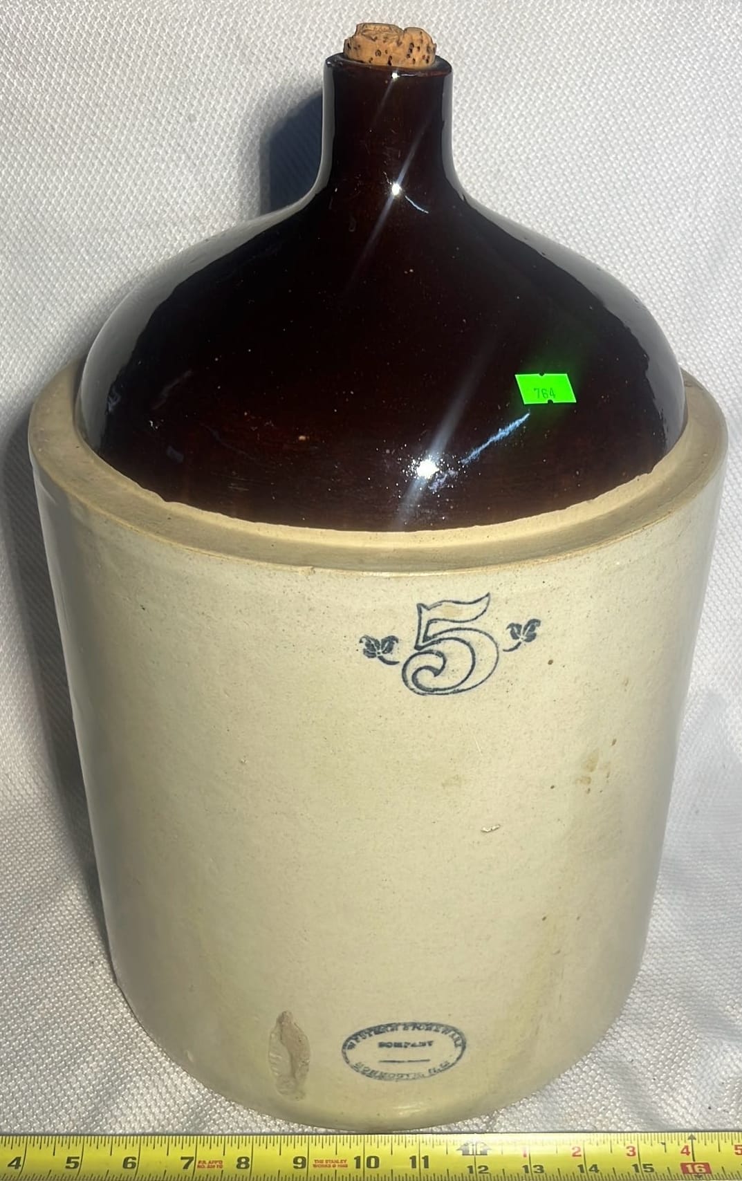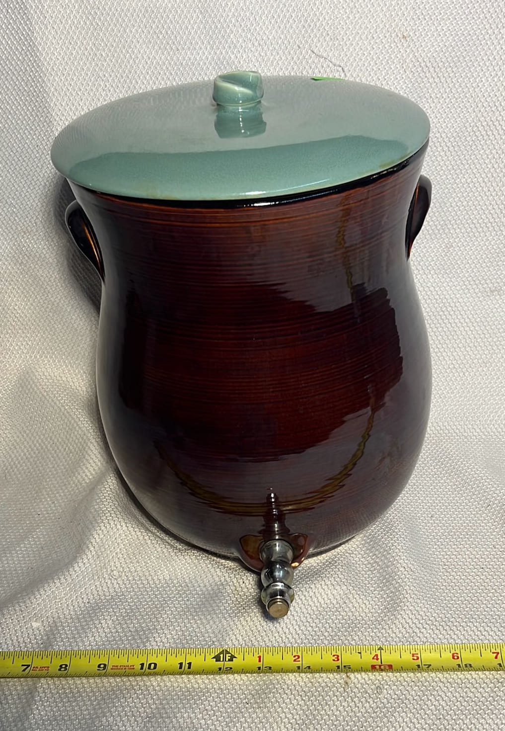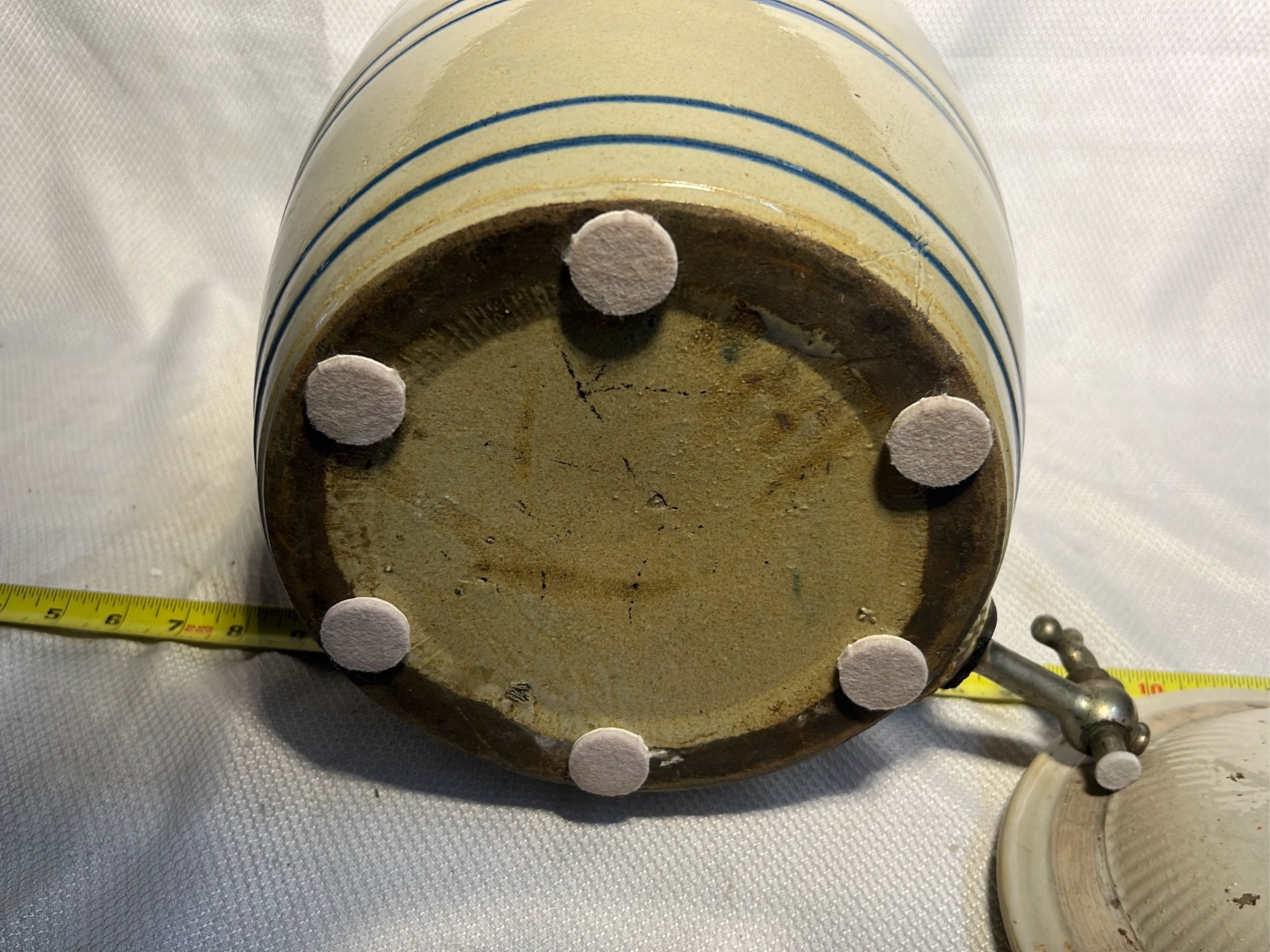 895 Stoneware 2-Tone 4gal Crock Jug 4gal 10.5”x17”