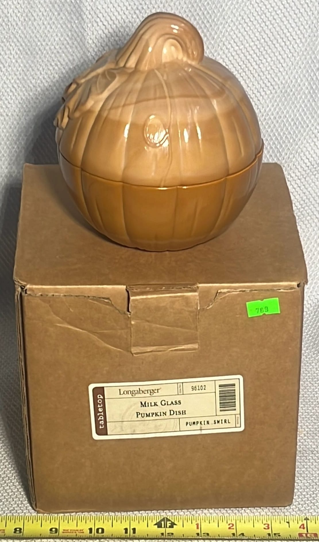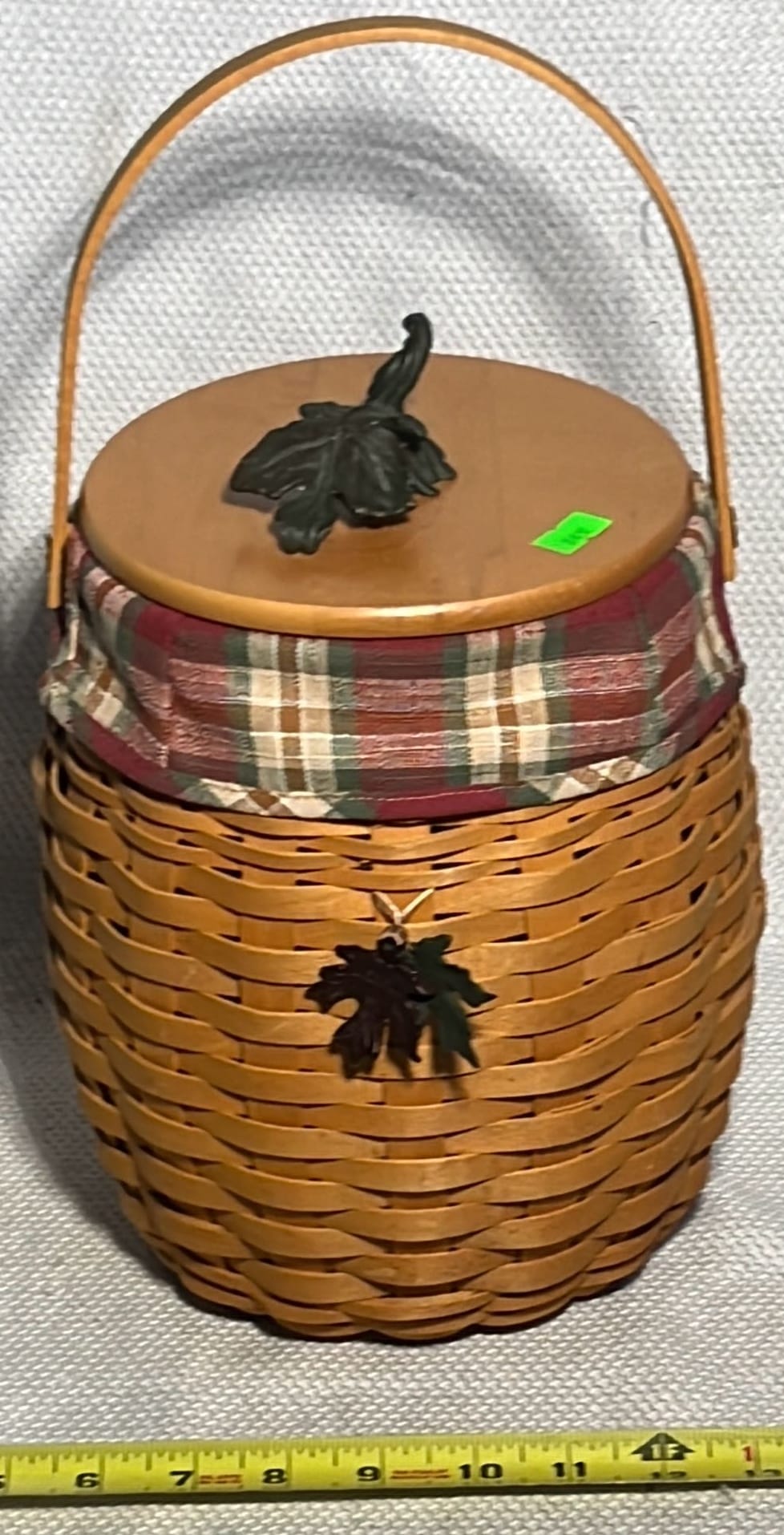 858 2001 Longaberger Pumpkin Patch Basket with lid with metal Leaf handle