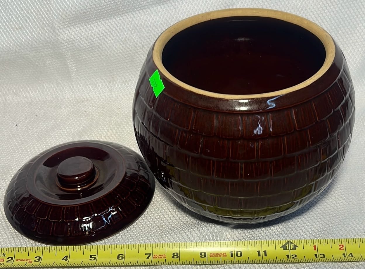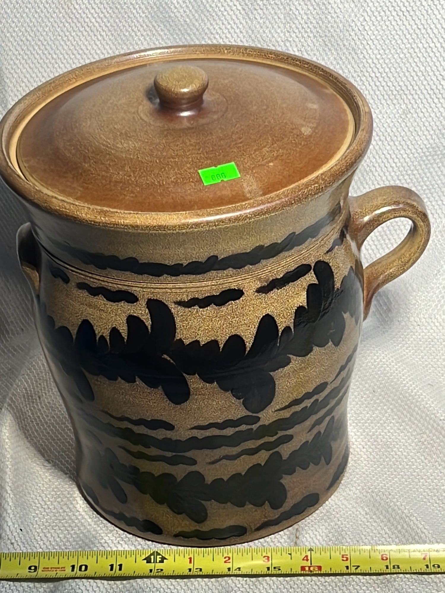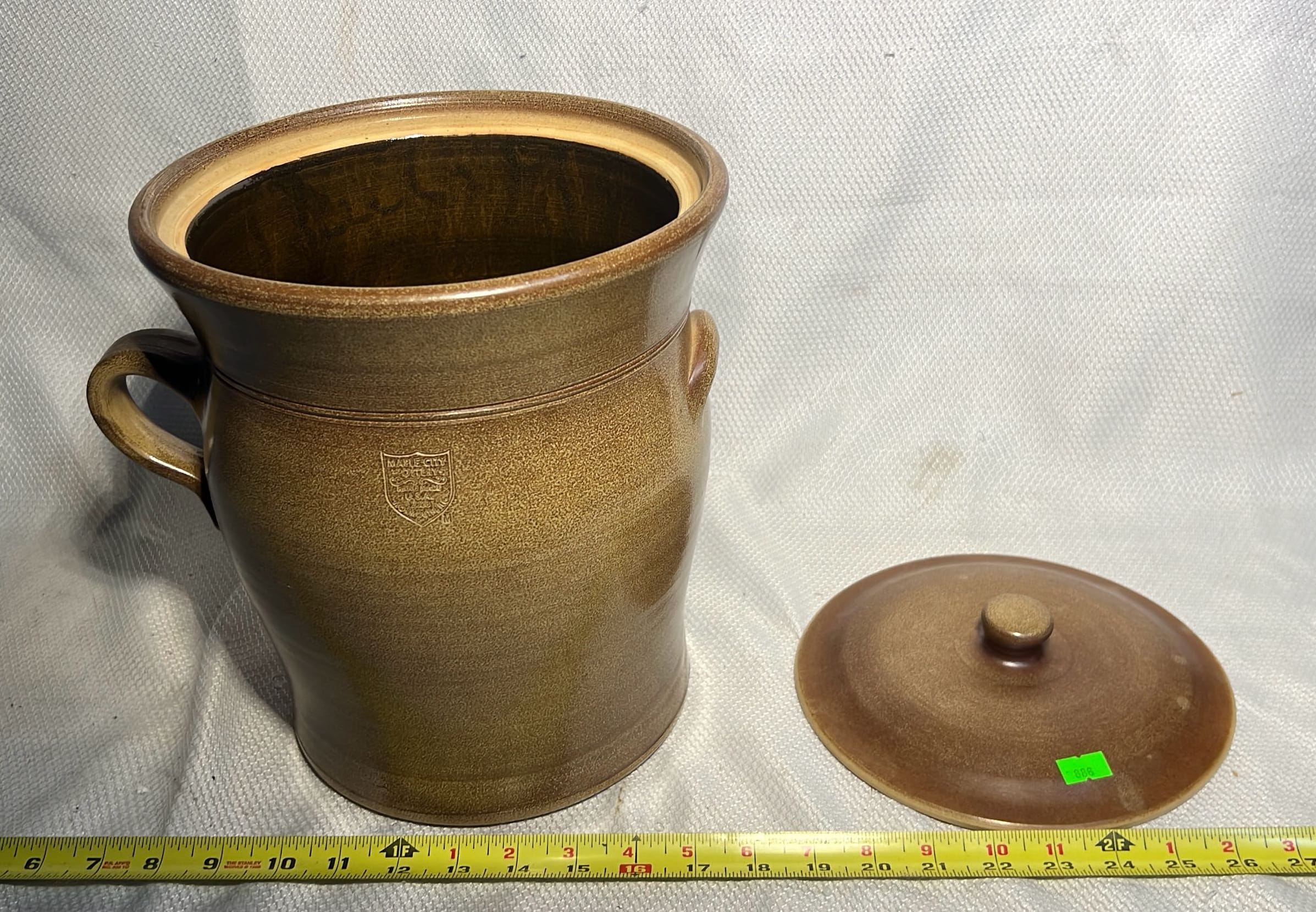 886 2007 Maple City Pottery Handle Crock with lid 12”