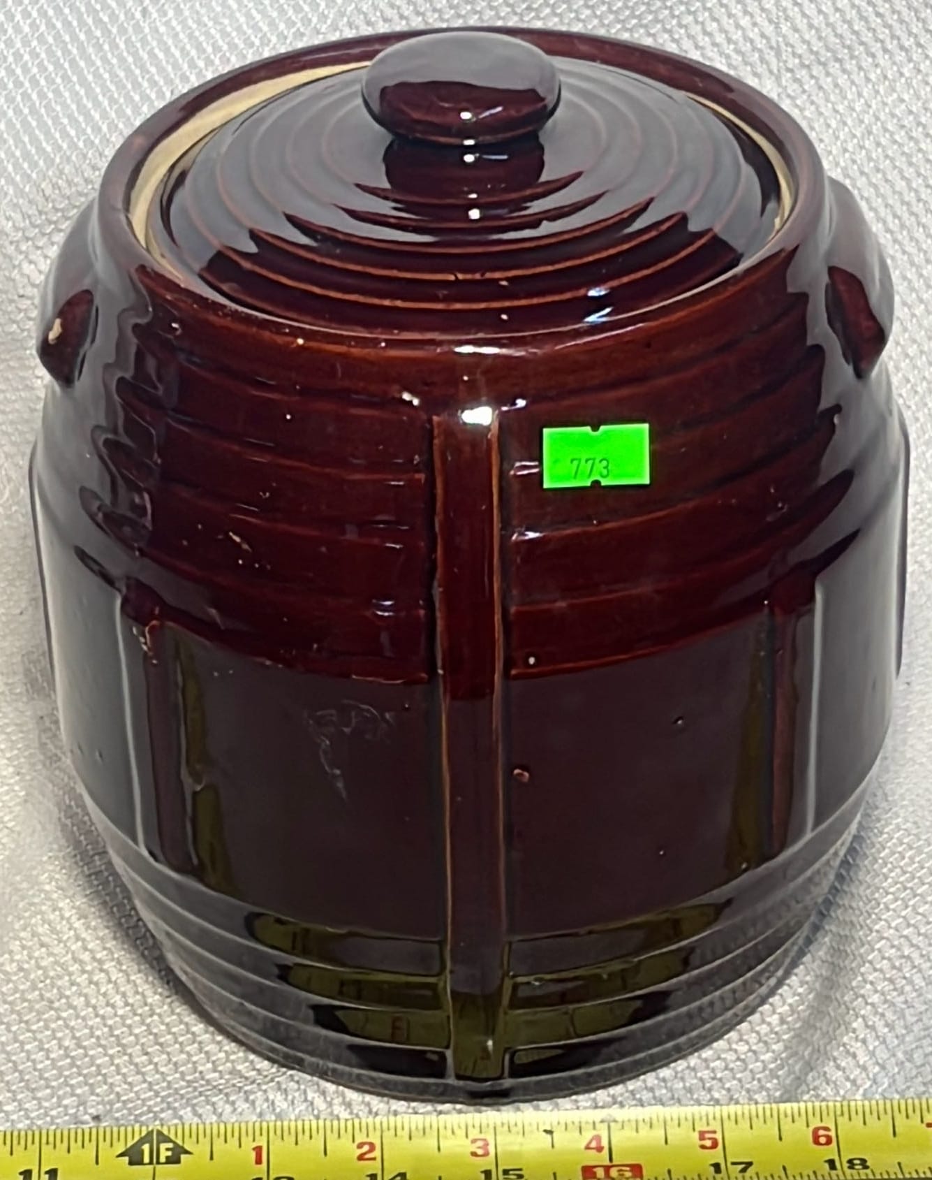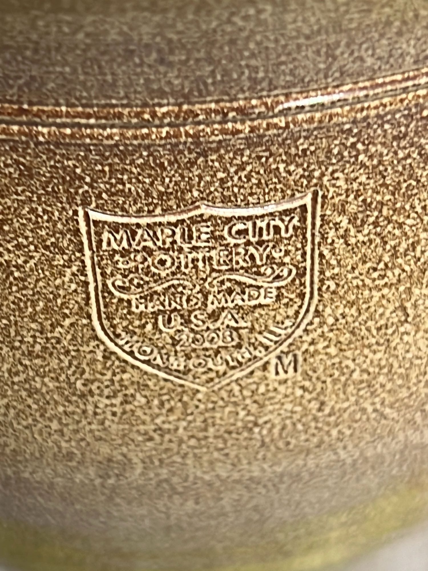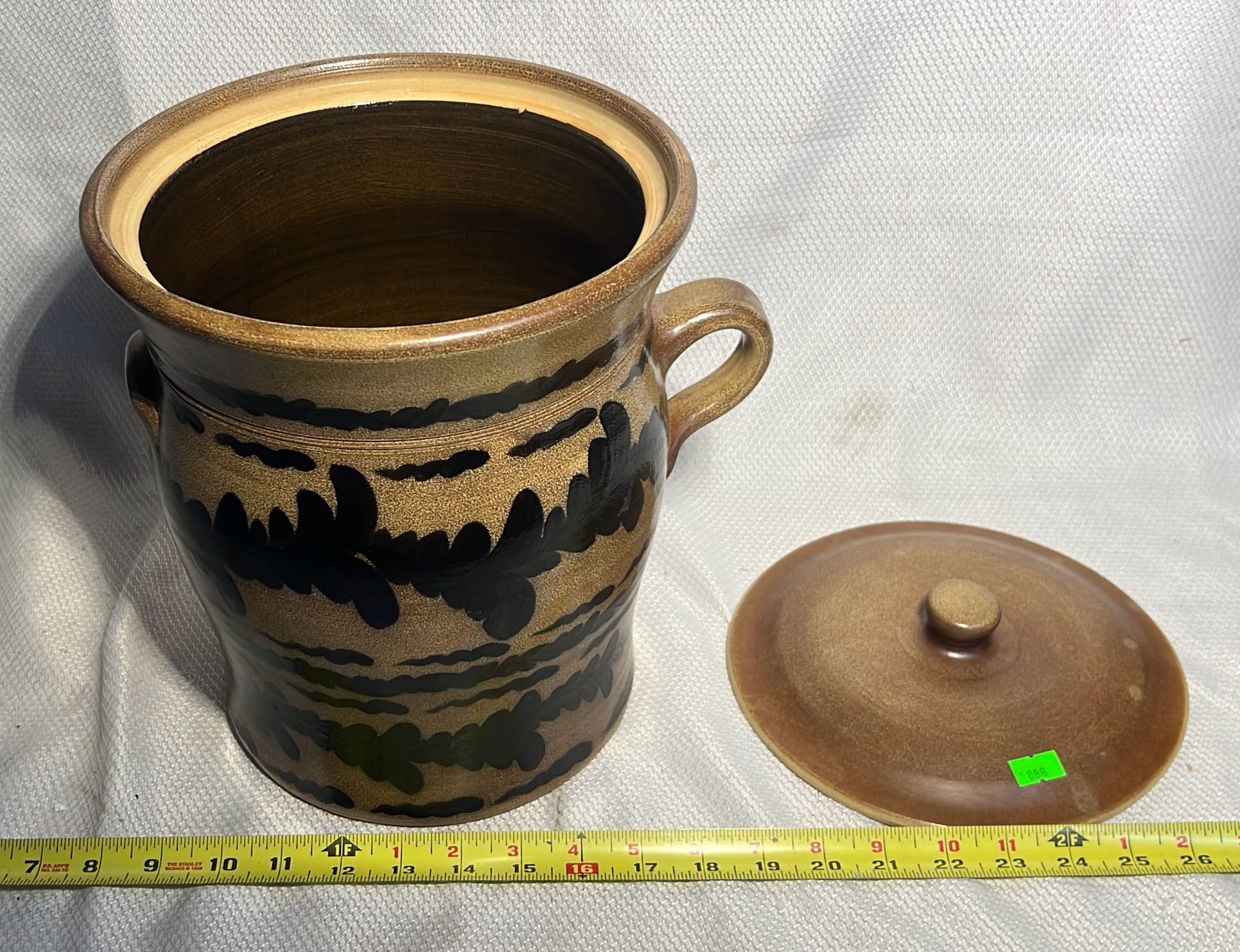 886 2007 Maple City Pottery Handle Crock with lid 12”