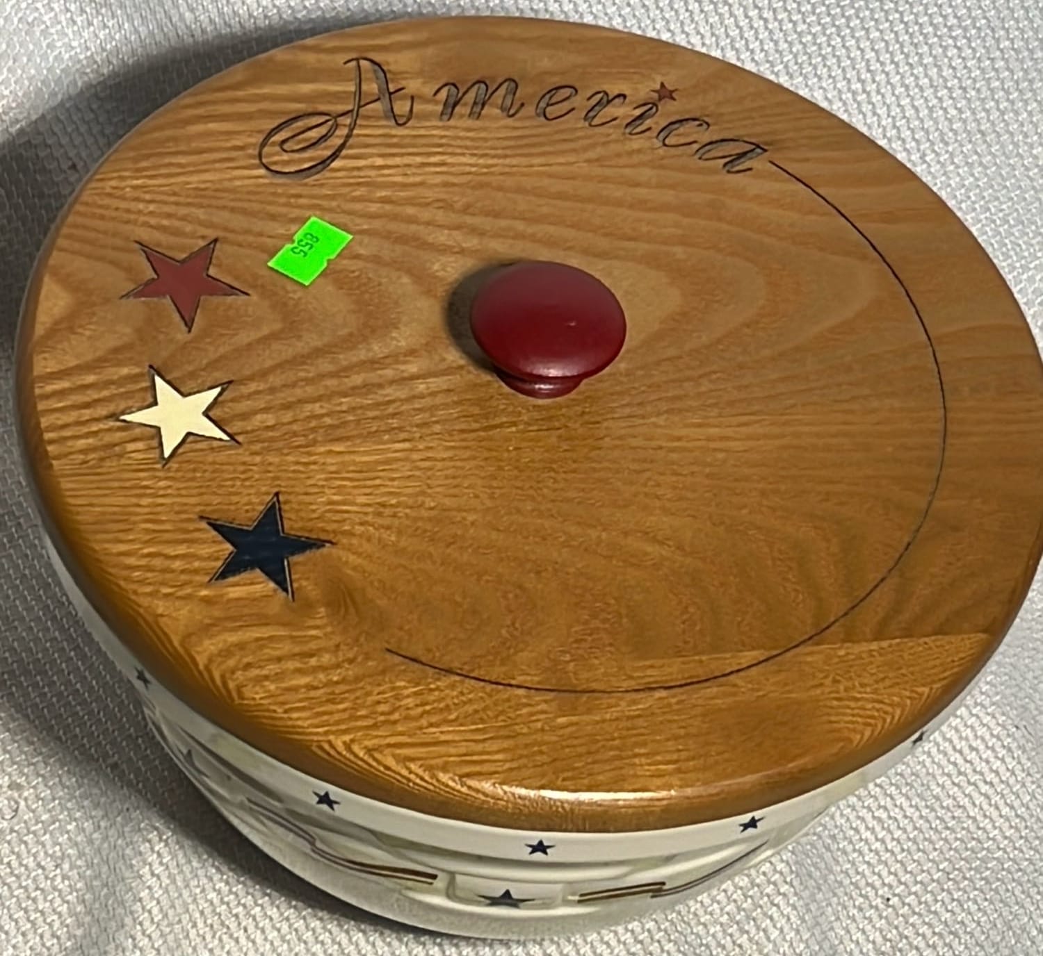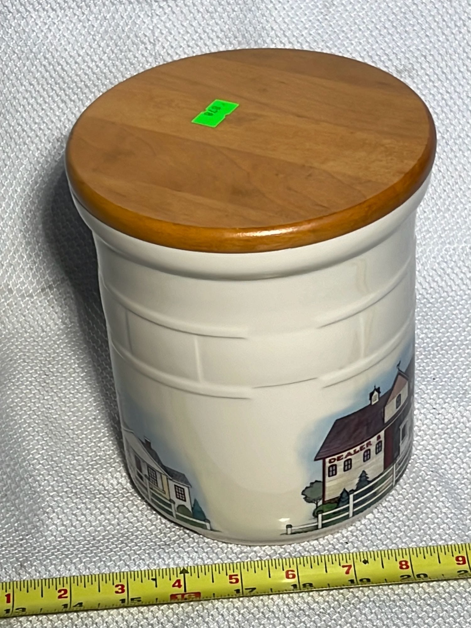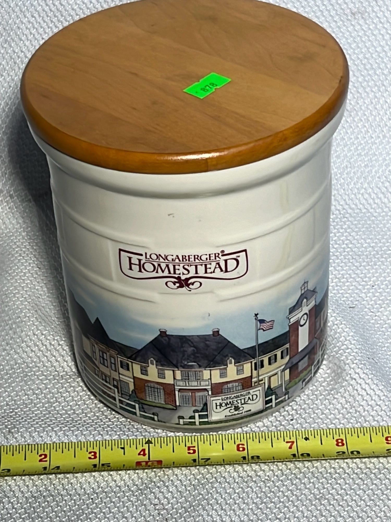 878 Longaberger Pottery Homestead Crock with wood lid 7”