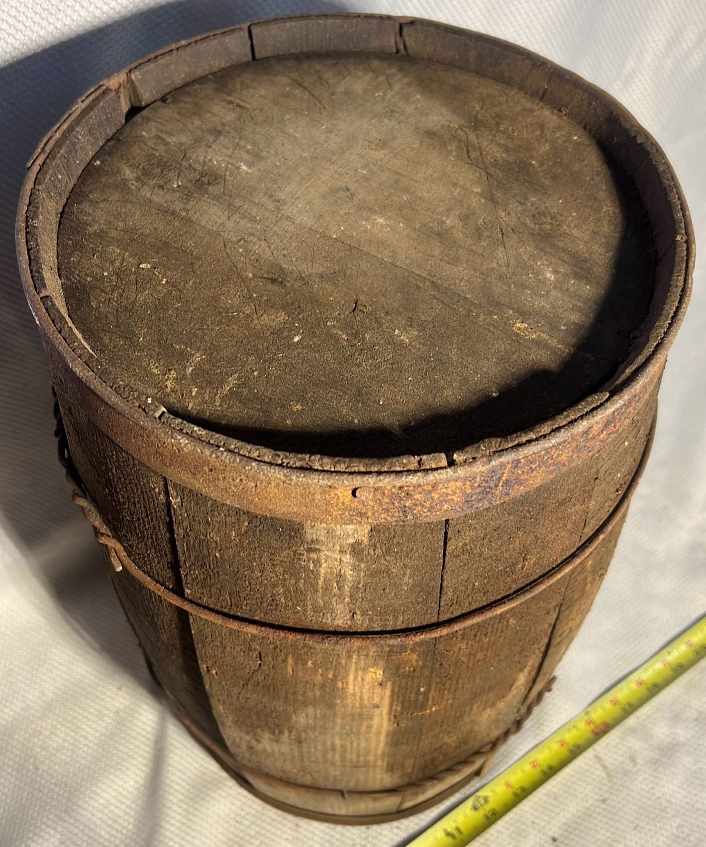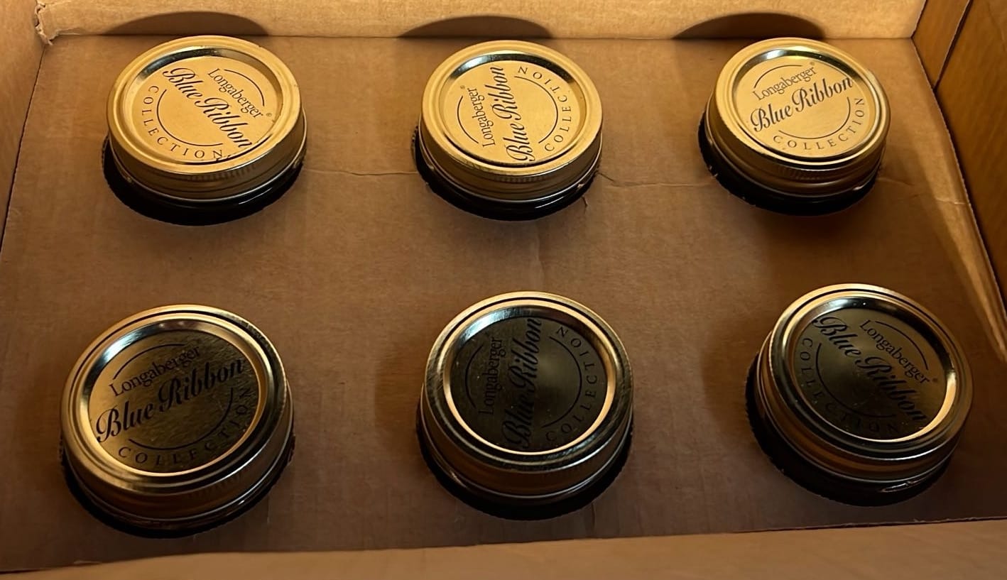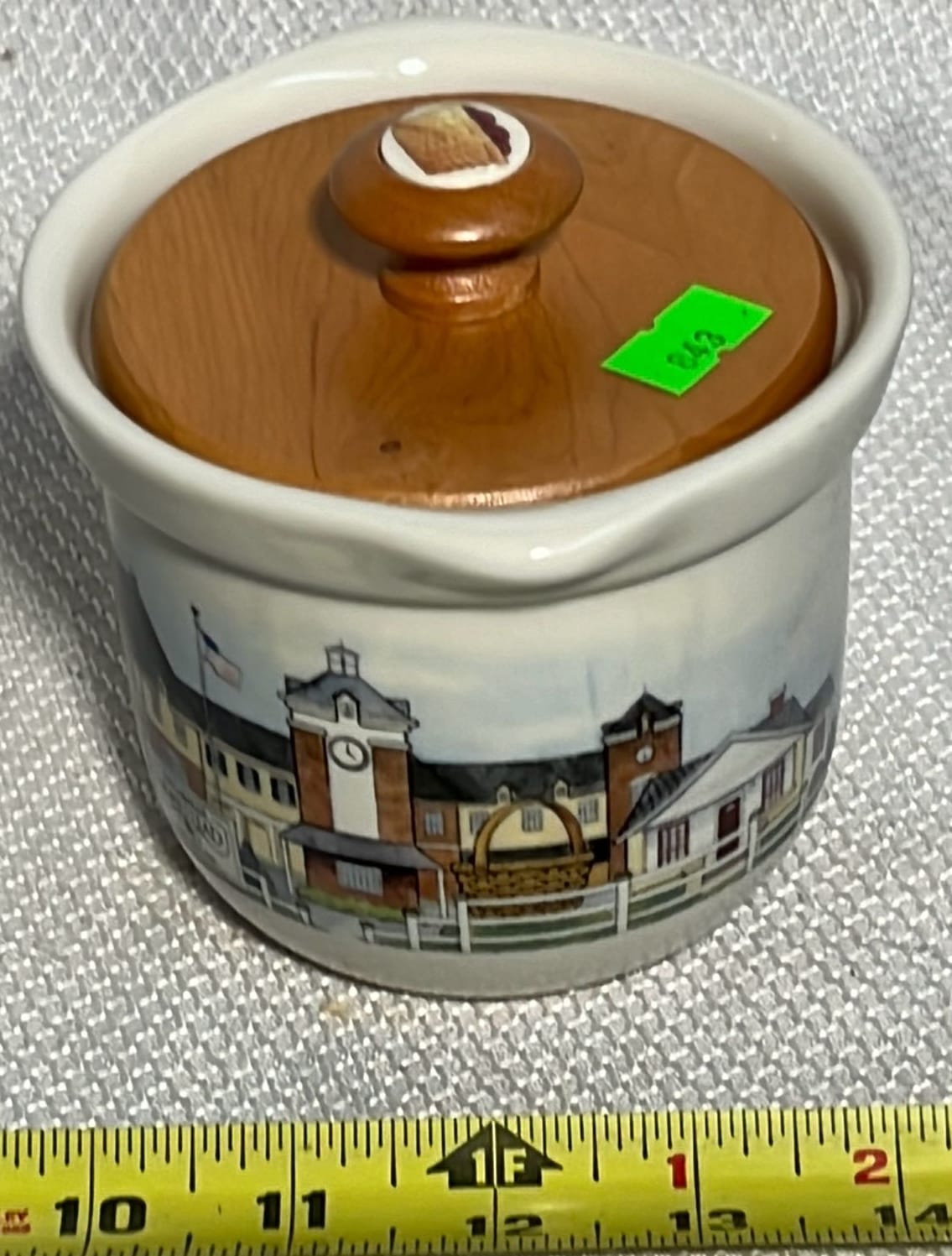 878 Longaberger Pottery Homestead Crock with wood lid 7”