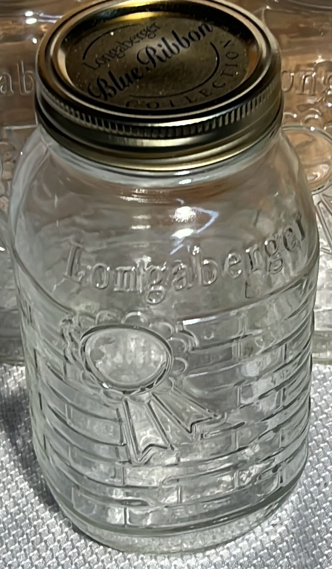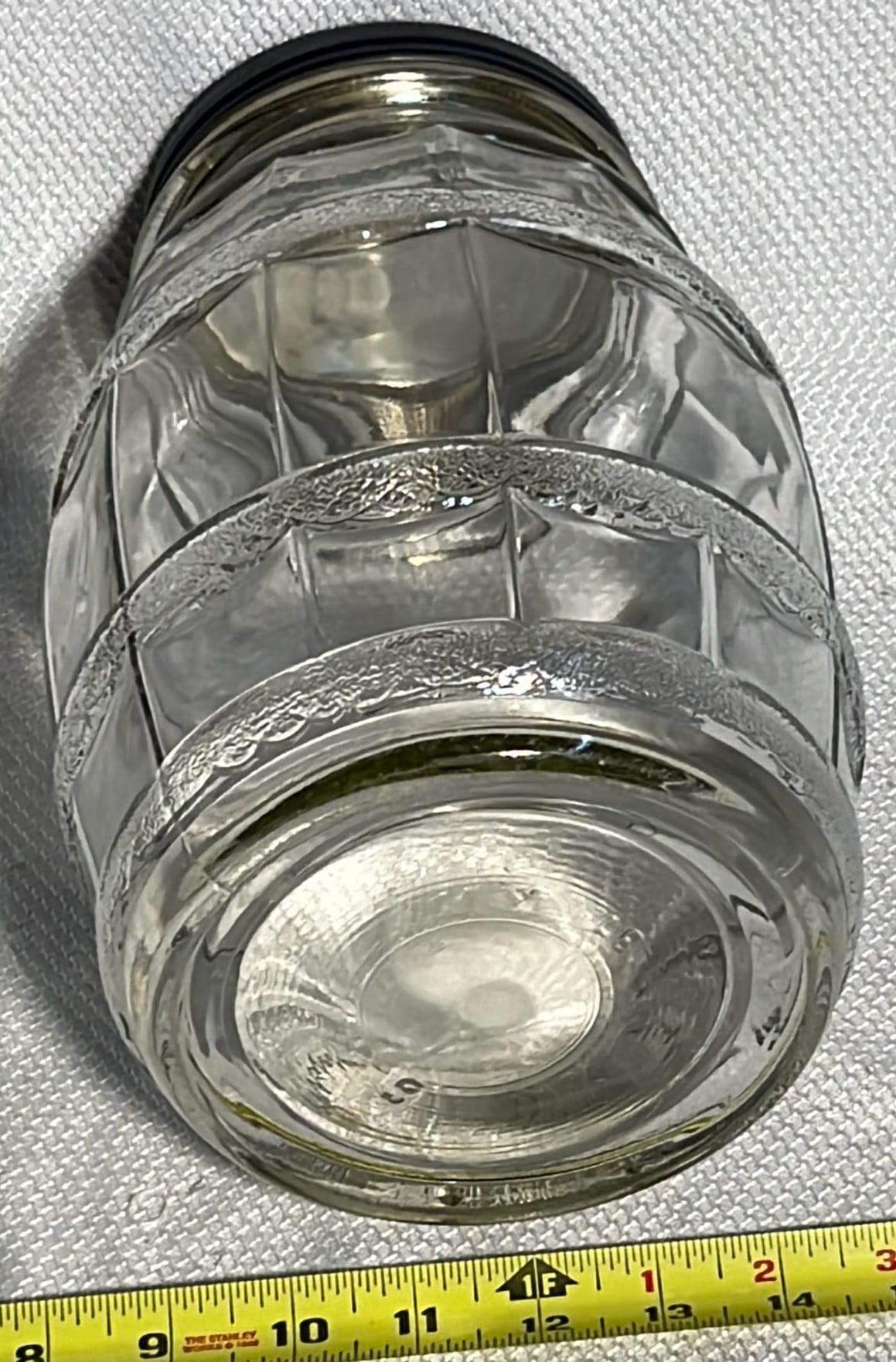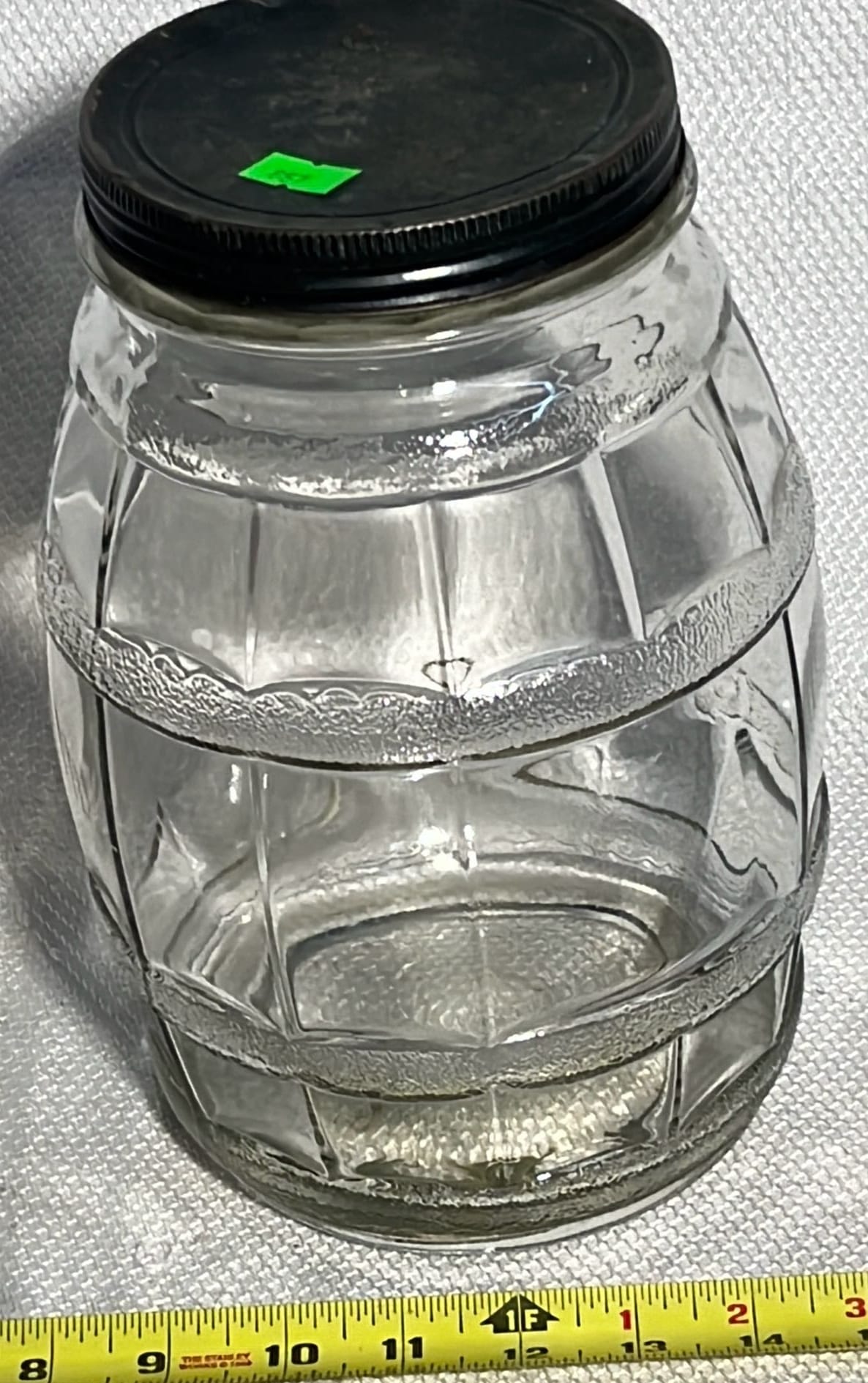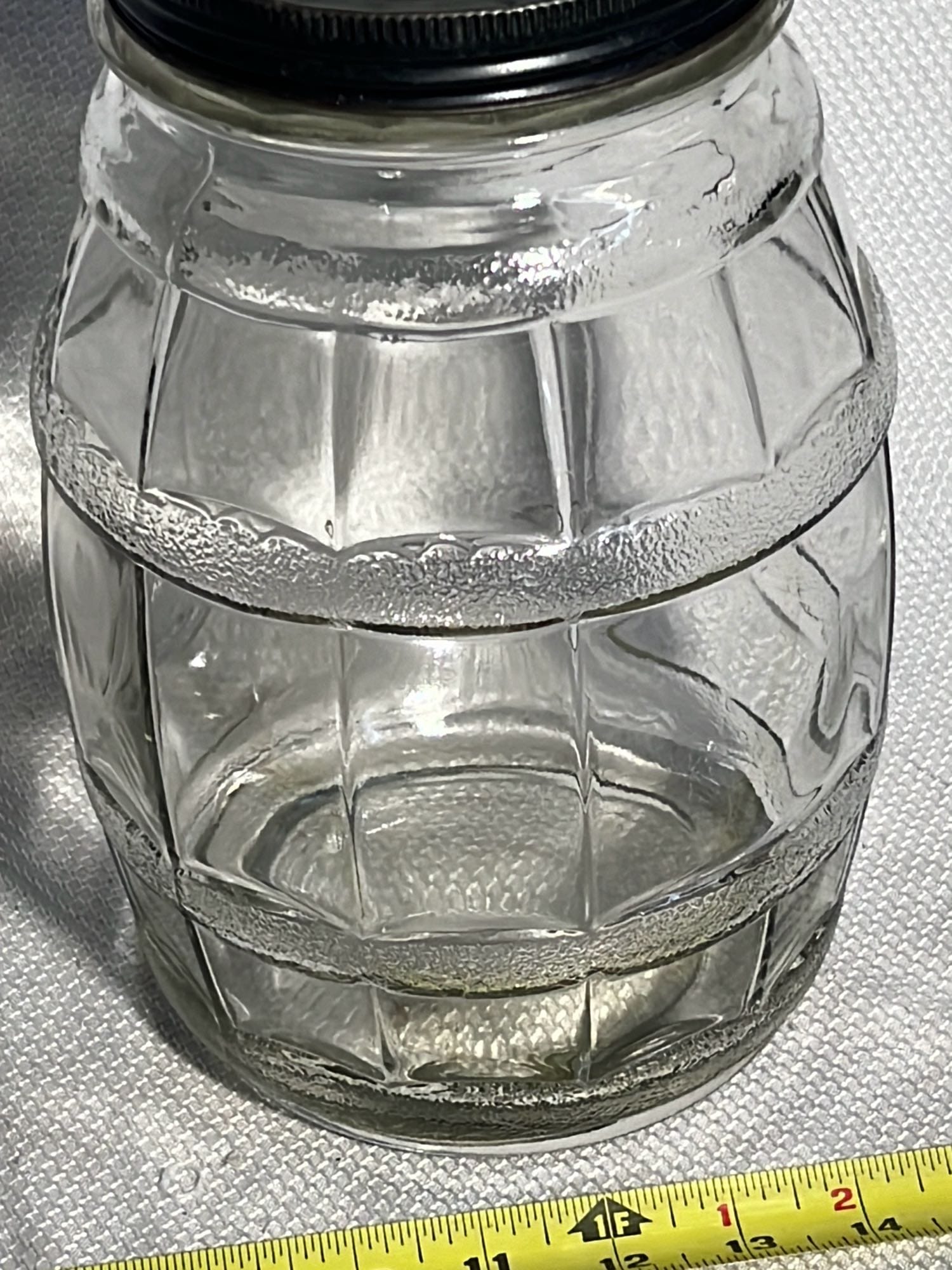 857 Glass Pickle Barrel Jar with metal lid, 1gal 10.25”