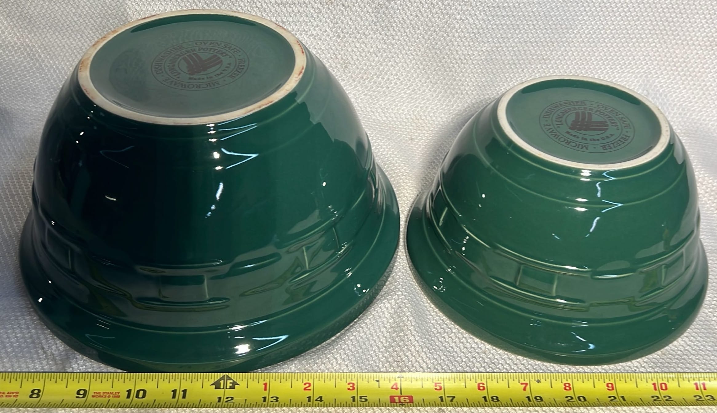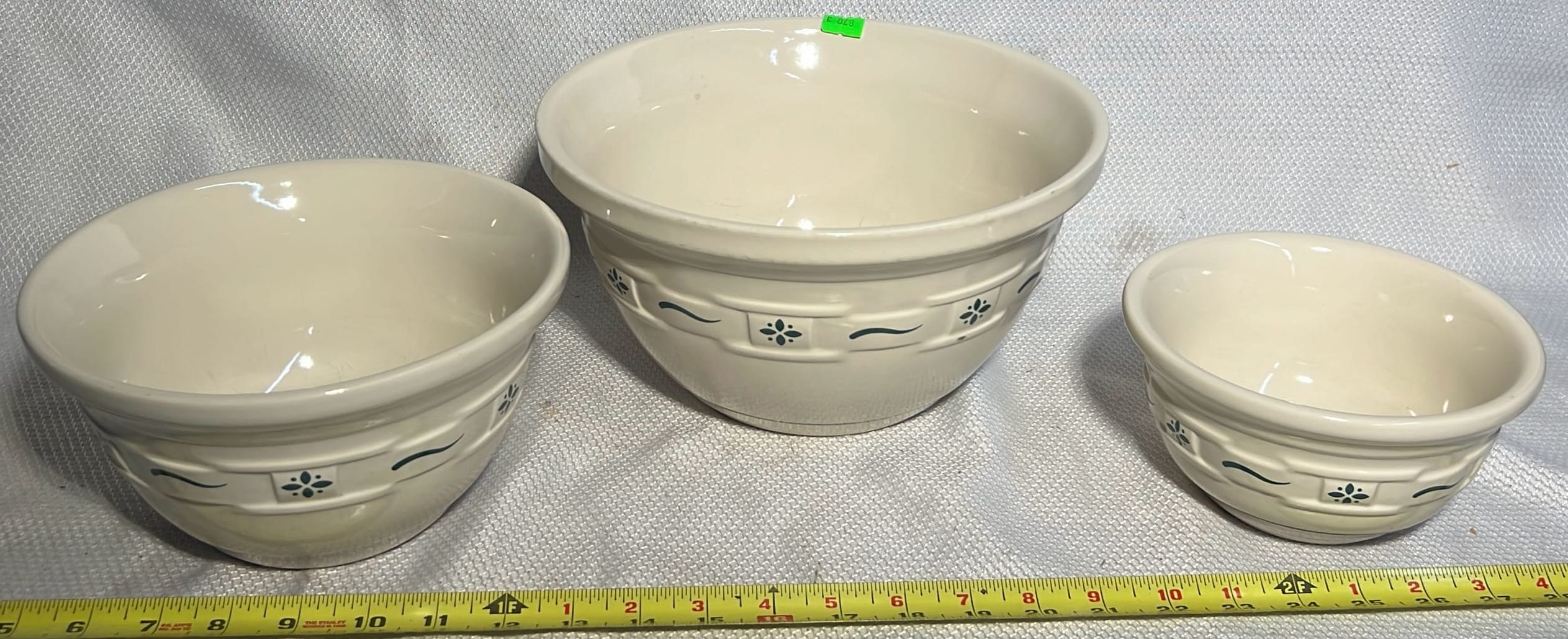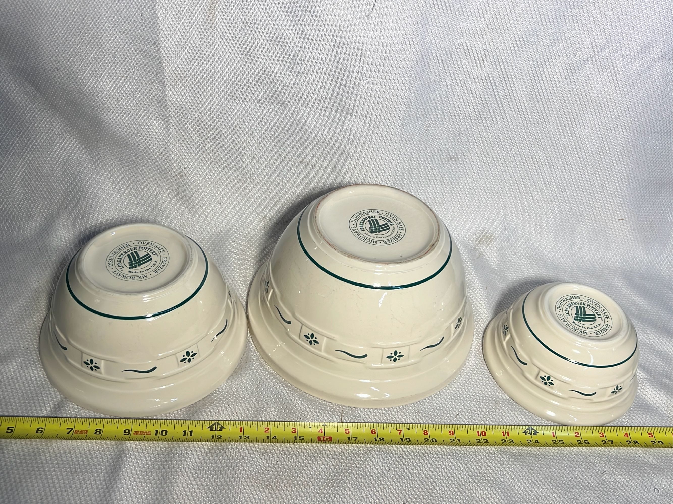 870 3- Longaberger Pottery Green Bowls 7.5”, 8”, 10”