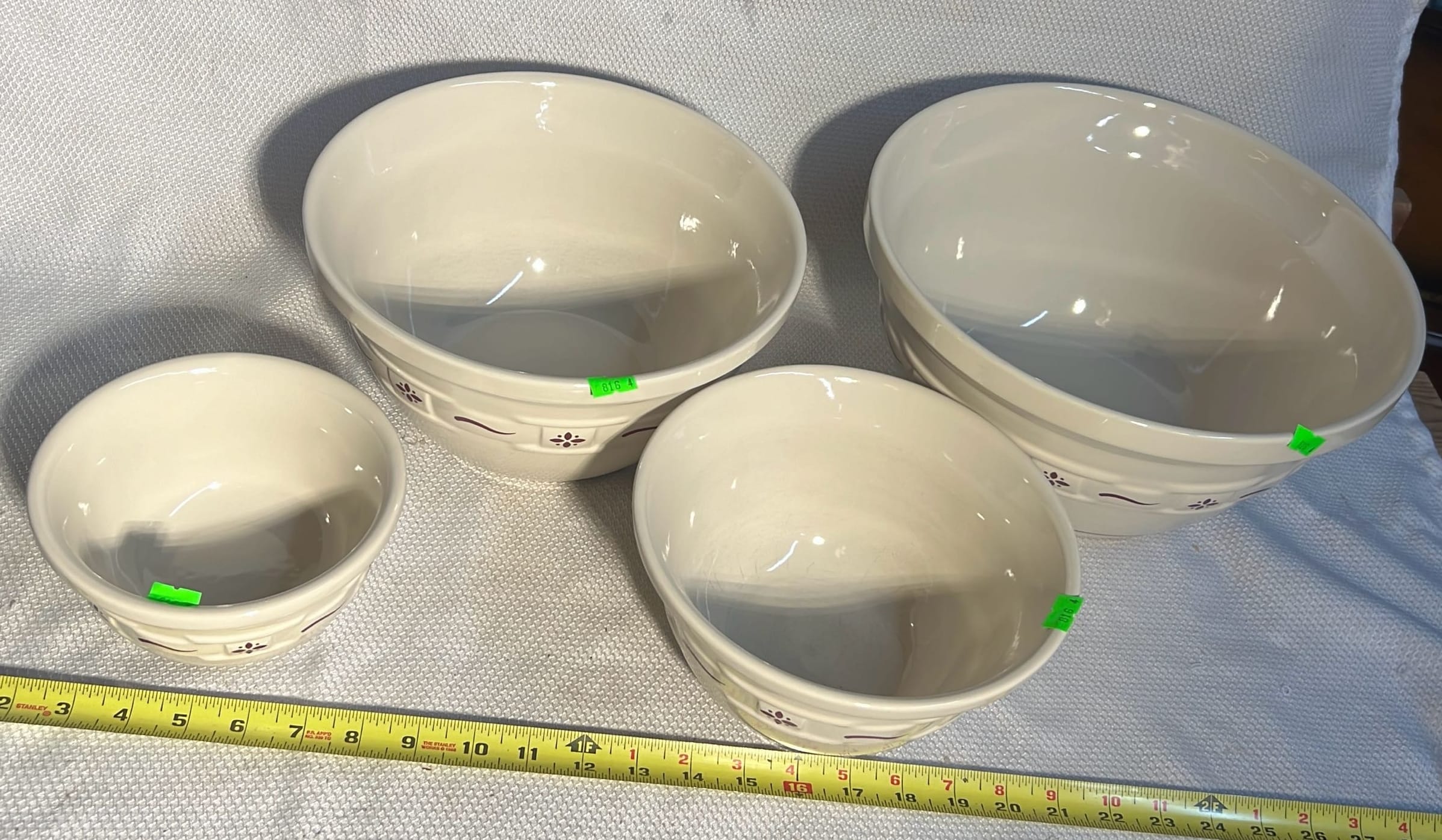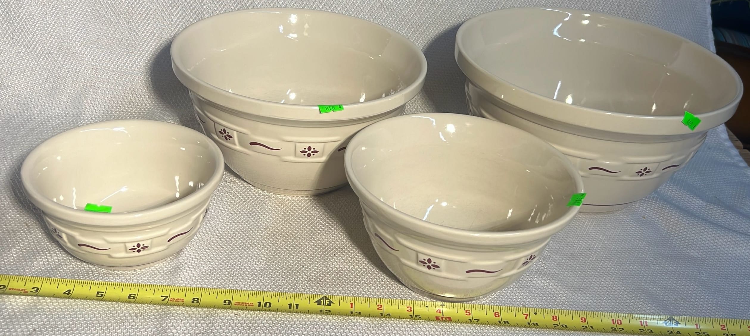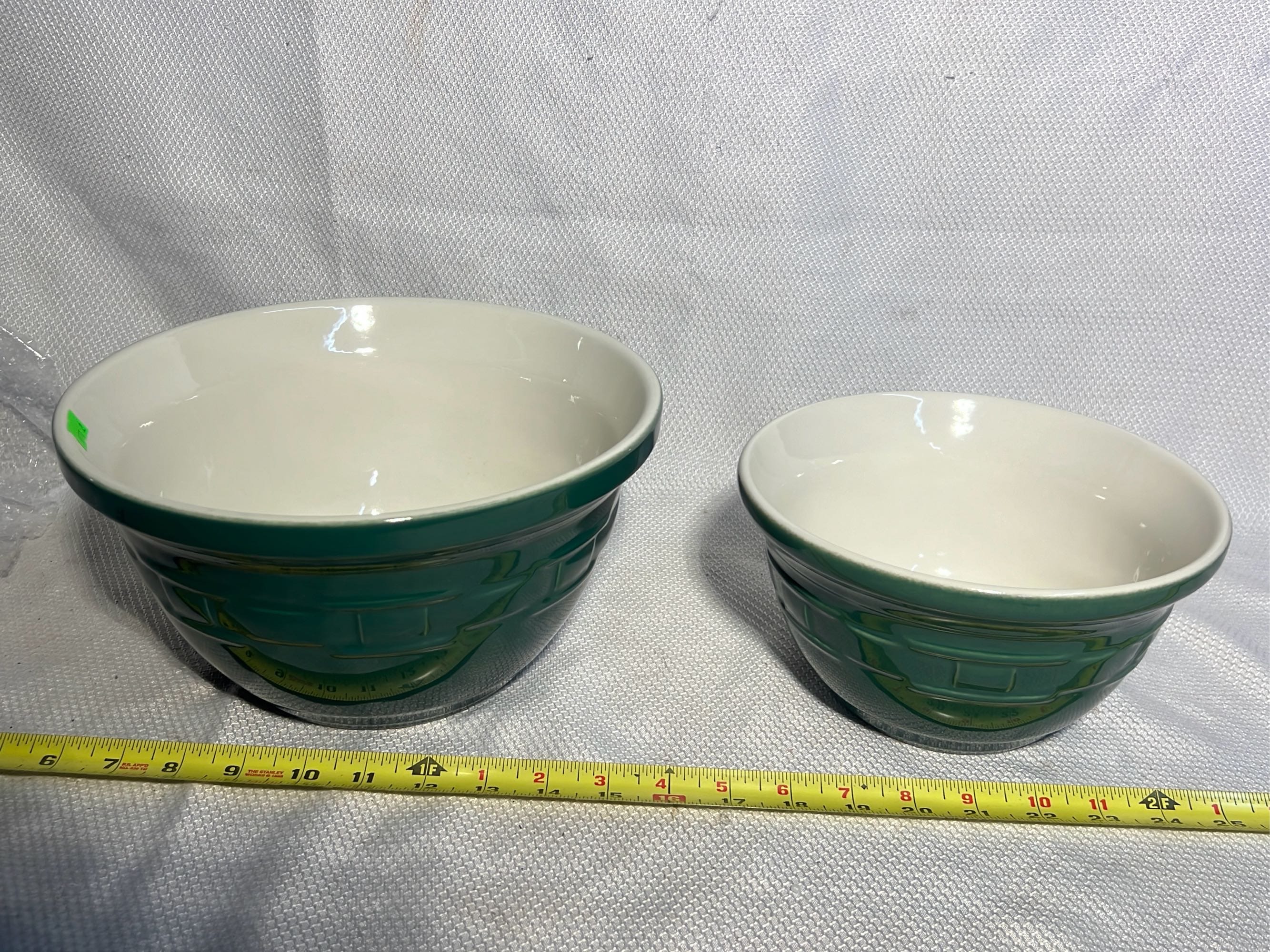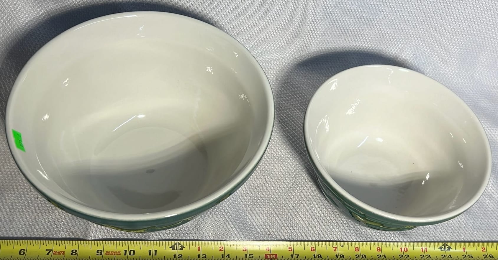 870 3- Longaberger Pottery Green Bowls 7.5”, 8”, 10”