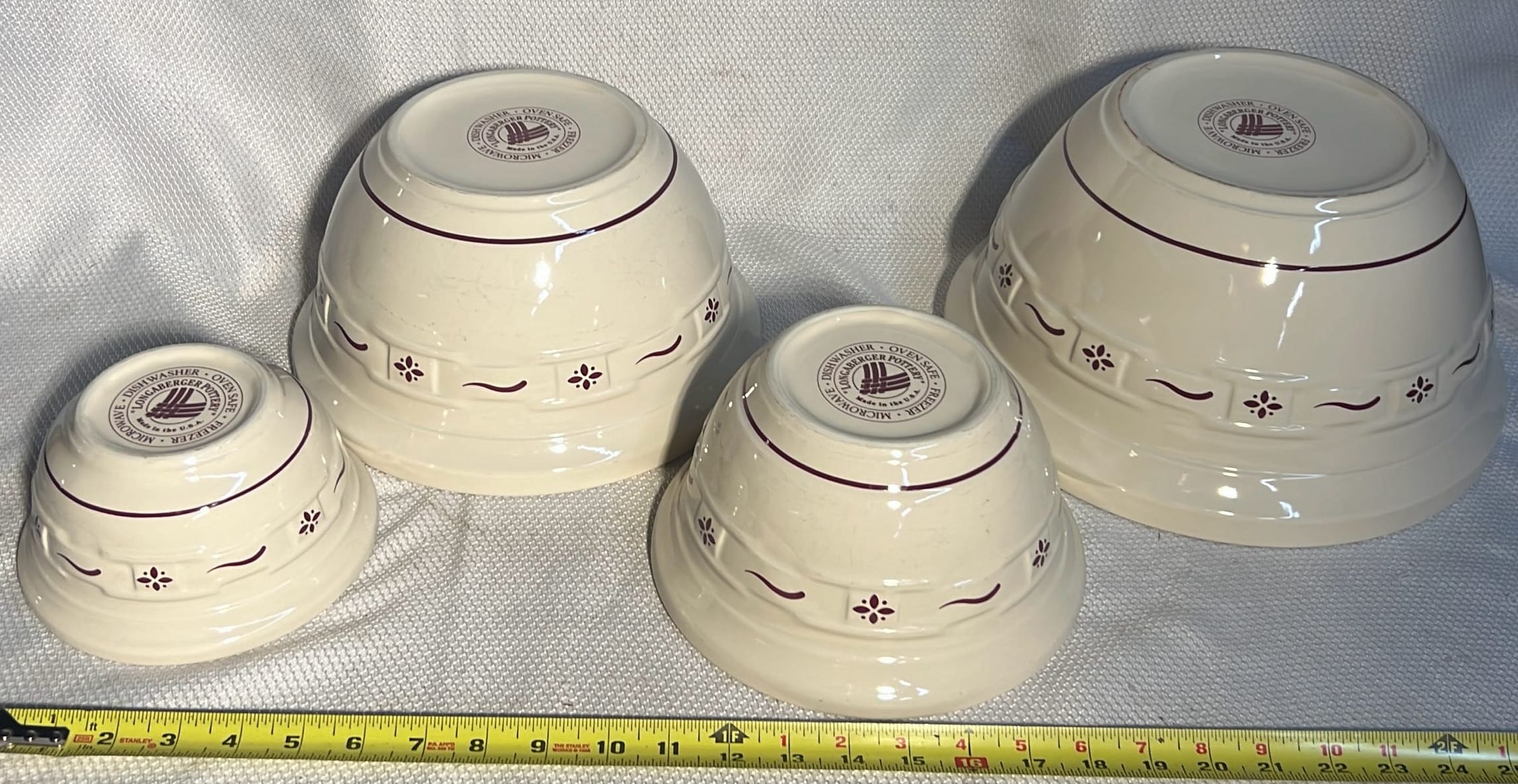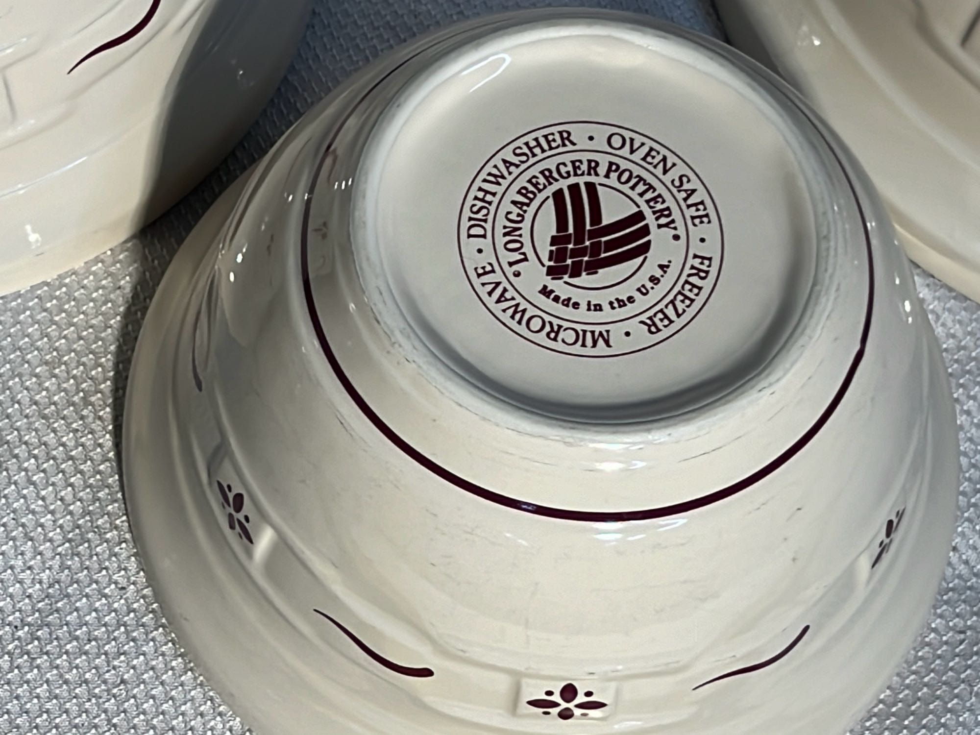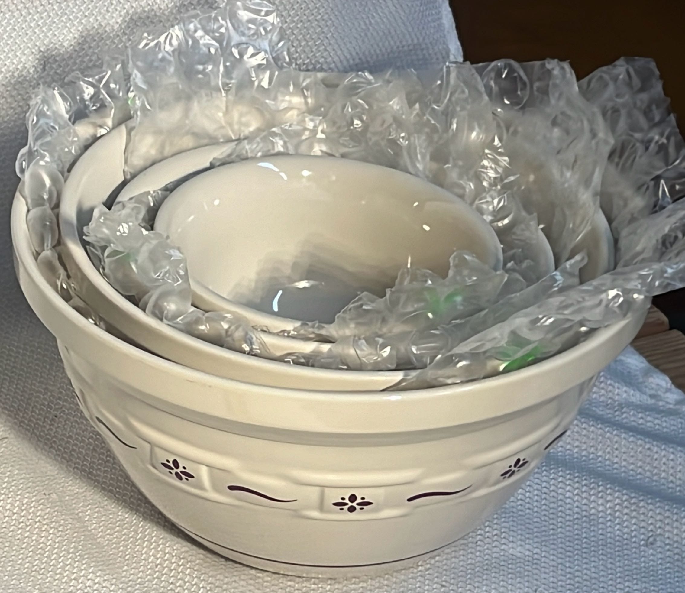 859 3- Longaberger Pottery Woven traditions blue mixing bowls 6.5”, 8”, 10”