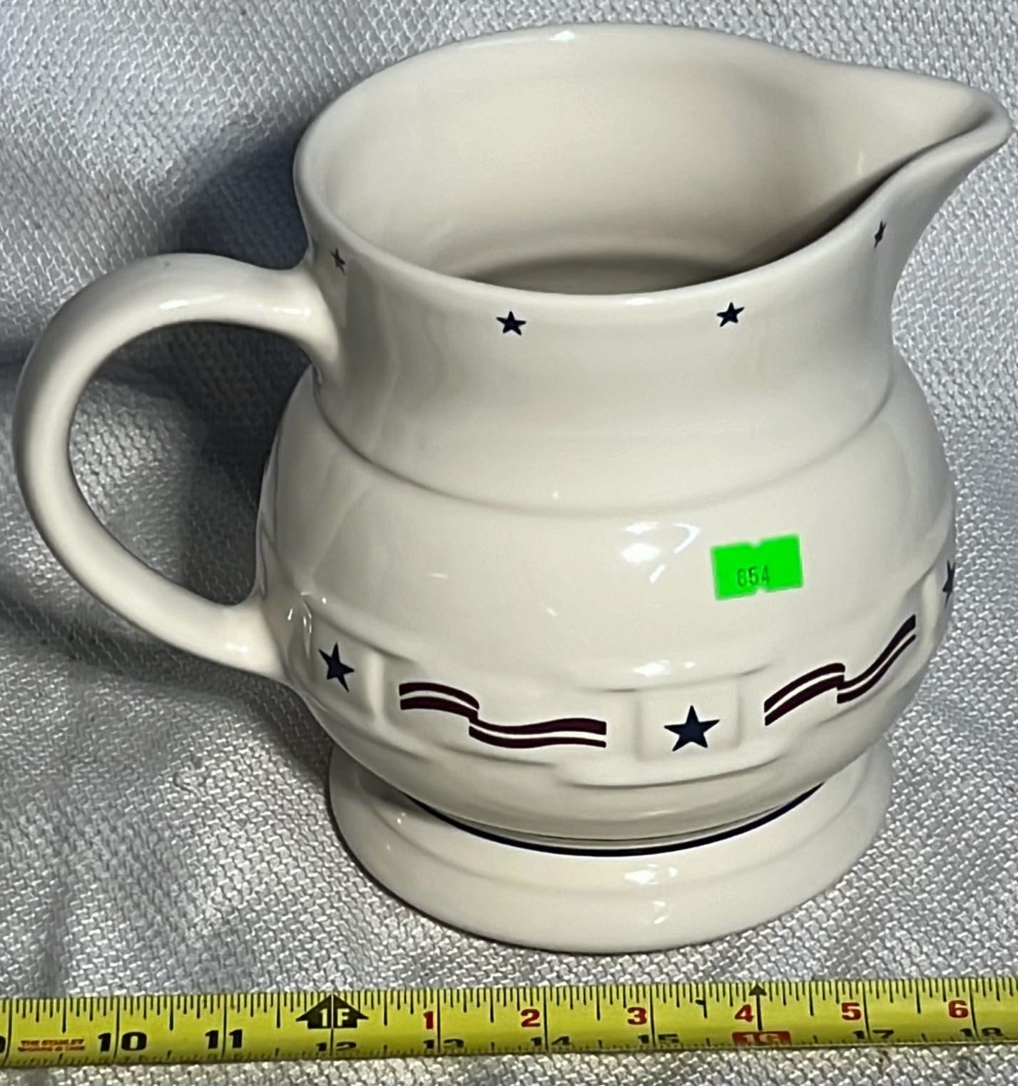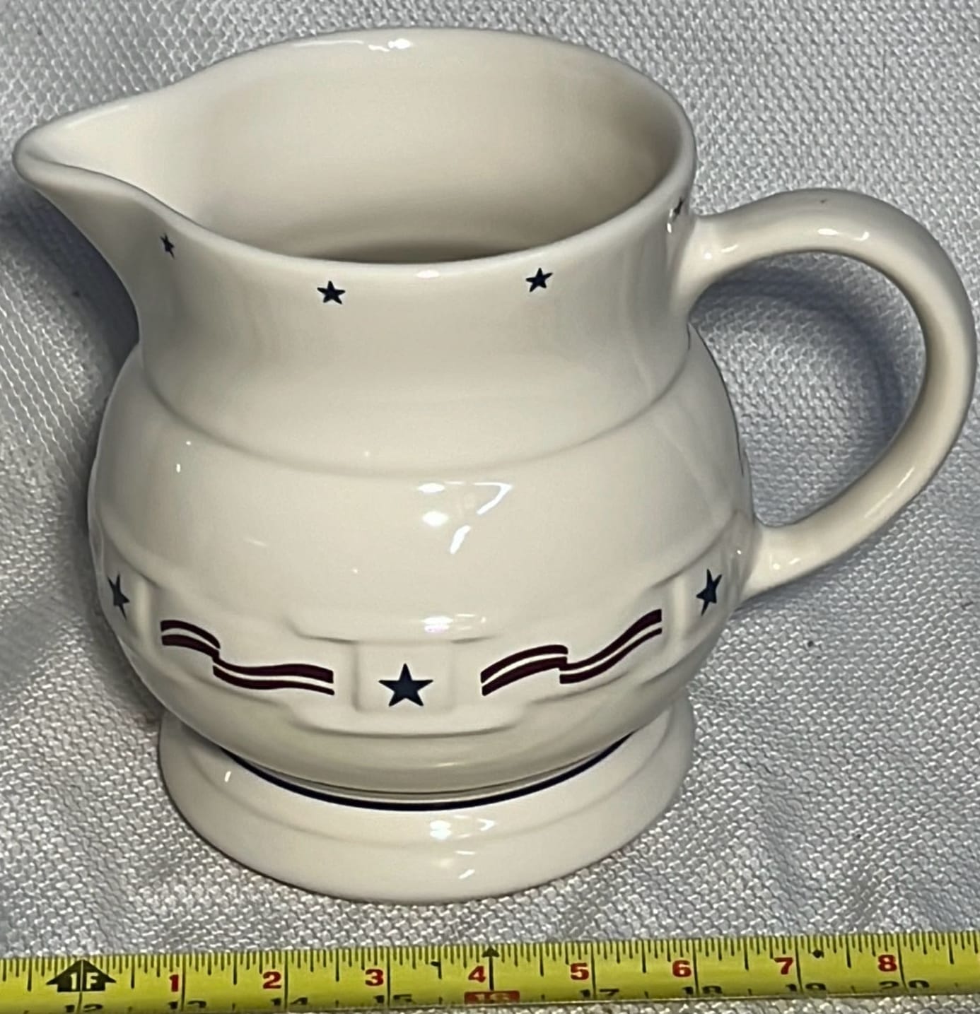 854 Longaberger Pottery All American 2qt Pitcher 7.5”
