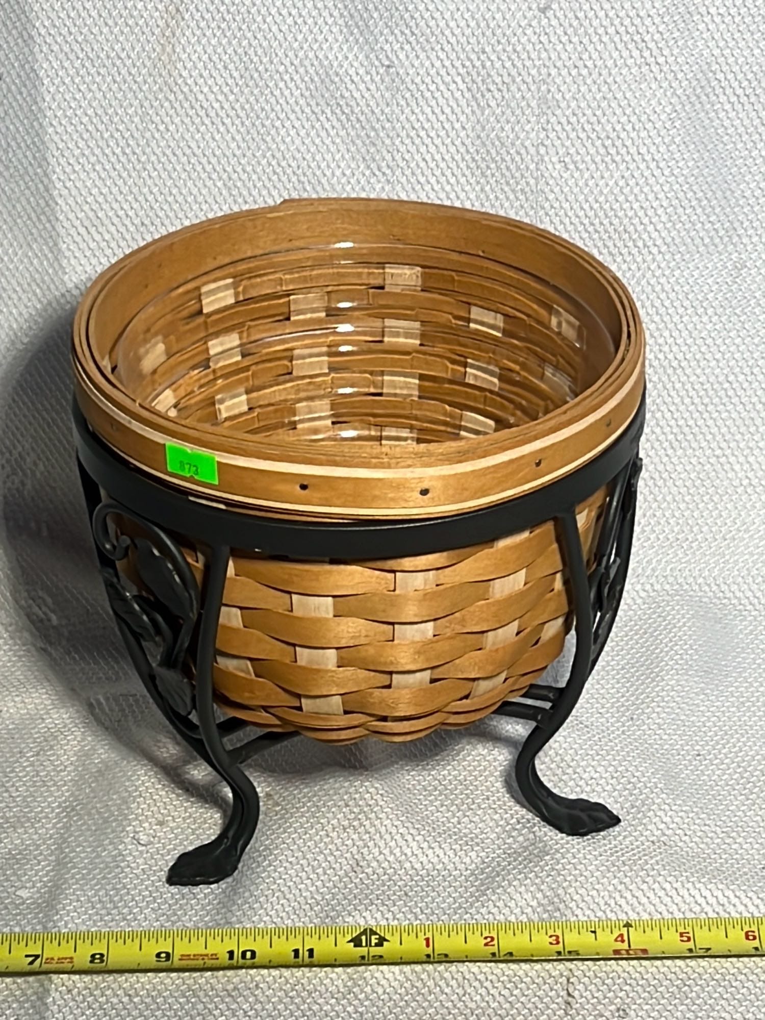 873 2004 Longaberger Foilage Basket with Wrought Iron Stand 8.75”
