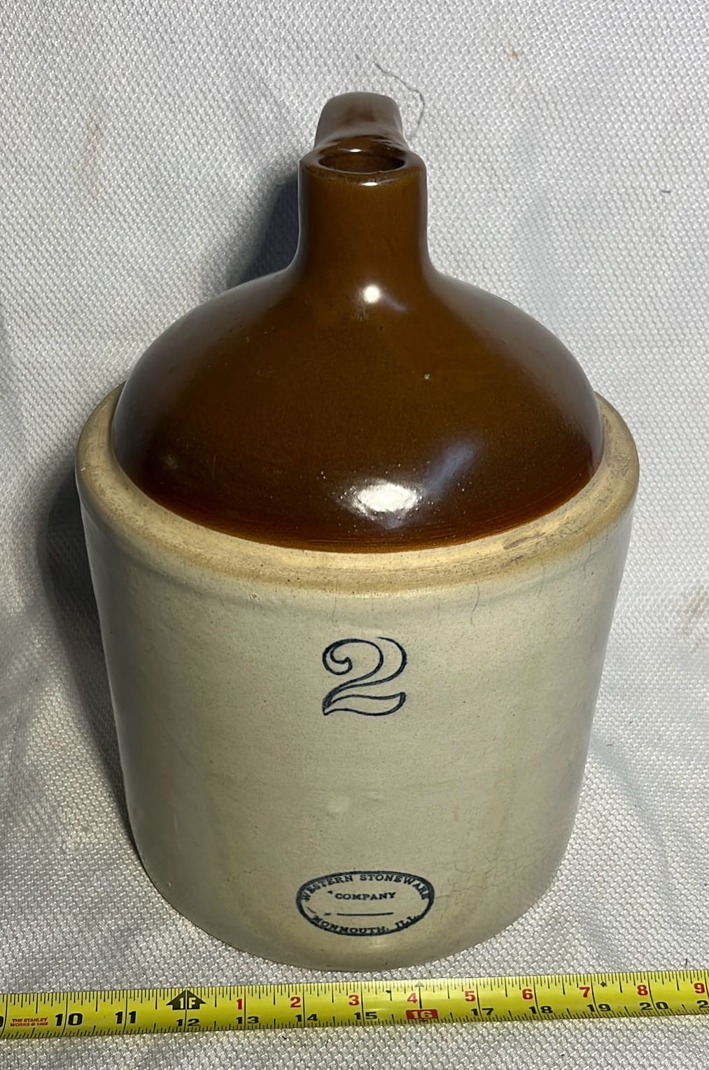 875 Western Stoneware 2-Tone 2gal Crock Jug 9”x13”