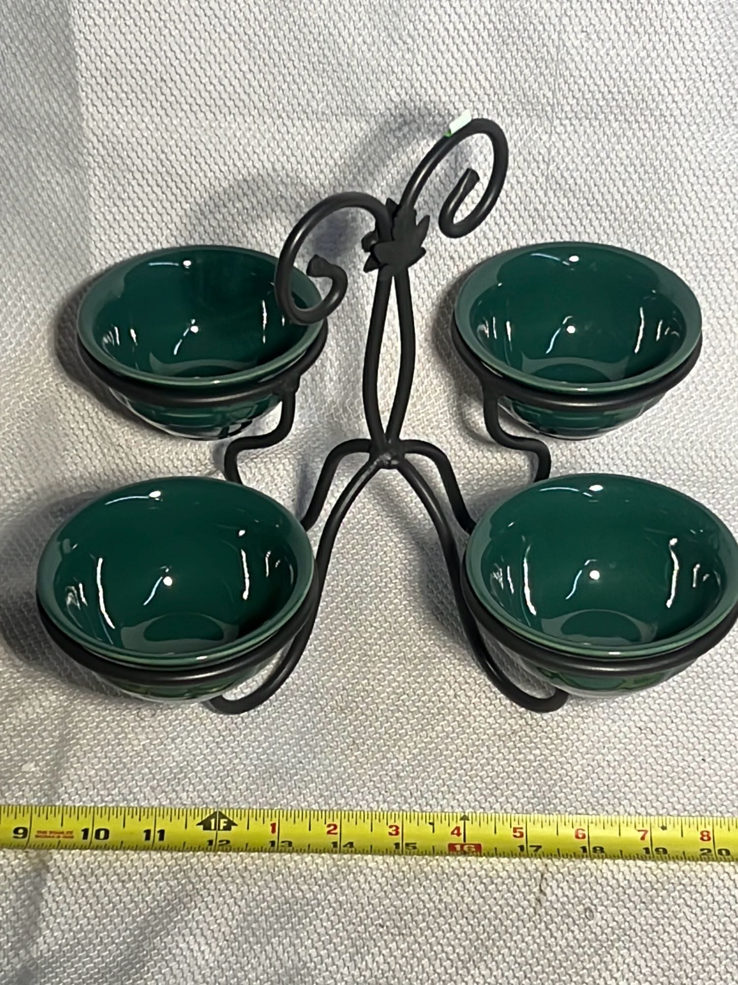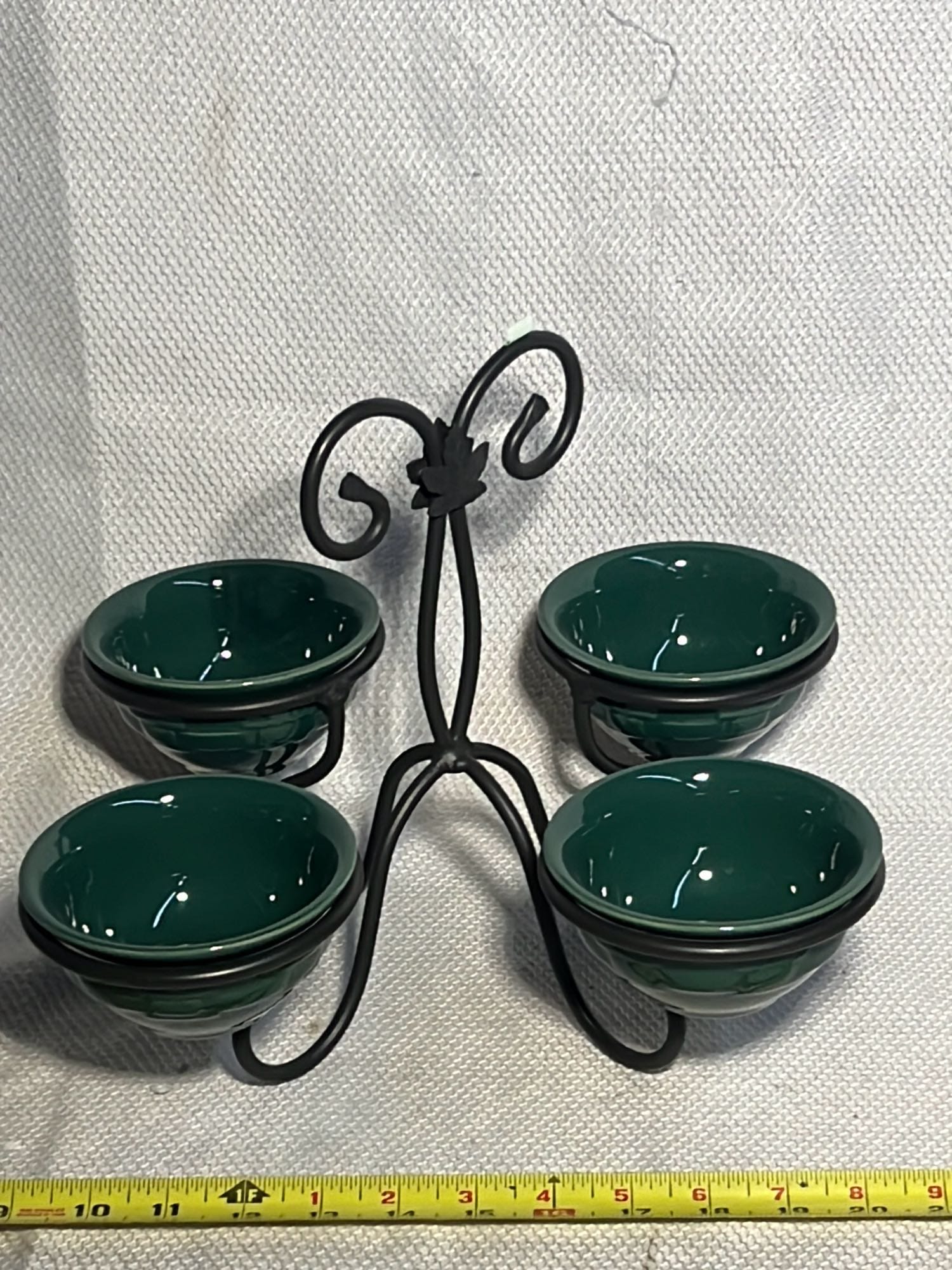 881 Longaberger Wrought Iron Desert Caddy 11”x11”x9.5”, with 5 Ivy pottery bowls 4.25”