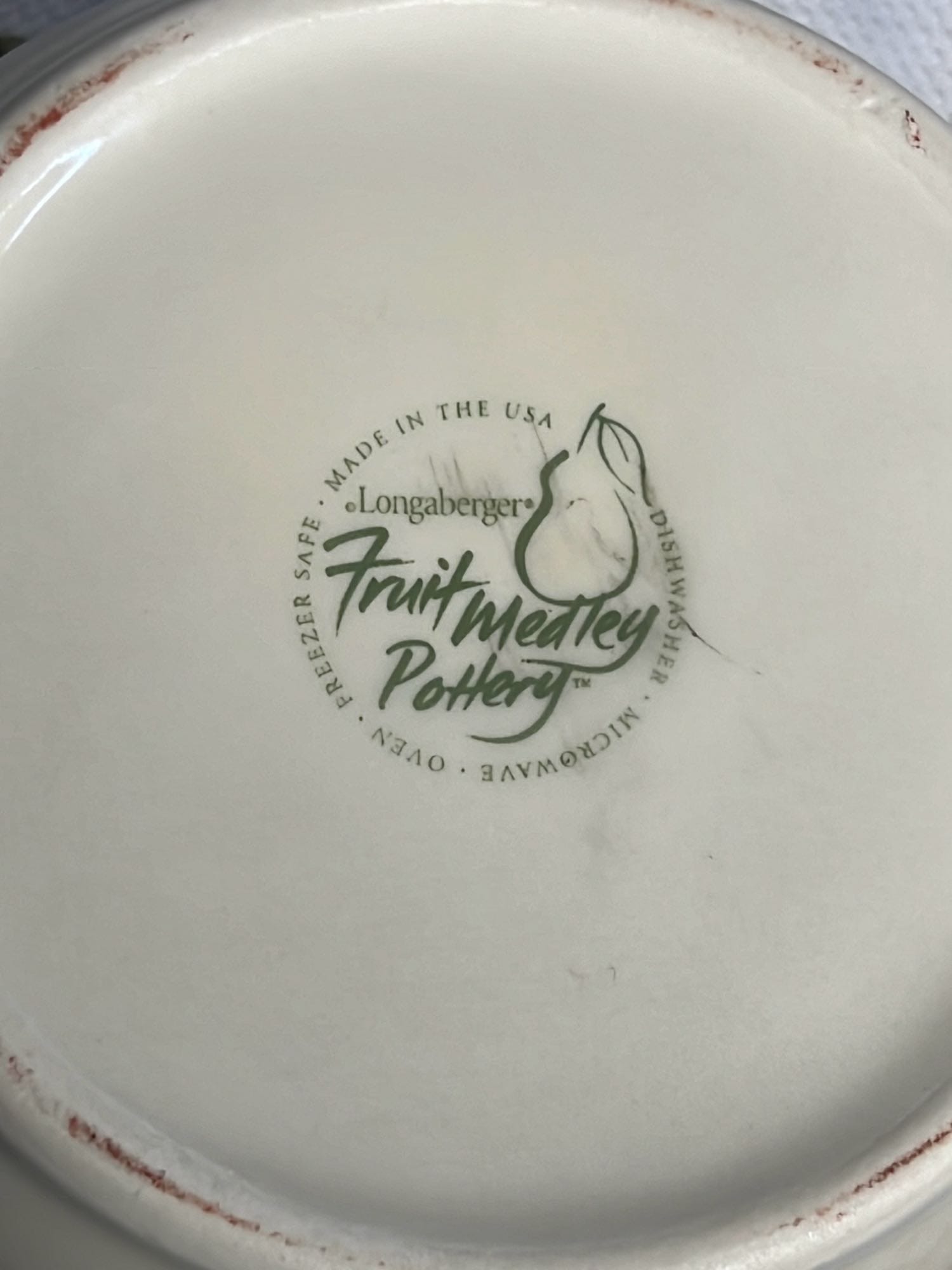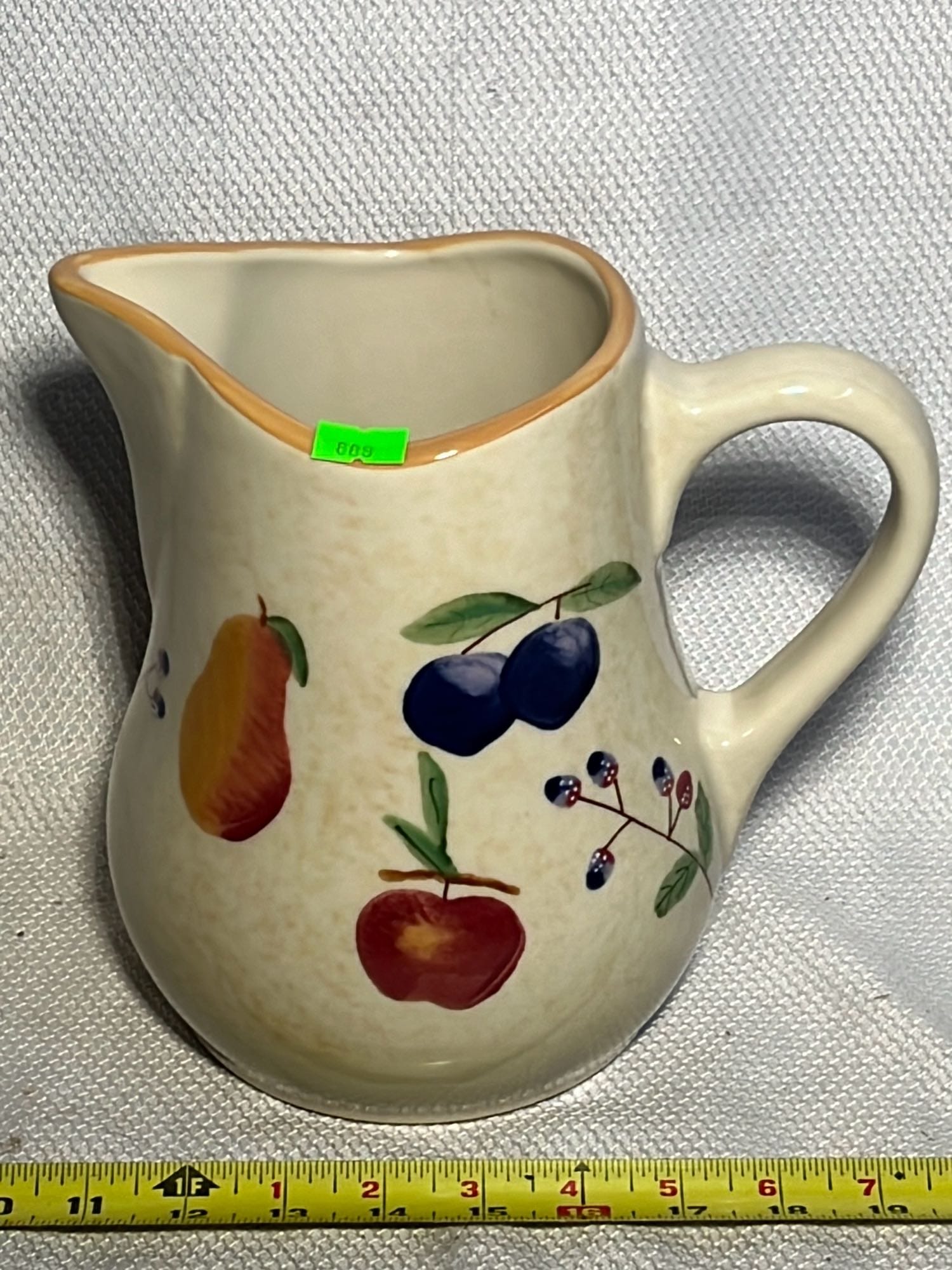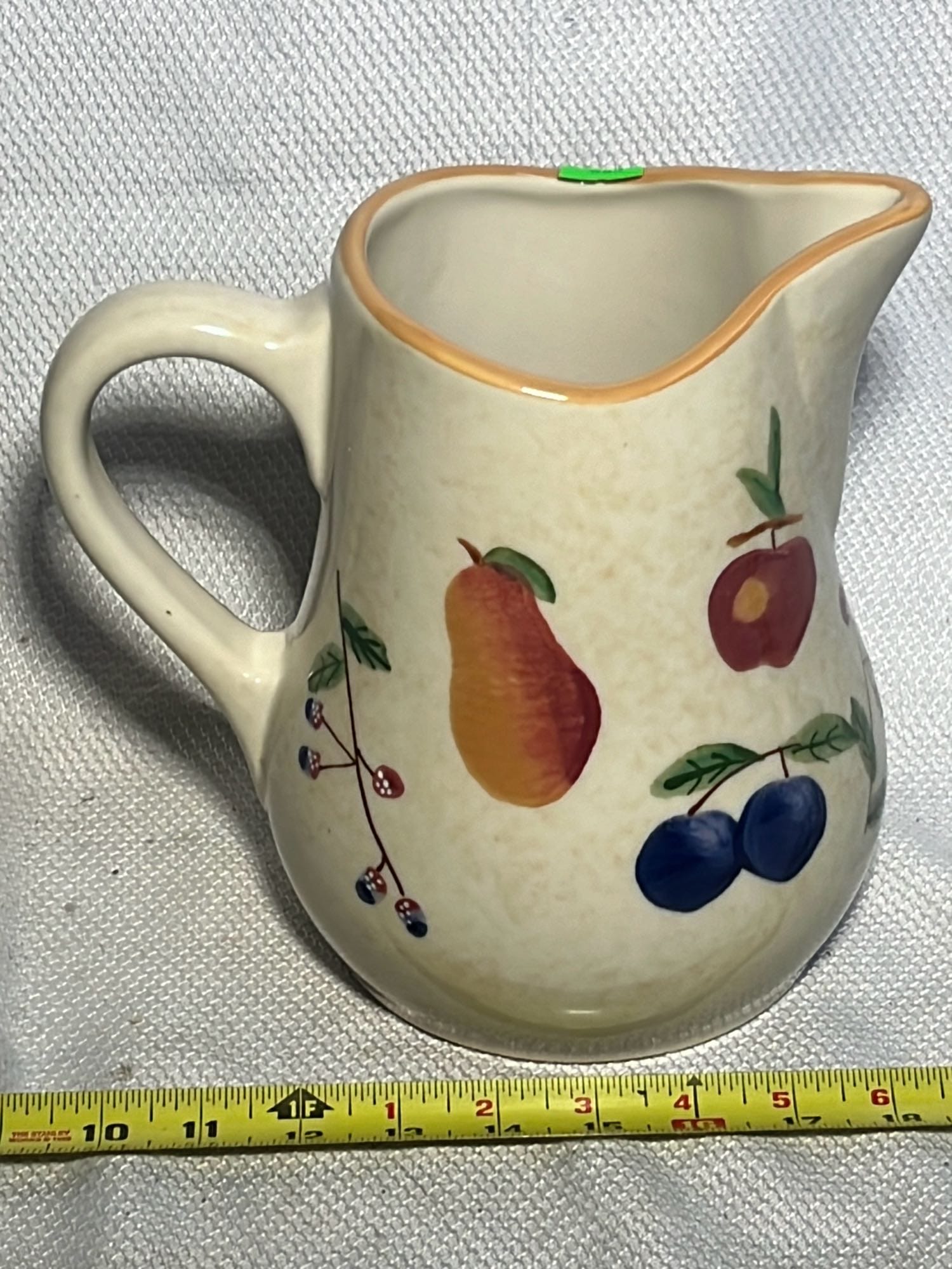 889 Longaberger Pottery Fruit Medley Pitcher 8.5”