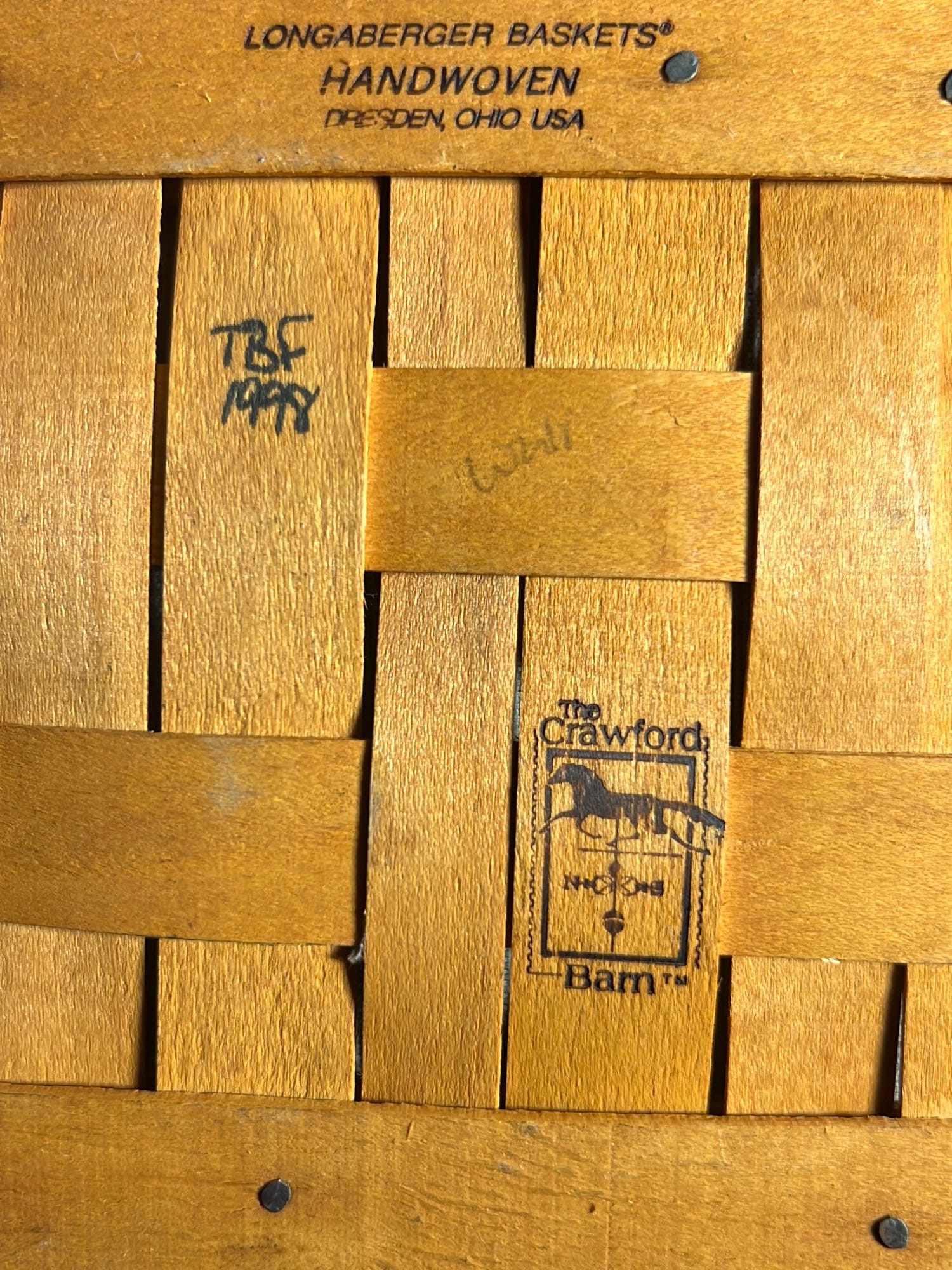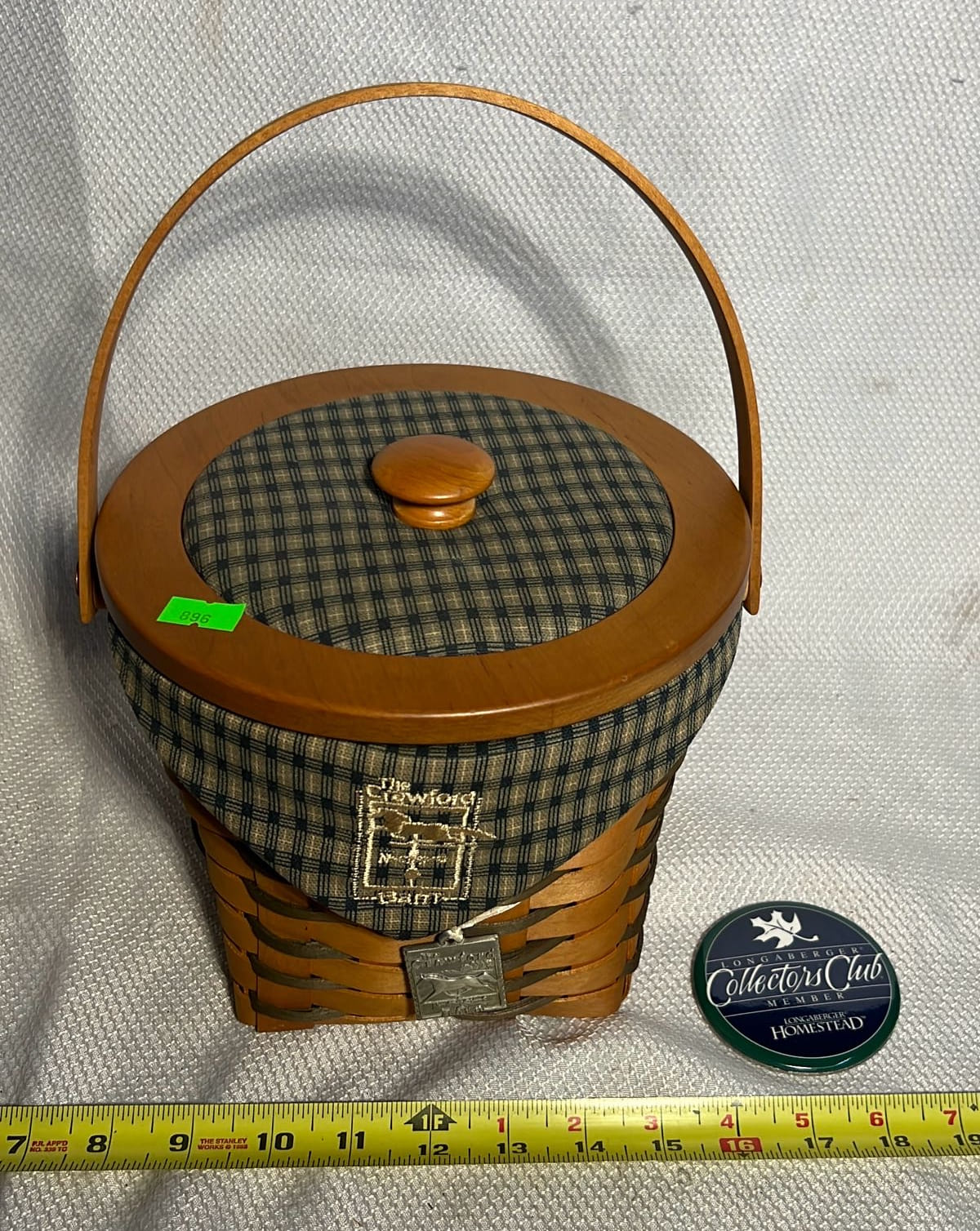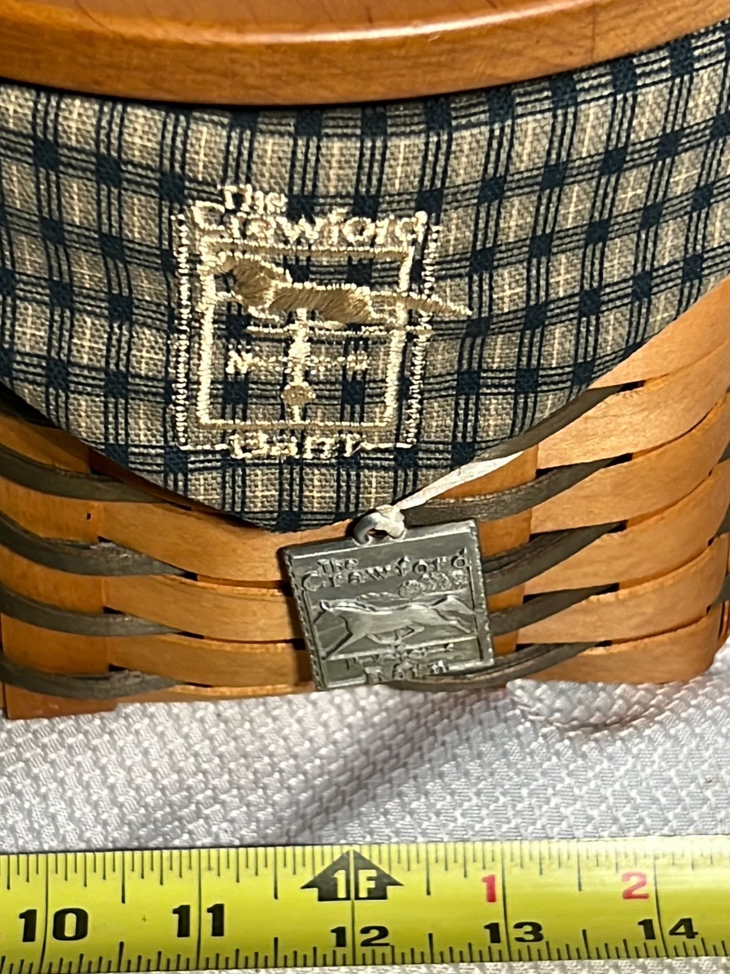 896 1998 Longaberger The Crawford Barn Raising Basket with lid, liner and button