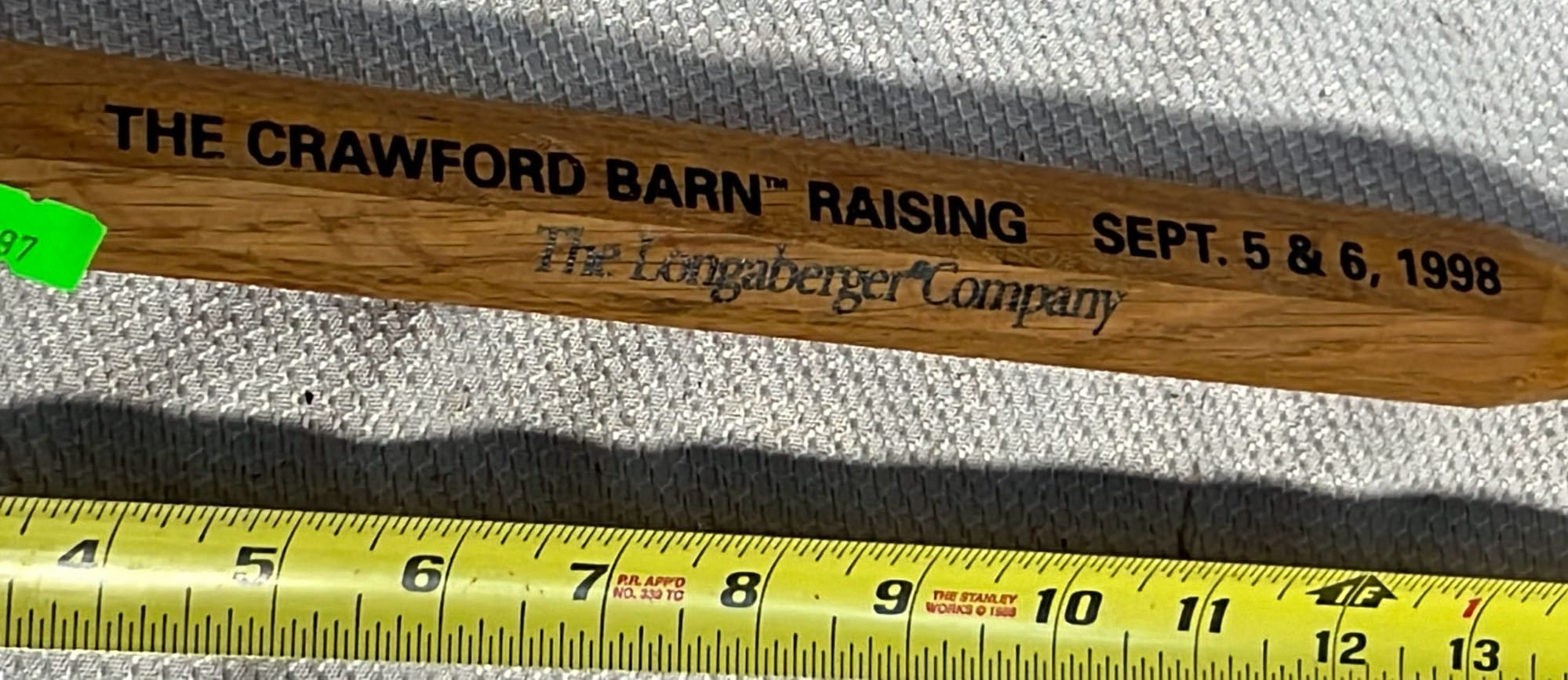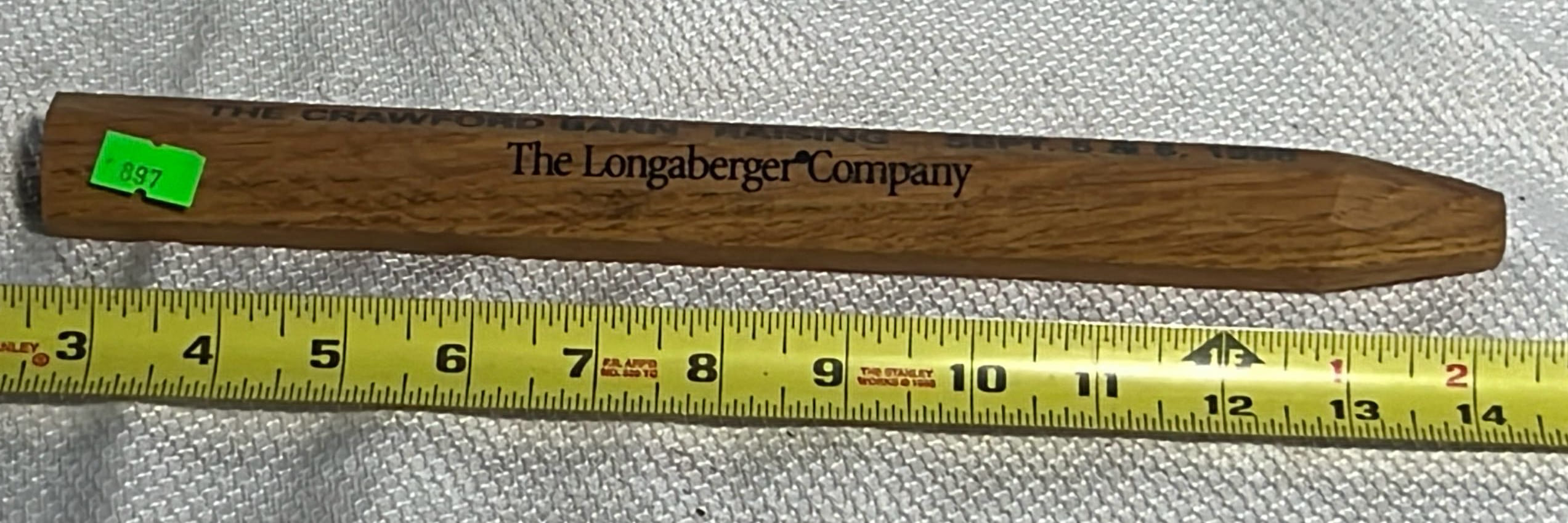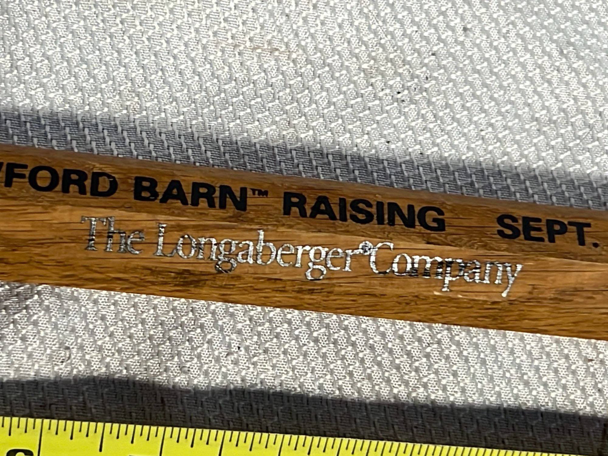 897 1998 Longaberger The Crawford Barn Raising wood barn beam pin 12”