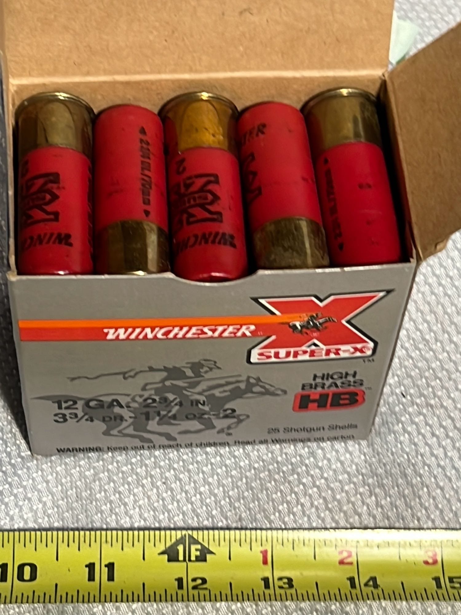 908 Winchester Super X 12ga High Brass shotshells, 25 shells