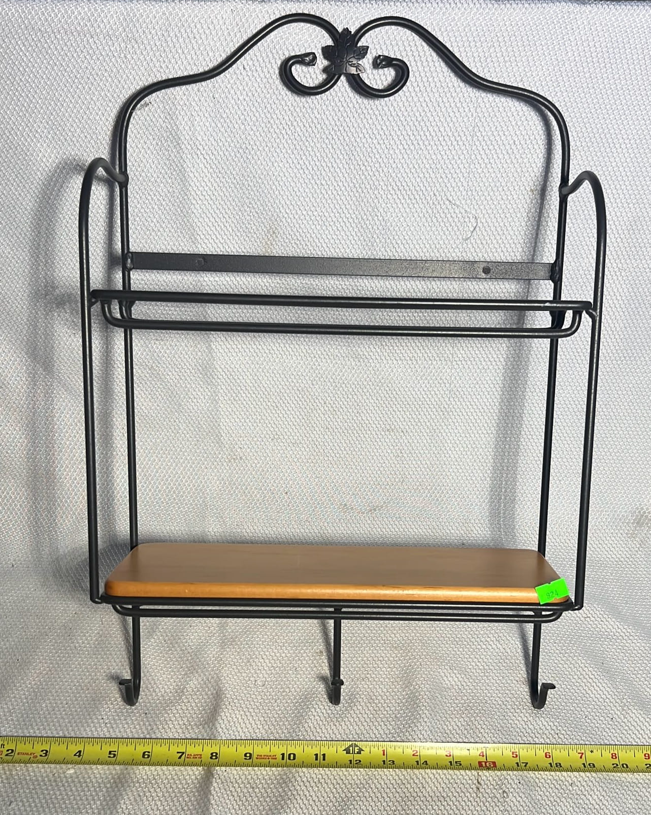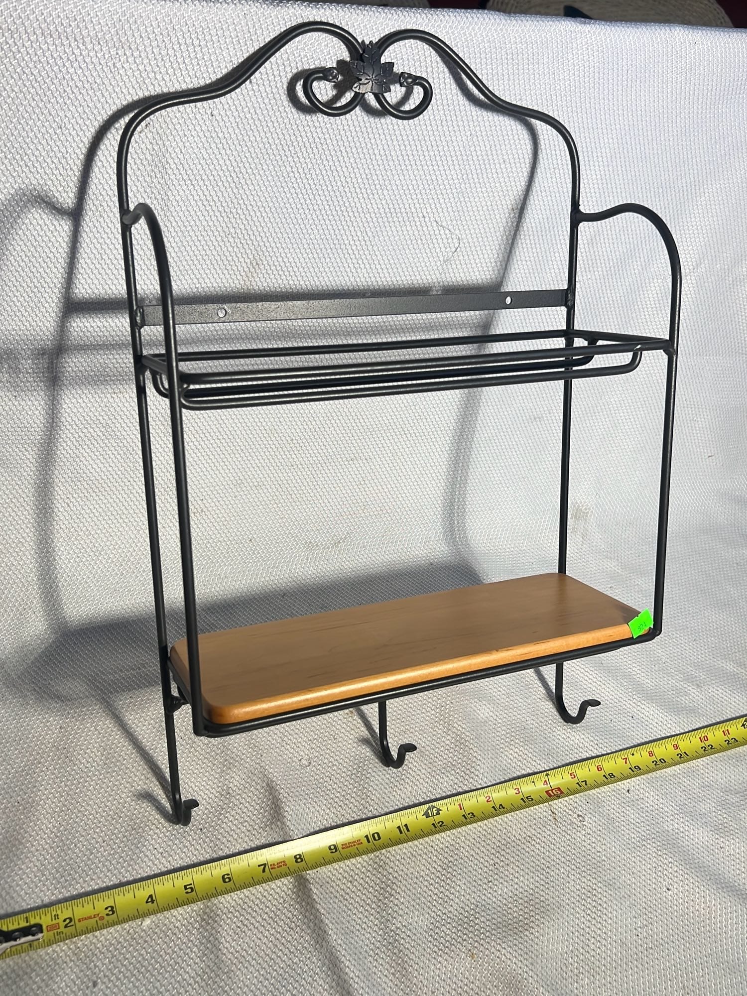 924 Longaberger Wrought Iron Envelope Rack 2-Tier Hanging Wall Shelf Key Hook 13”x20”