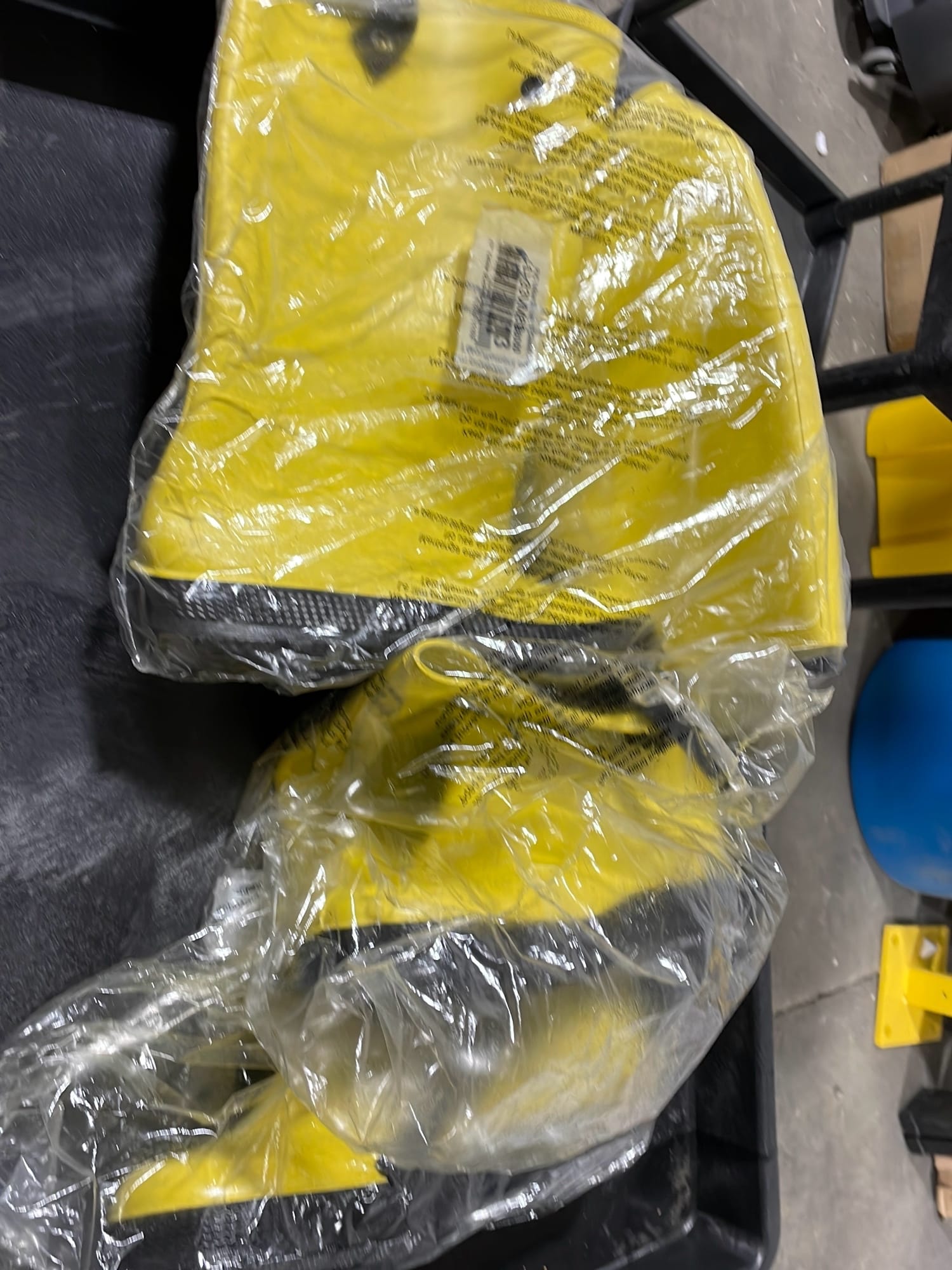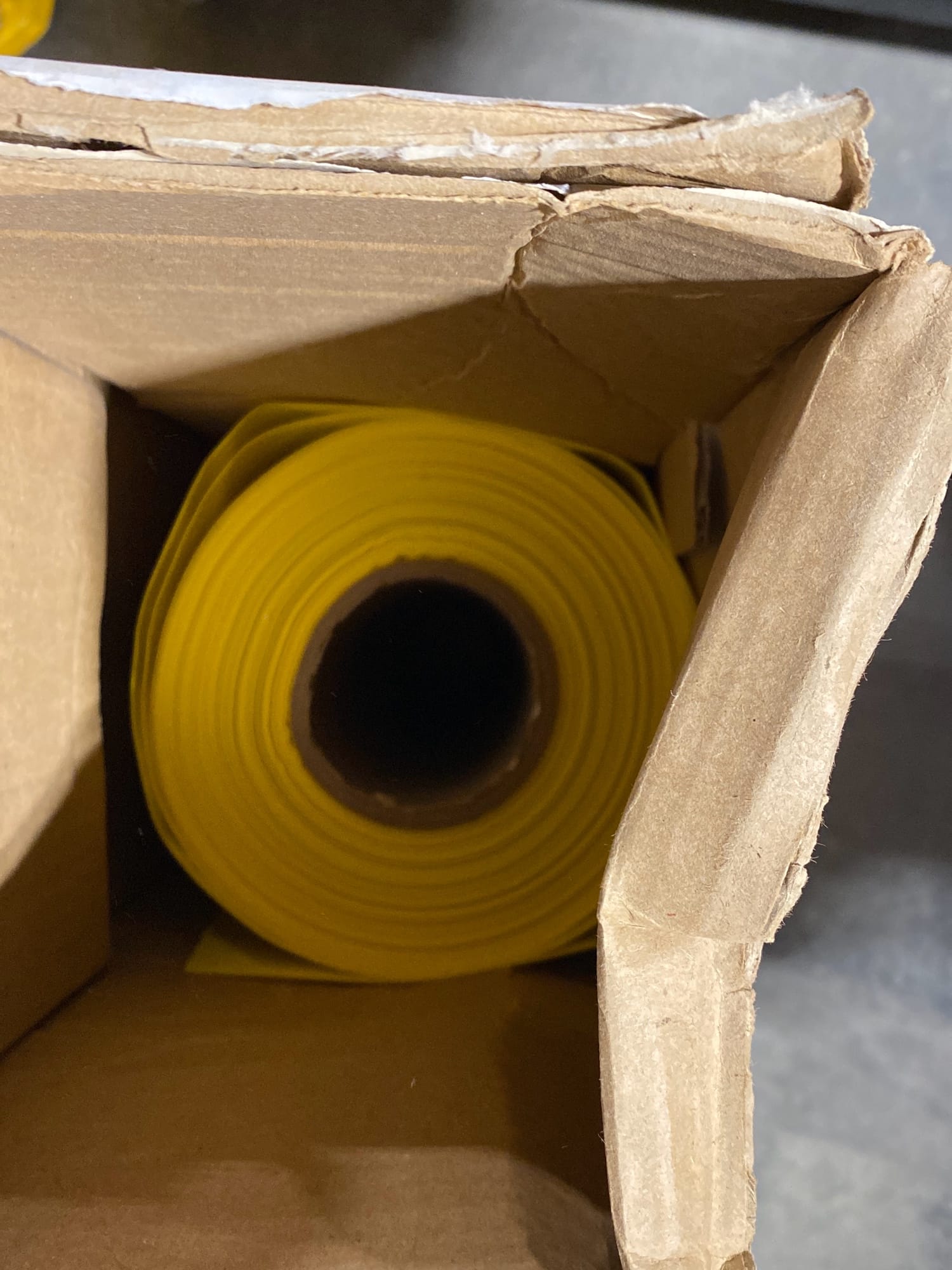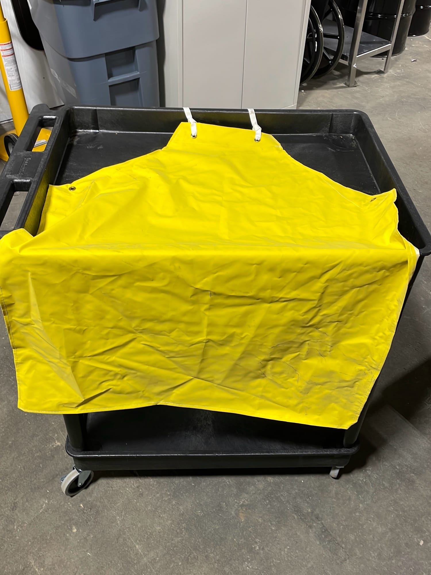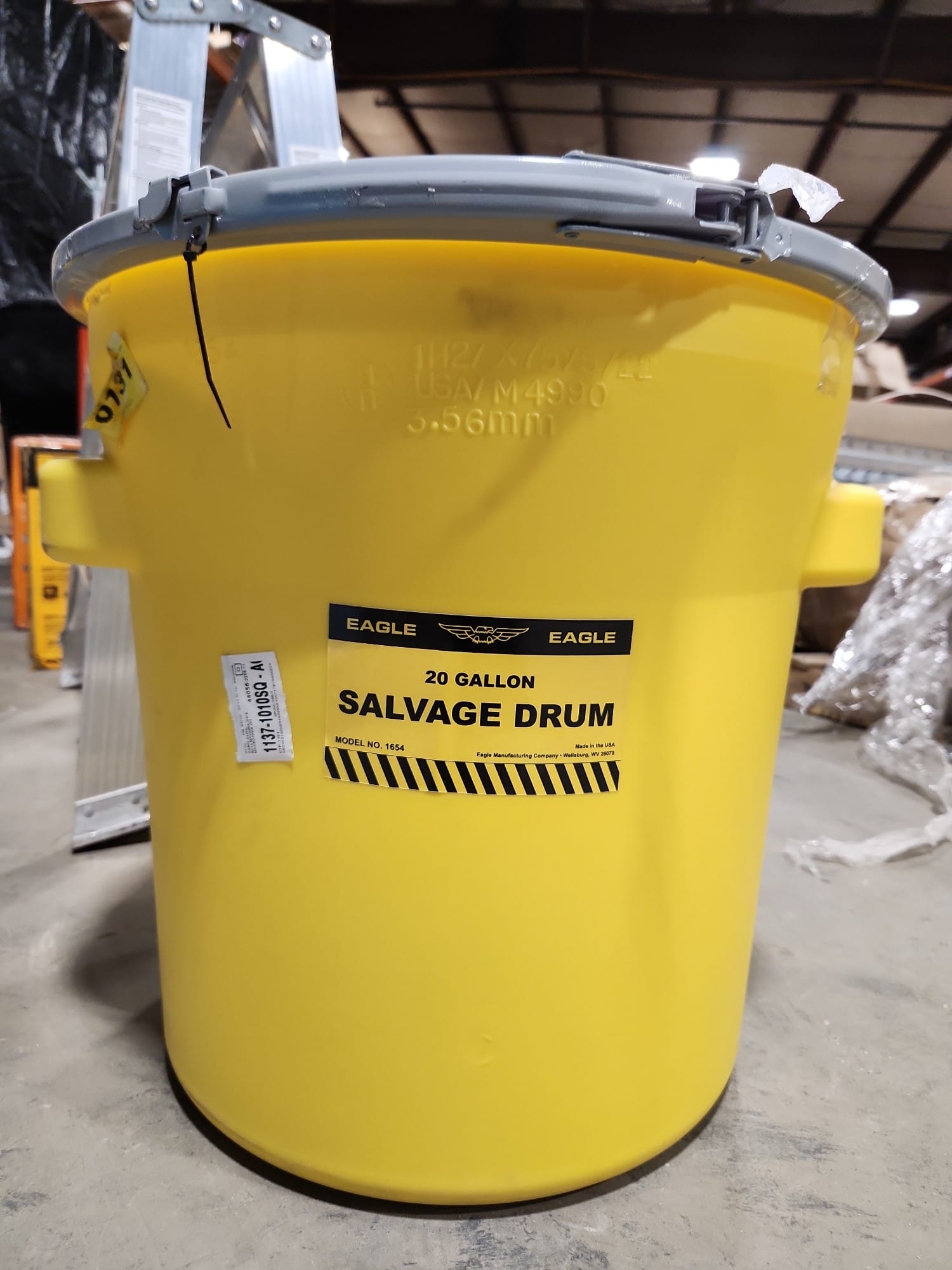 1635 Rubbermaid 50 gal yellow bin, wheels missing
