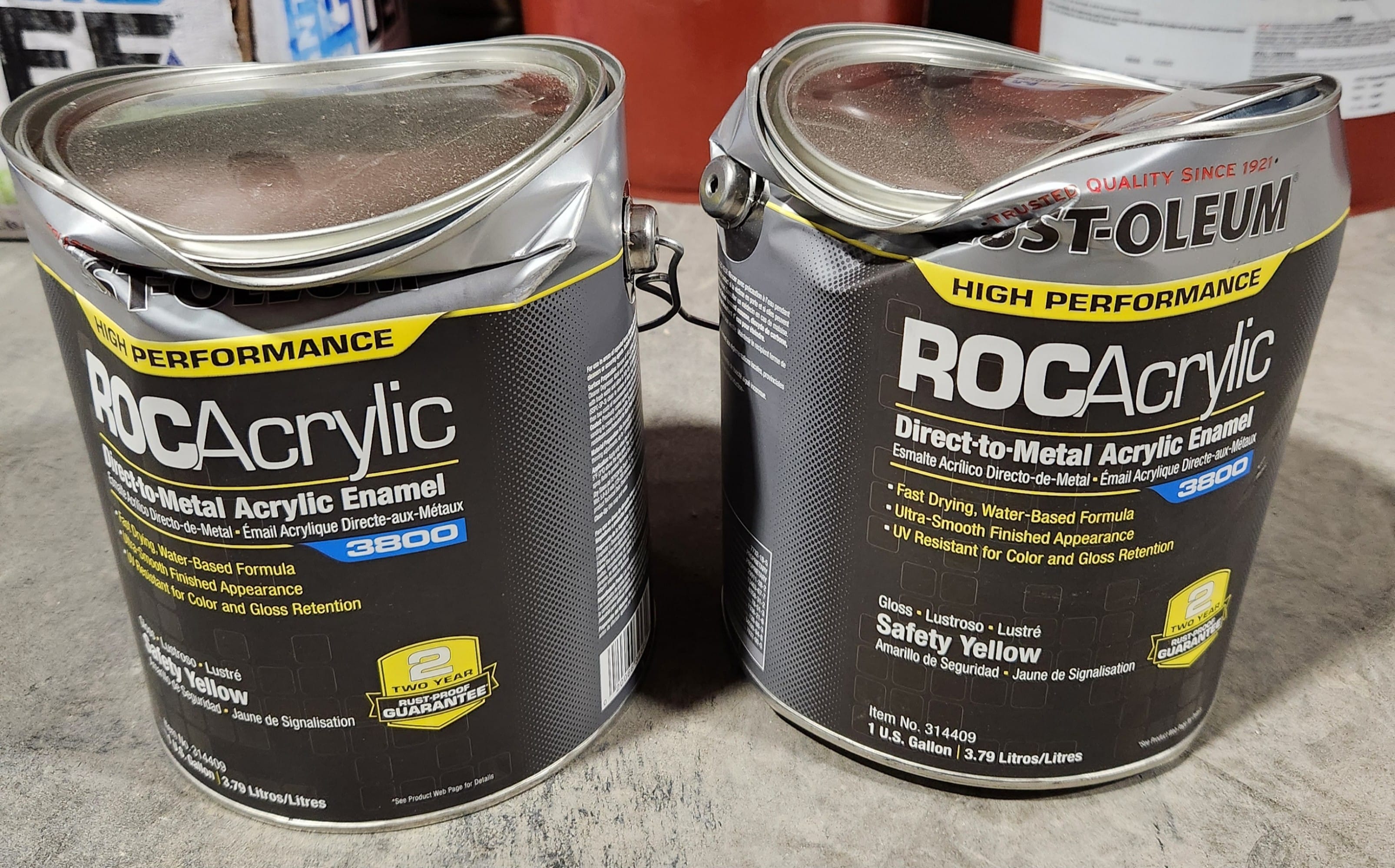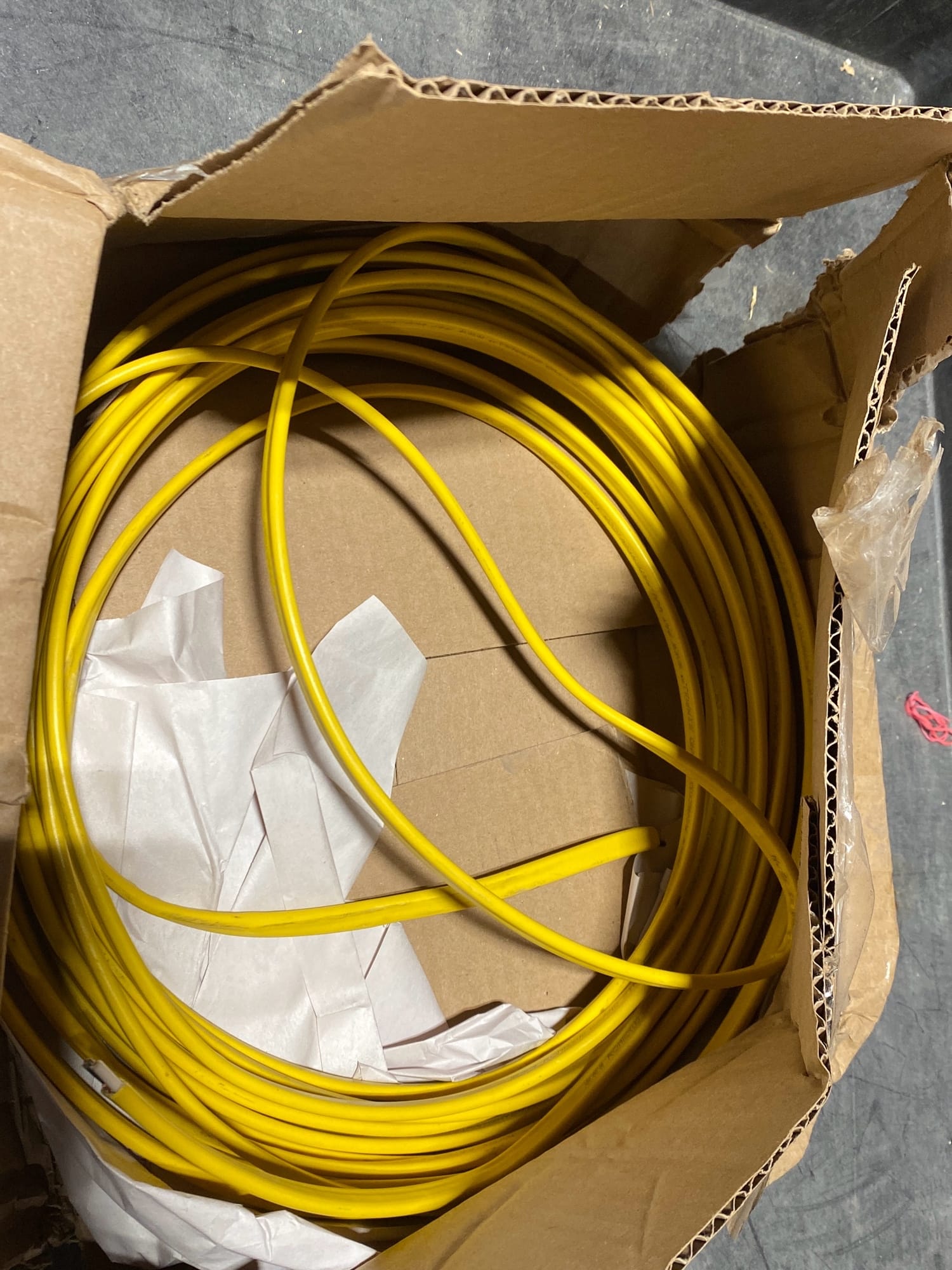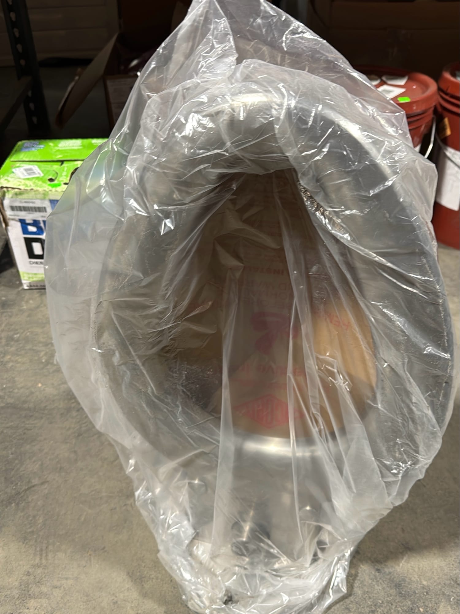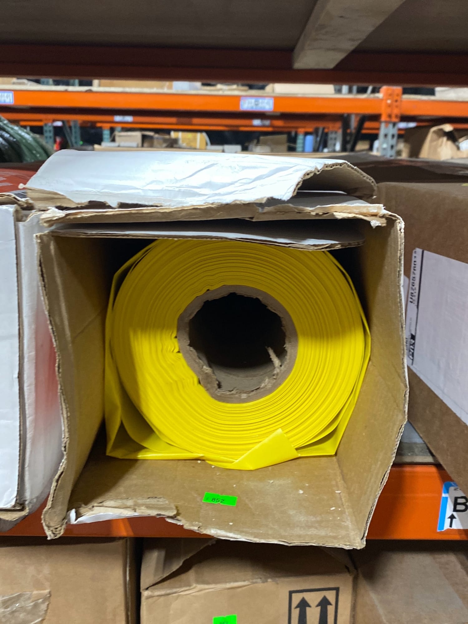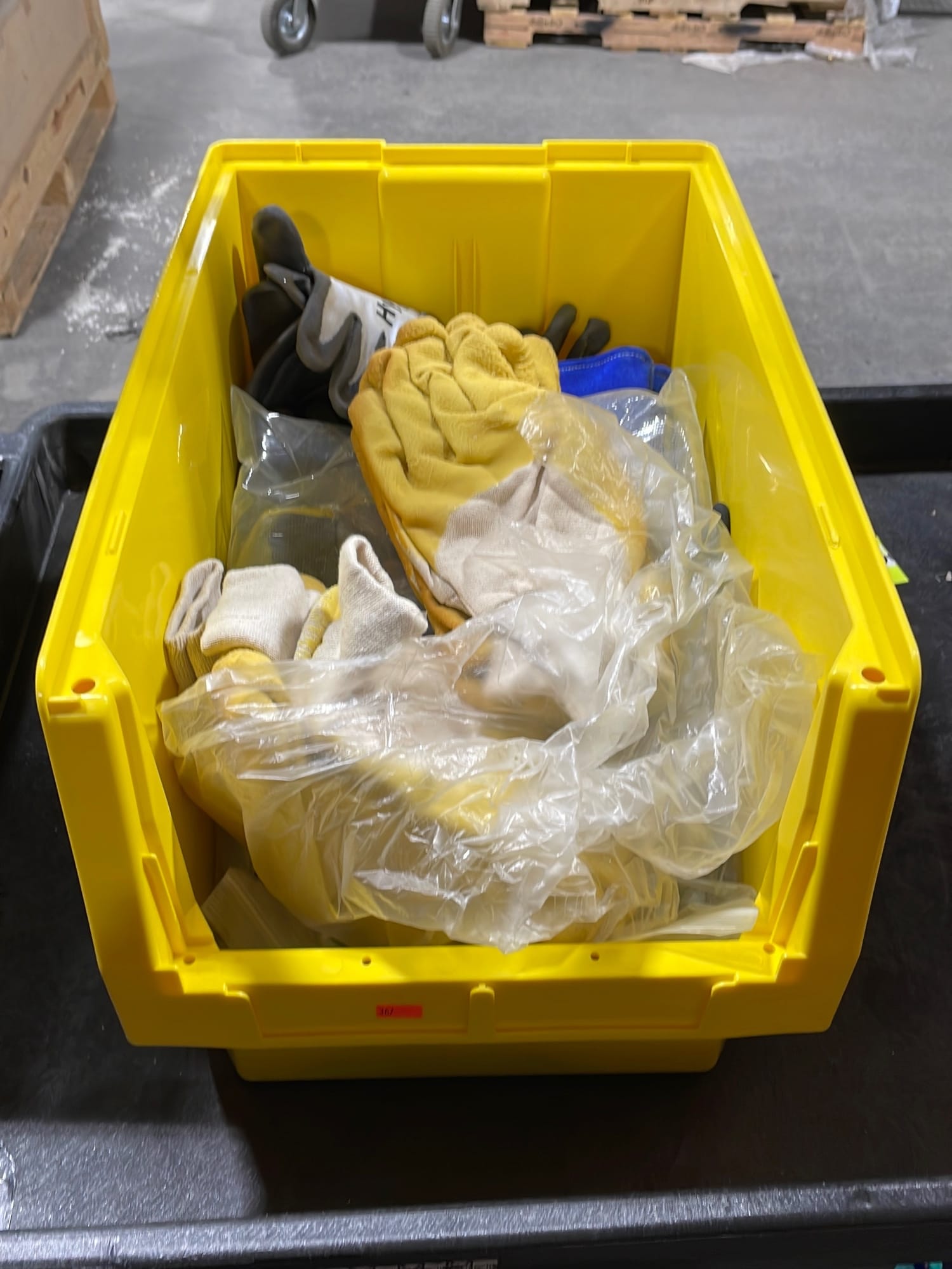 1635 Rubbermaid 50 gal yellow bin, wheels missing