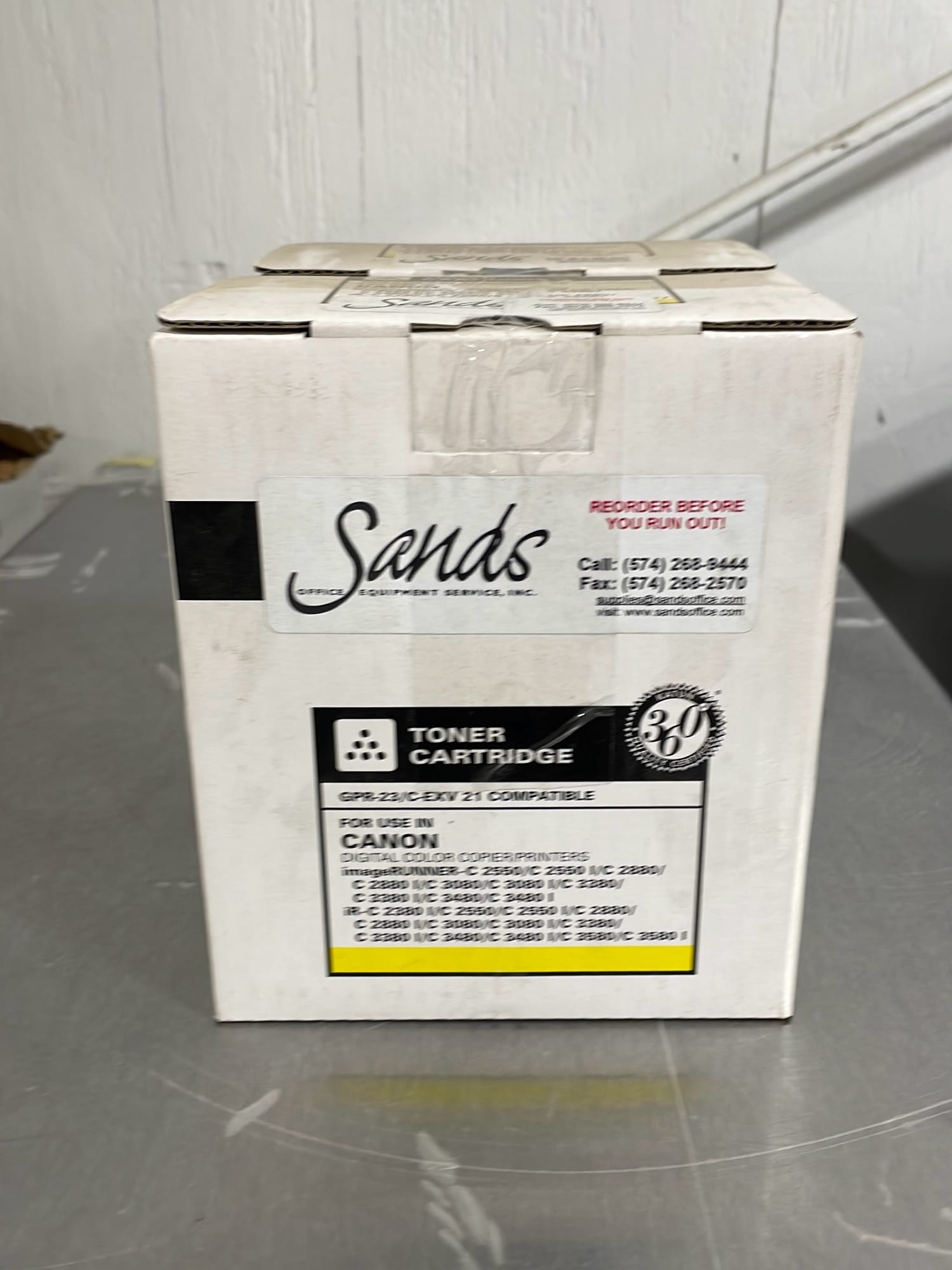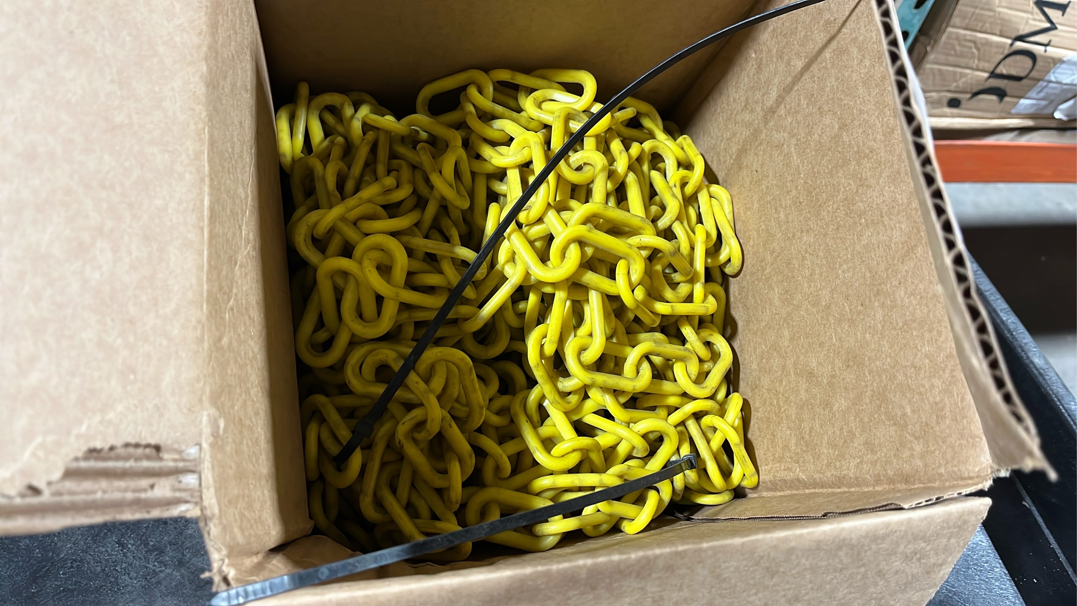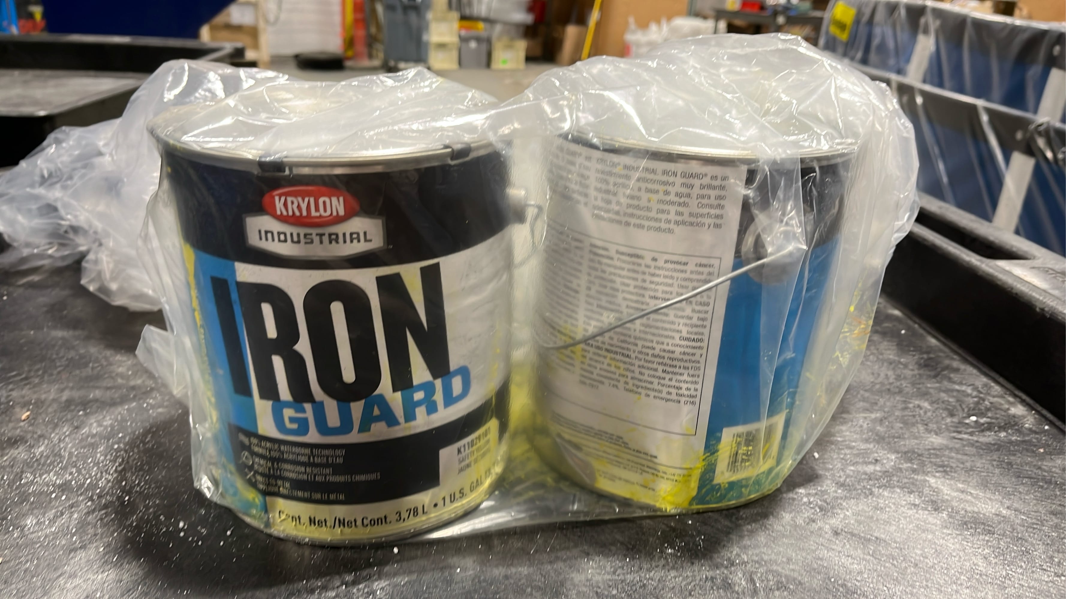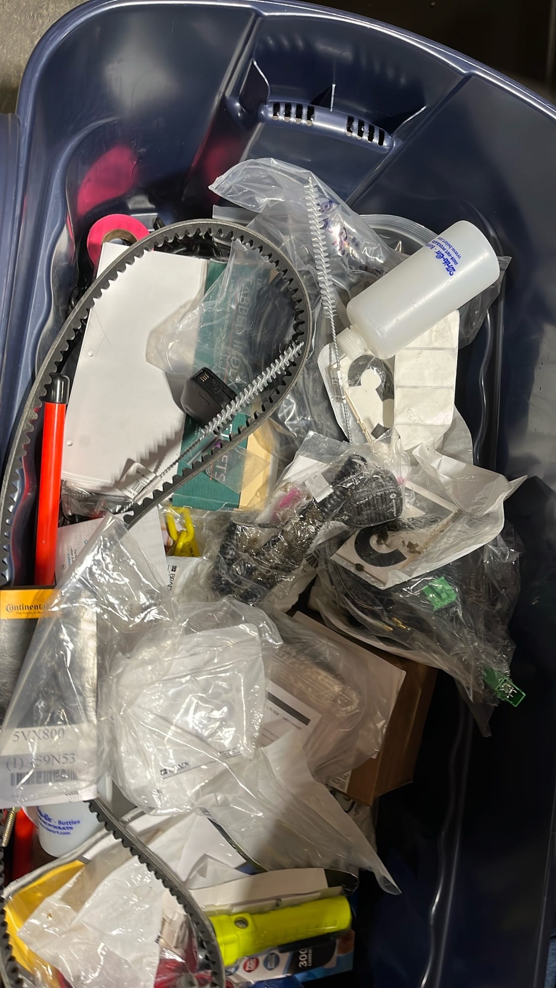 1635 Rubbermaid 50 gal yellow bin, wheels missing