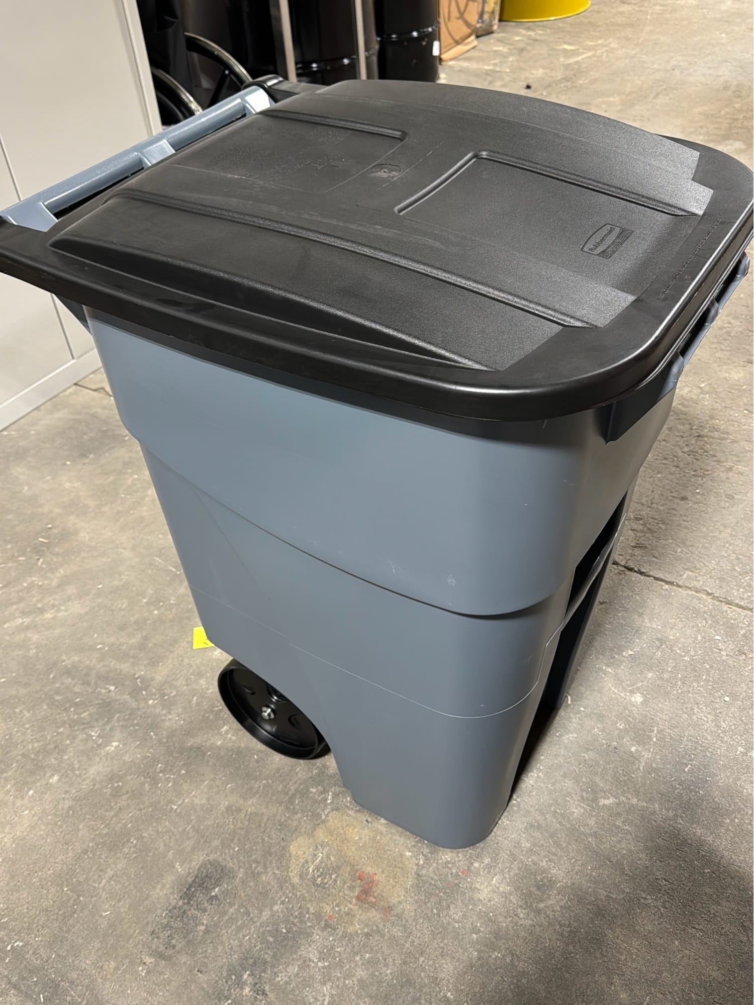 1618 Rubbermaid 50 gal wheeled trash bin with lid