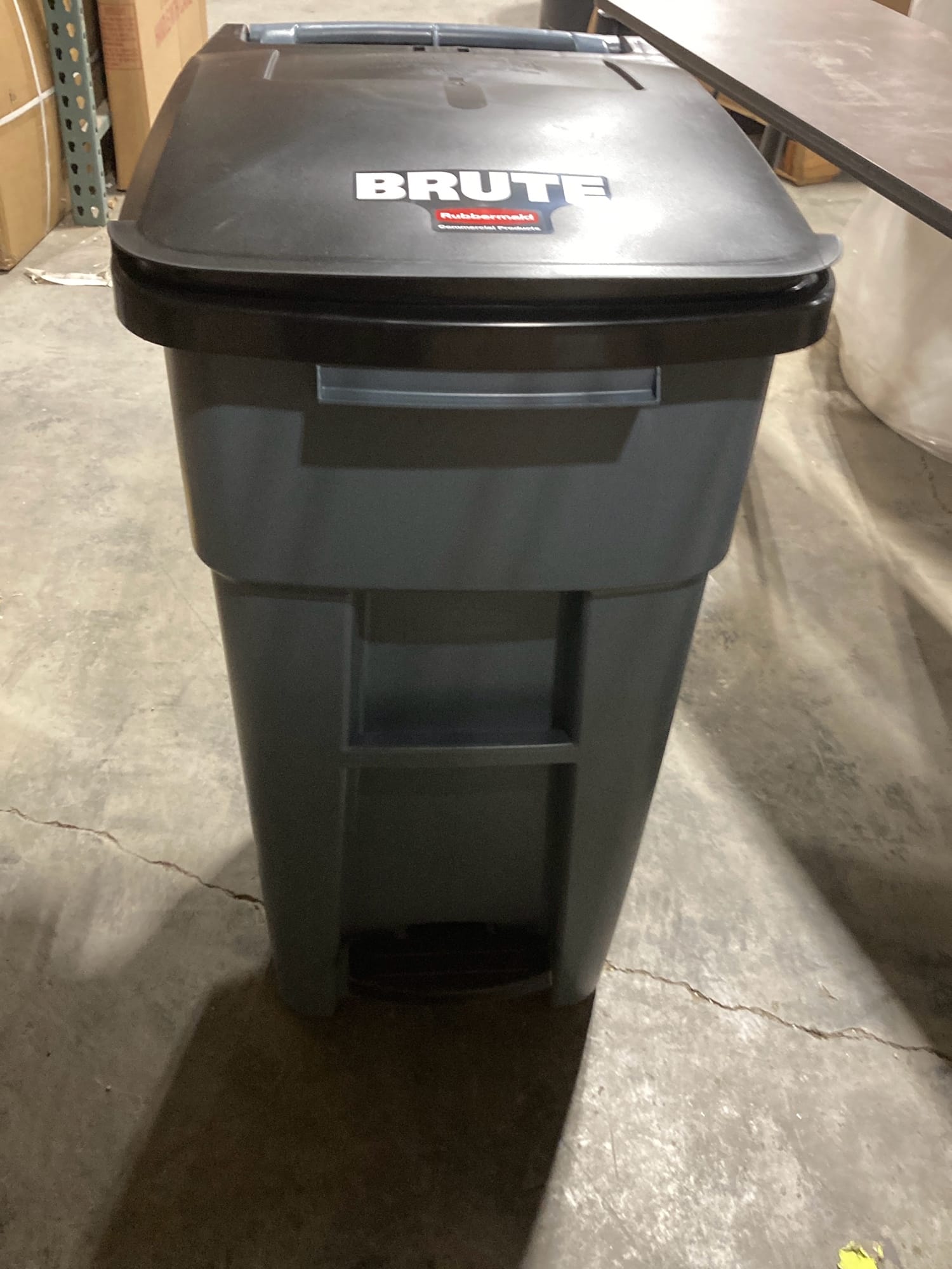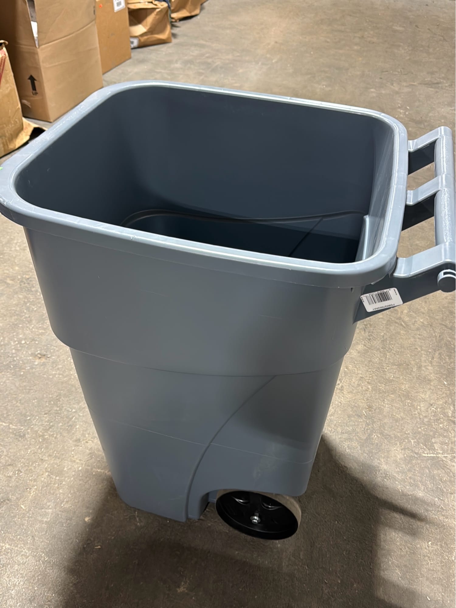 1744 Rubbermaid Commercial Products Brute Step-On Rollout Trash/Garbage Can/Bin with Wheels, 32 GAL, for Restaurants/Hospitals/Back of House/Warehouses/Home, Gray - One Wheel Broken