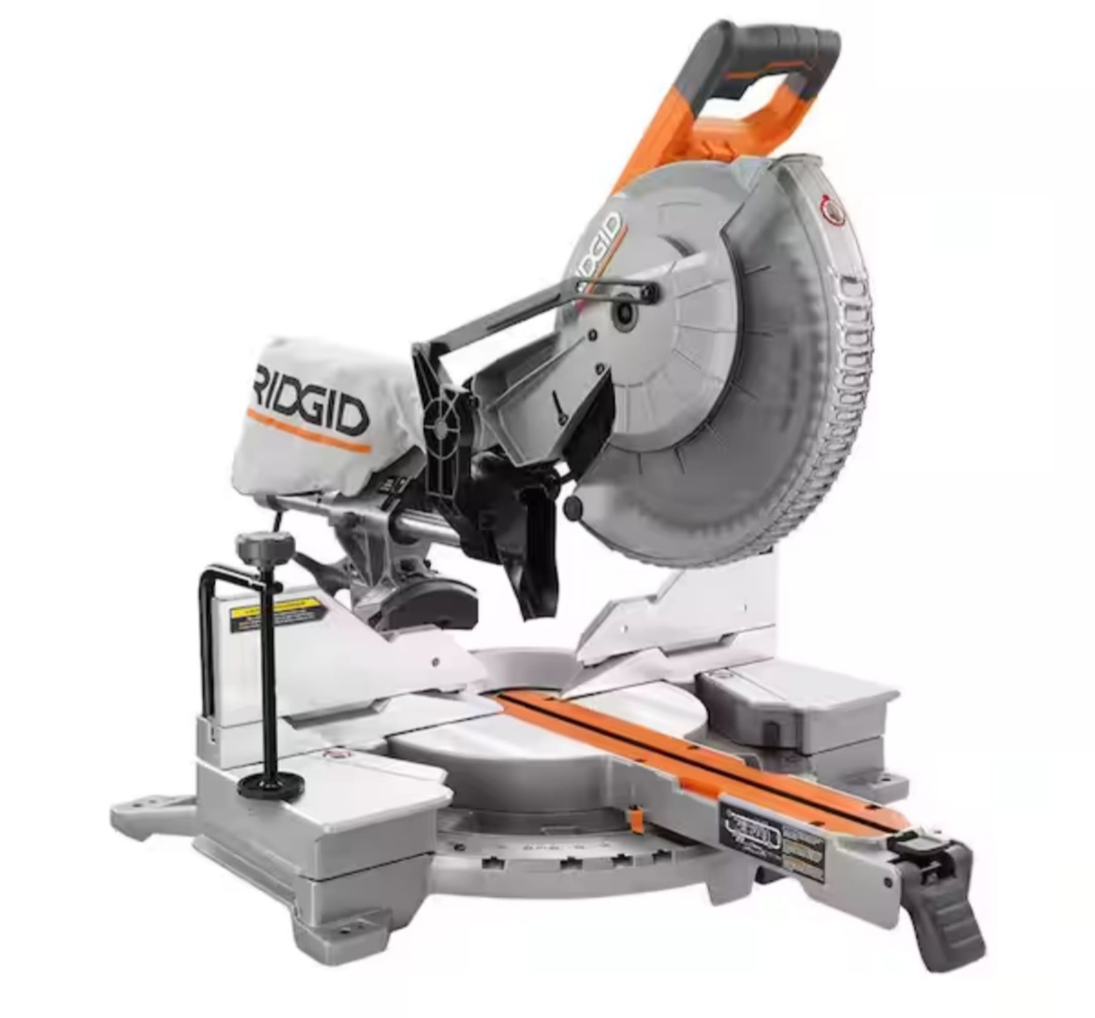 1724 "RIDGID 15 Amp Corded 12 in. Dual Bevel Sliding Miter Saw with 70 Deg. Miter Capacity and LED Cut Line Indicator"