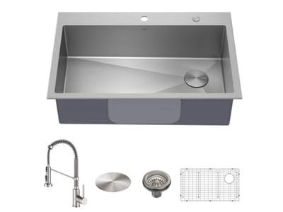 77 "VEVOR Kitchen Sink 304-Stainless Steel Drop-in Sinks 30 in. Undermount Single Bowl Basin with Ledge and Accessories"