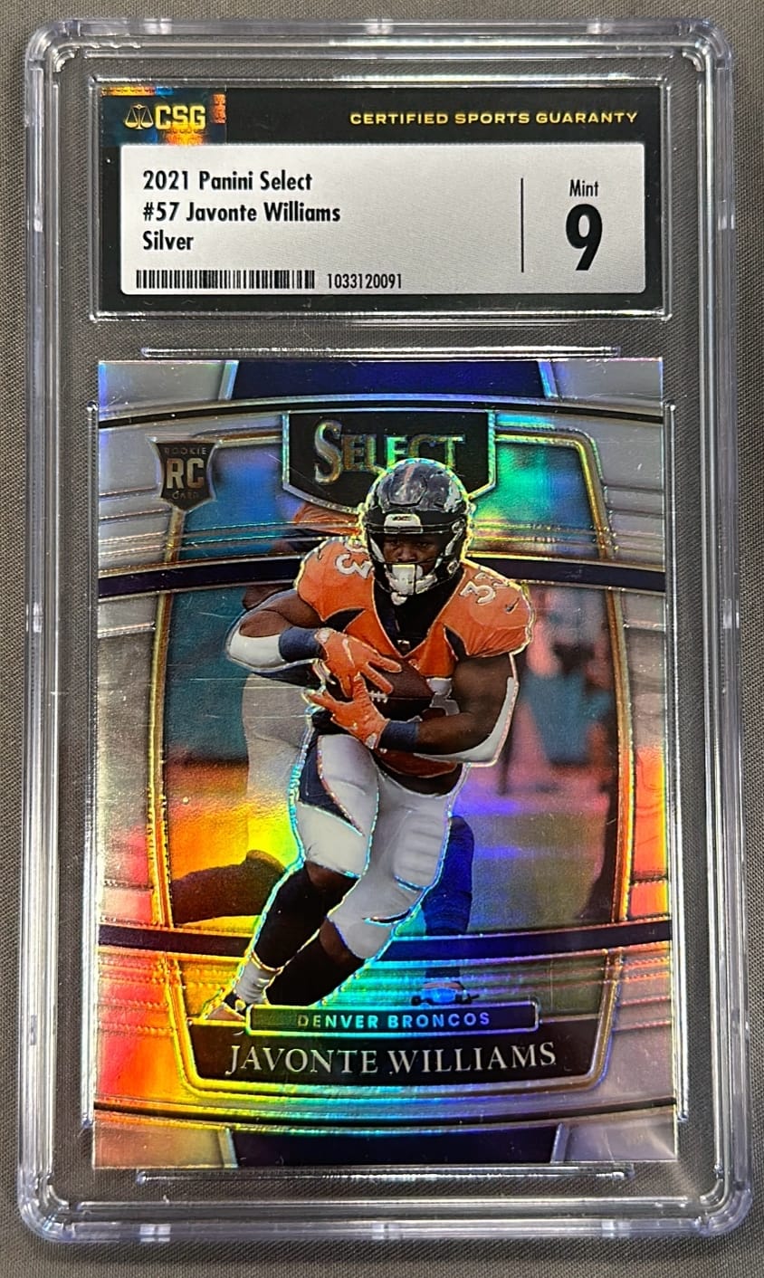 990 Graded 2021 Panini Select #57 Javonte Williams Silver Mint 9 Football Card