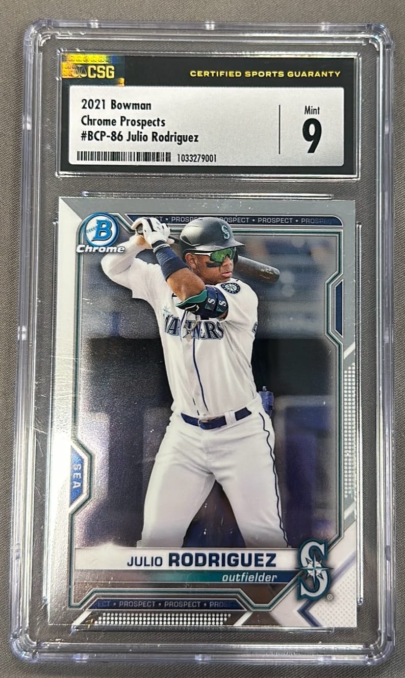 993 Graded 2021 Bowman Chrom Prospects #BCP-86 Julio Rodriguez Mint 9 Baseball Card