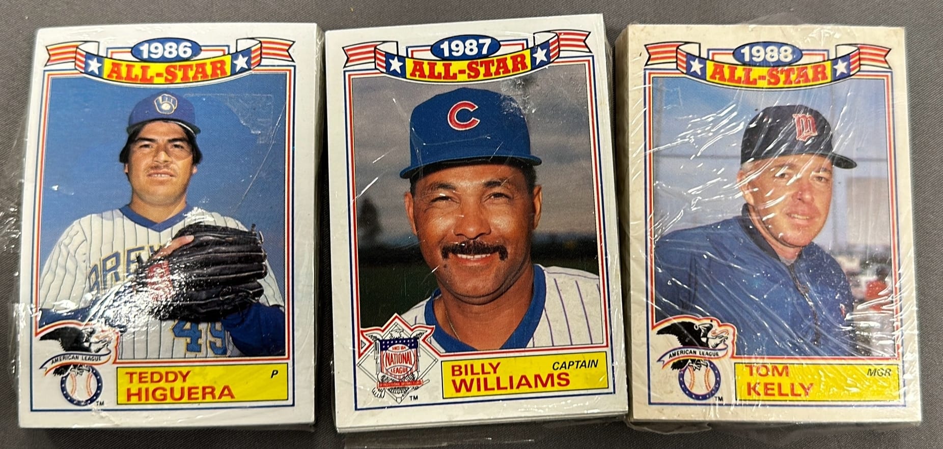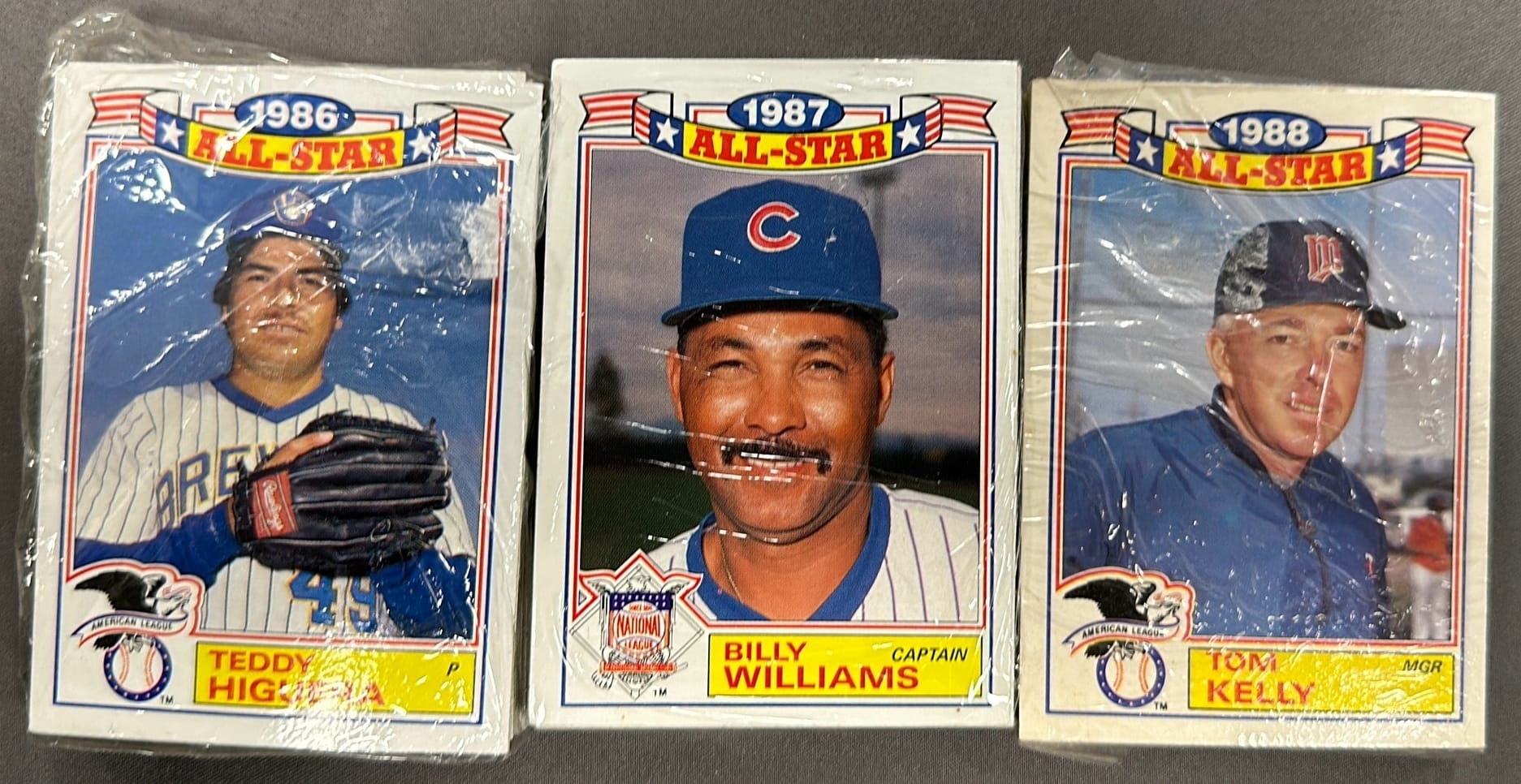 1044 3- 1986, 1987, 1988 All Star Baseball Card Packs inc. Teddy Higuera, Billy Williams, Tom Kelly