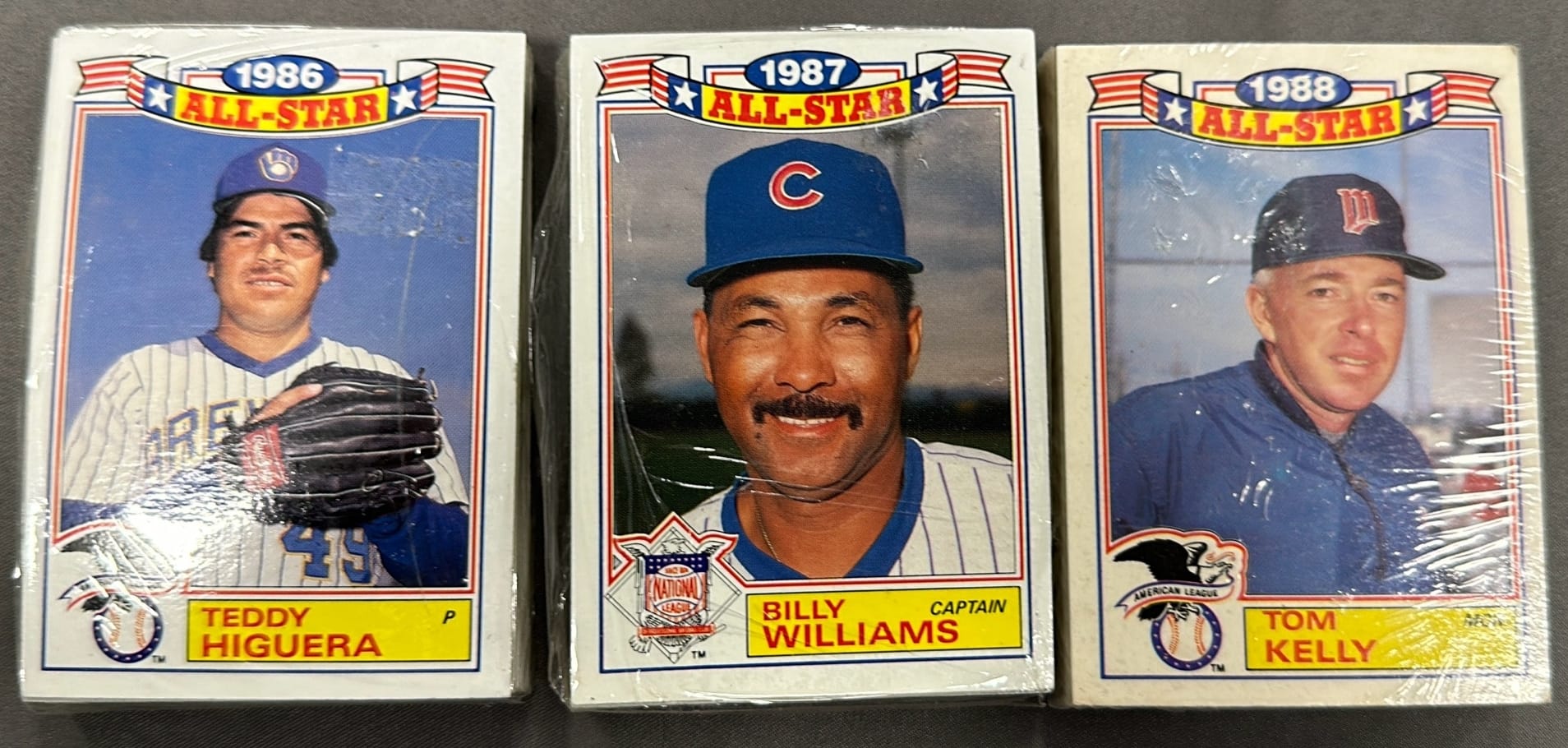 1045 3- 1986, 1987, 1988 All Star Baseball Card Packs inc. Teddy Higuera, Billy Williams, Tom Kelly