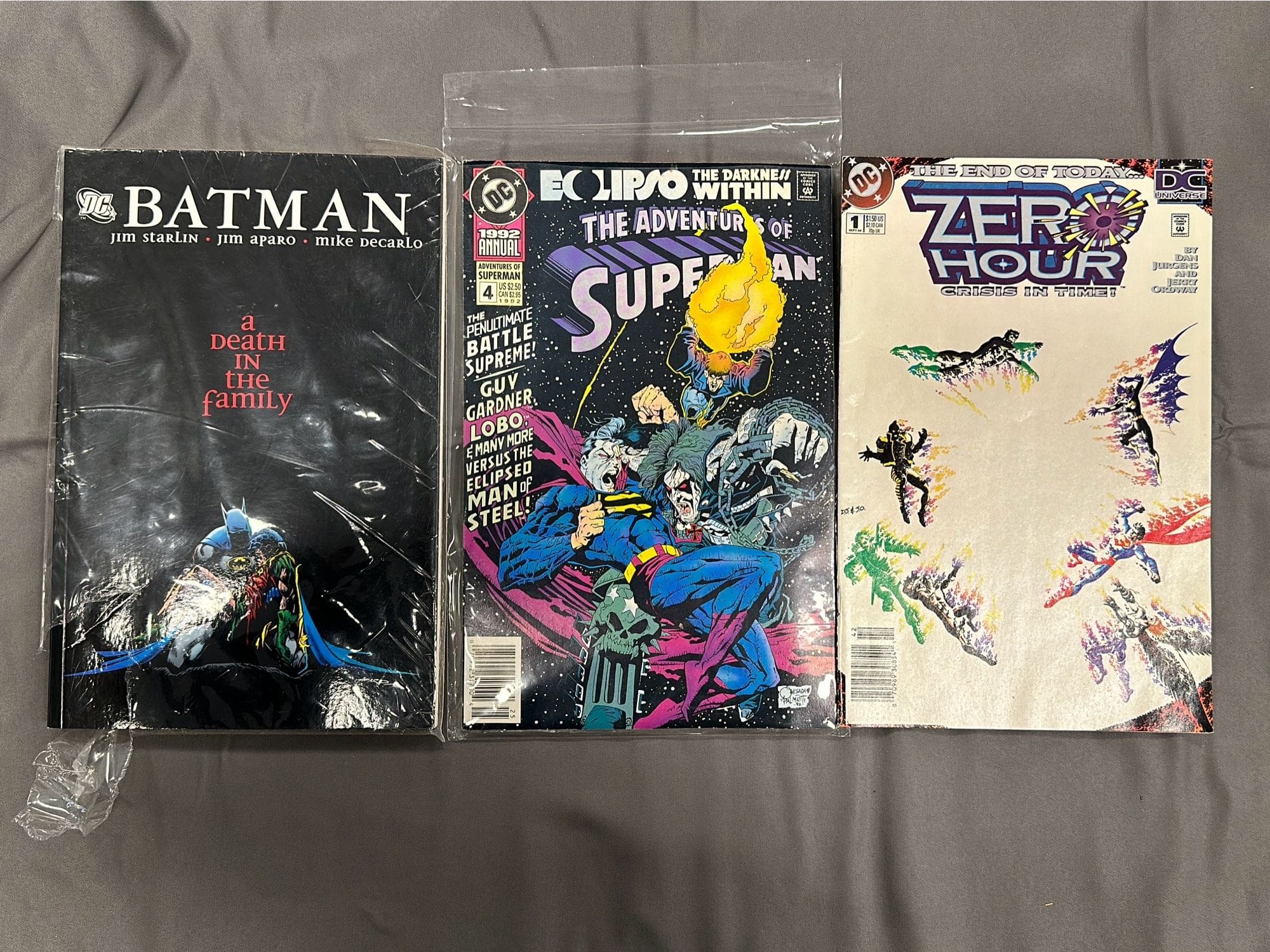 1611 3-DC Zero Hour, Adventures of Superman, and Batman Comic Books