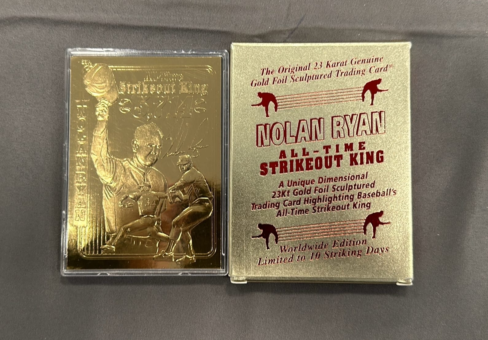 1641 Nolan Ryan 1995 Alltime Strike Out 23kt Gold Foil Trading Card with Box