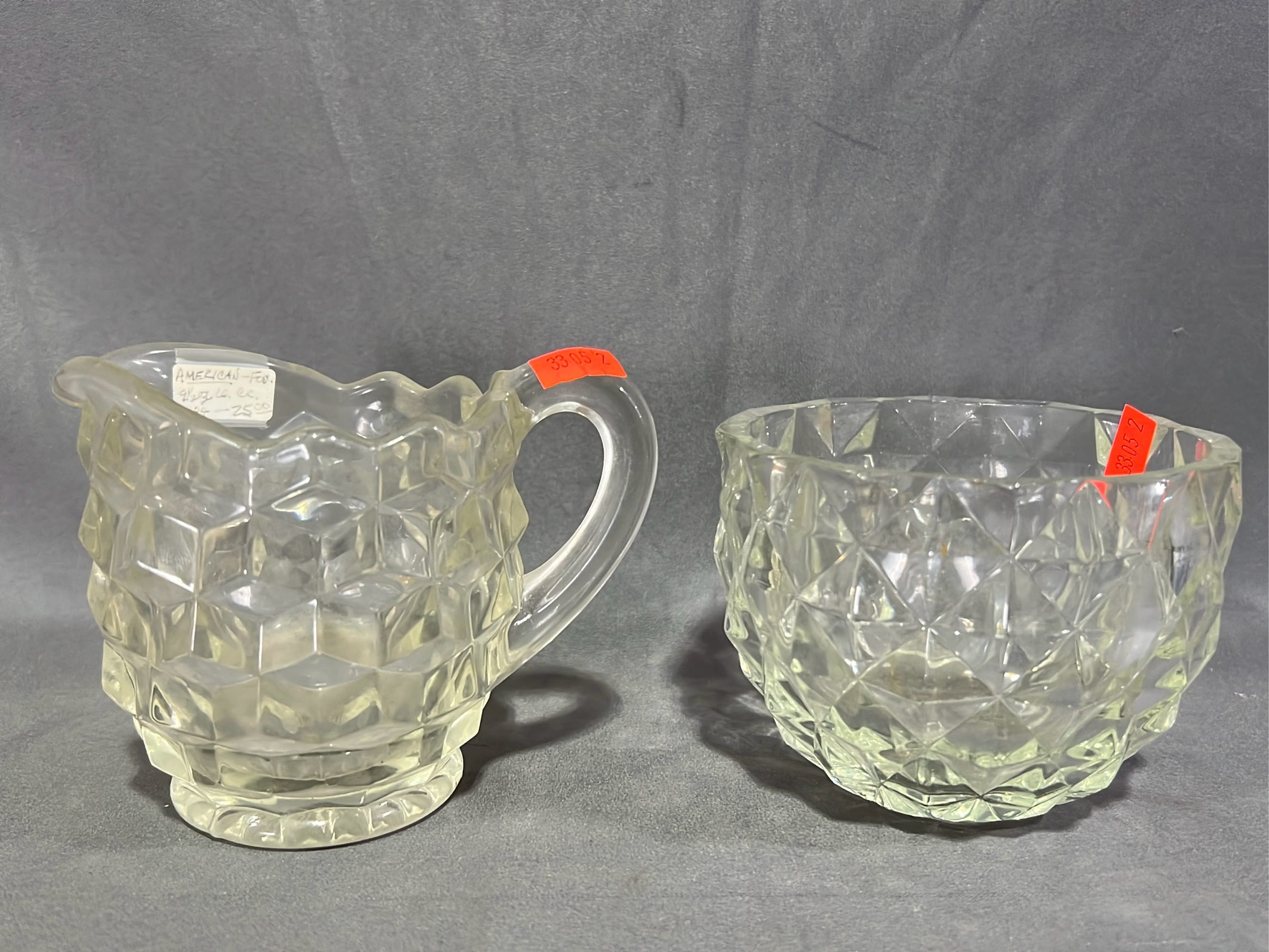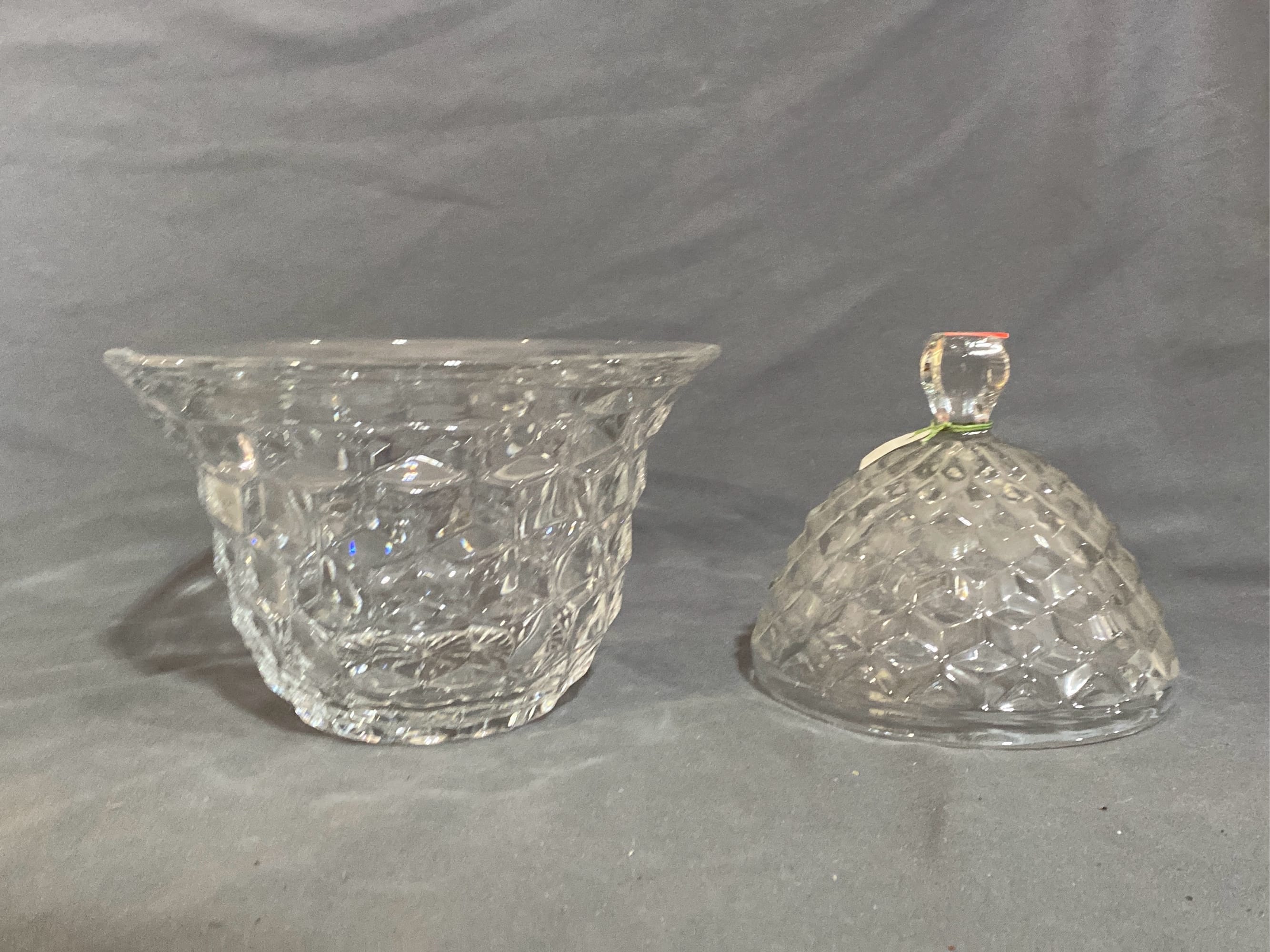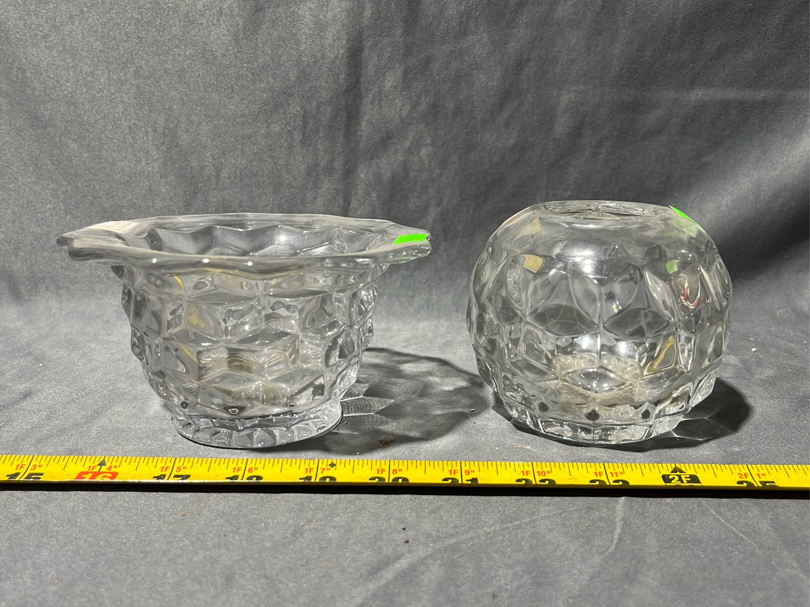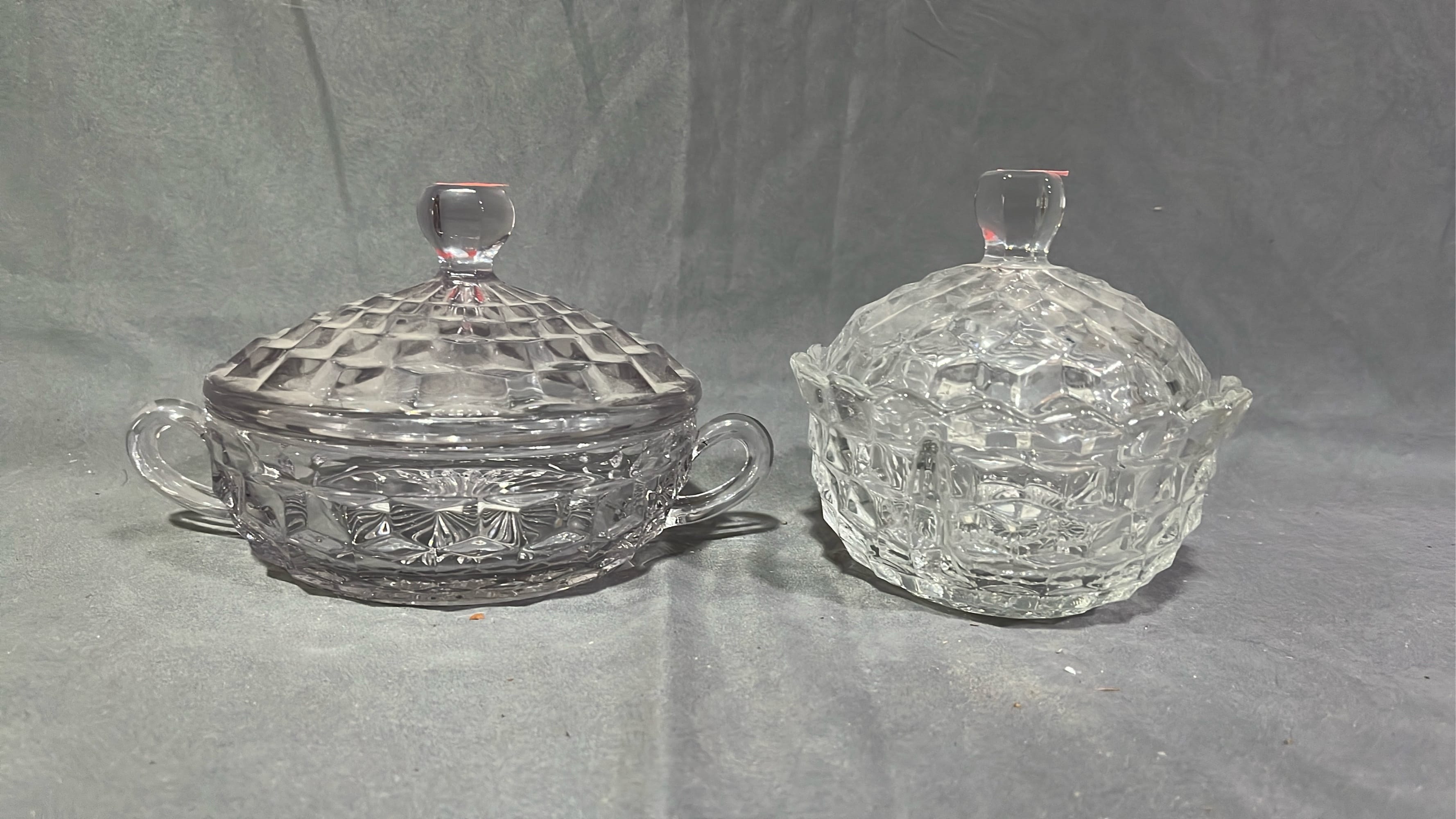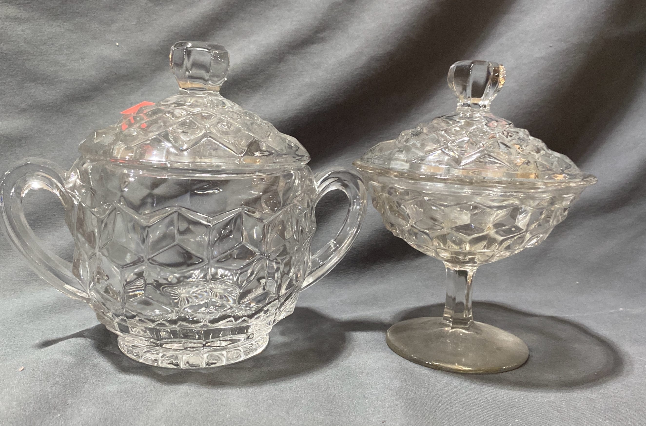 3002 Fostoria American Sugar 3.5”x5” & Pedestal Covered Dish 4”x5”