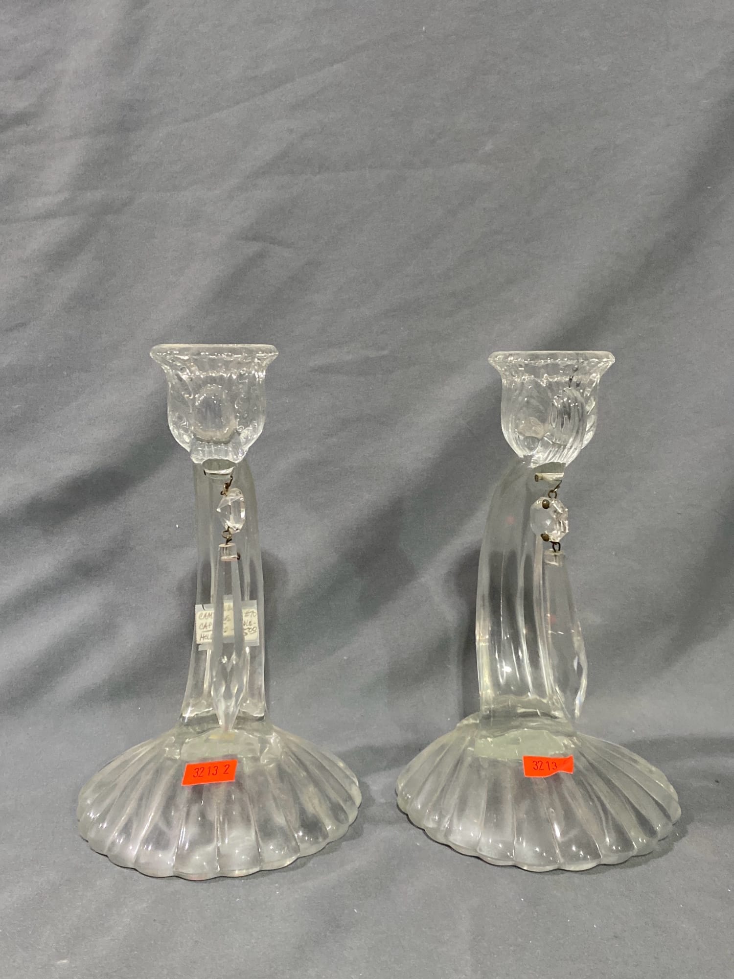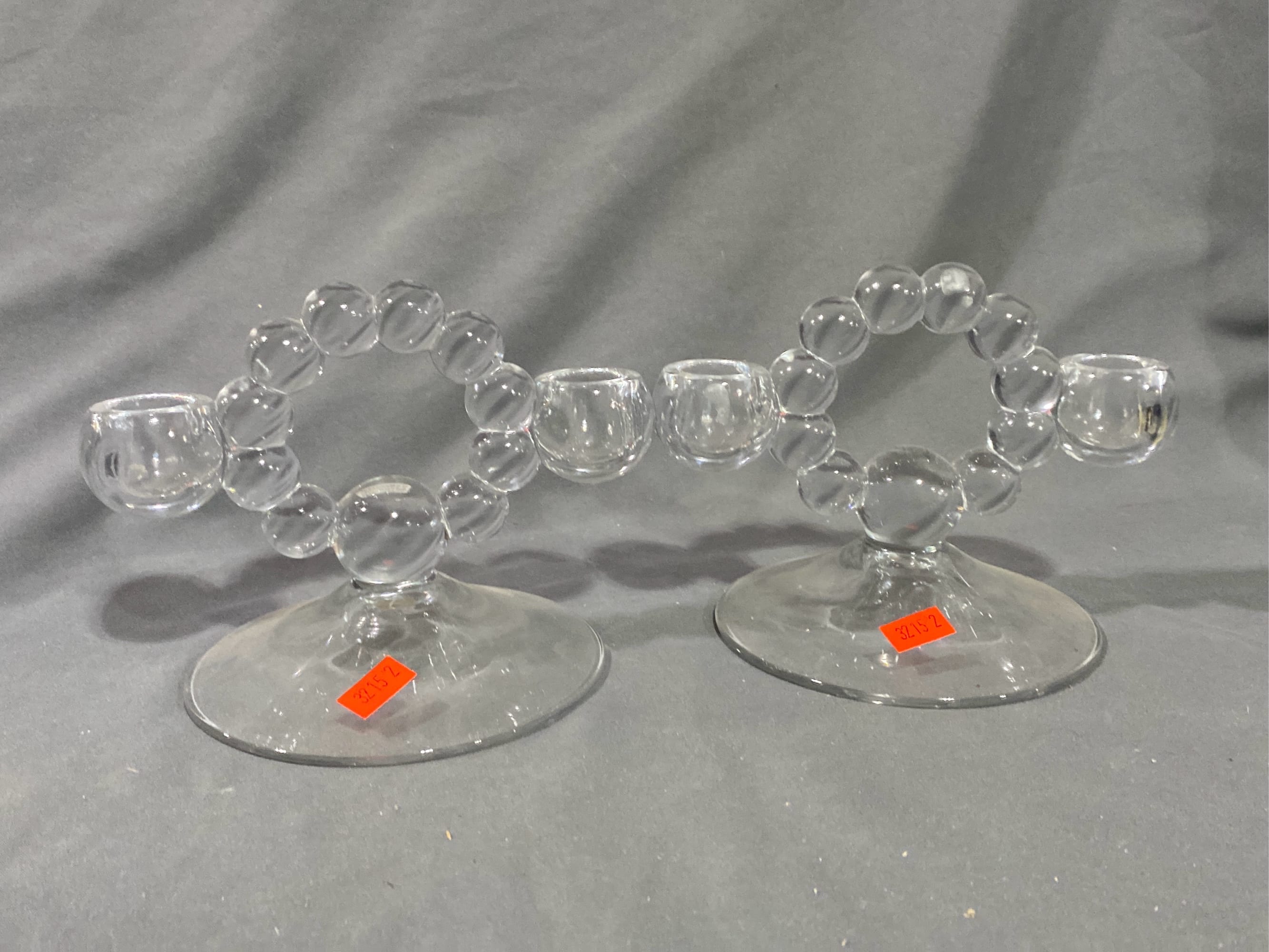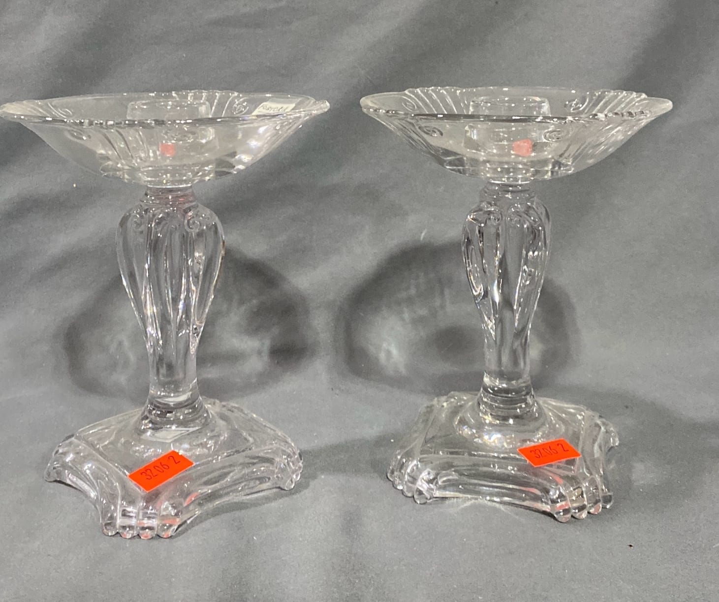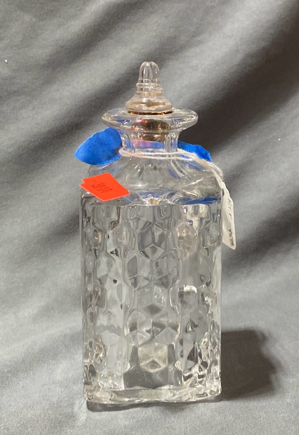 3005 Two - Fostoria American Perfume Bottles 6” (both have chips on stoppers)
