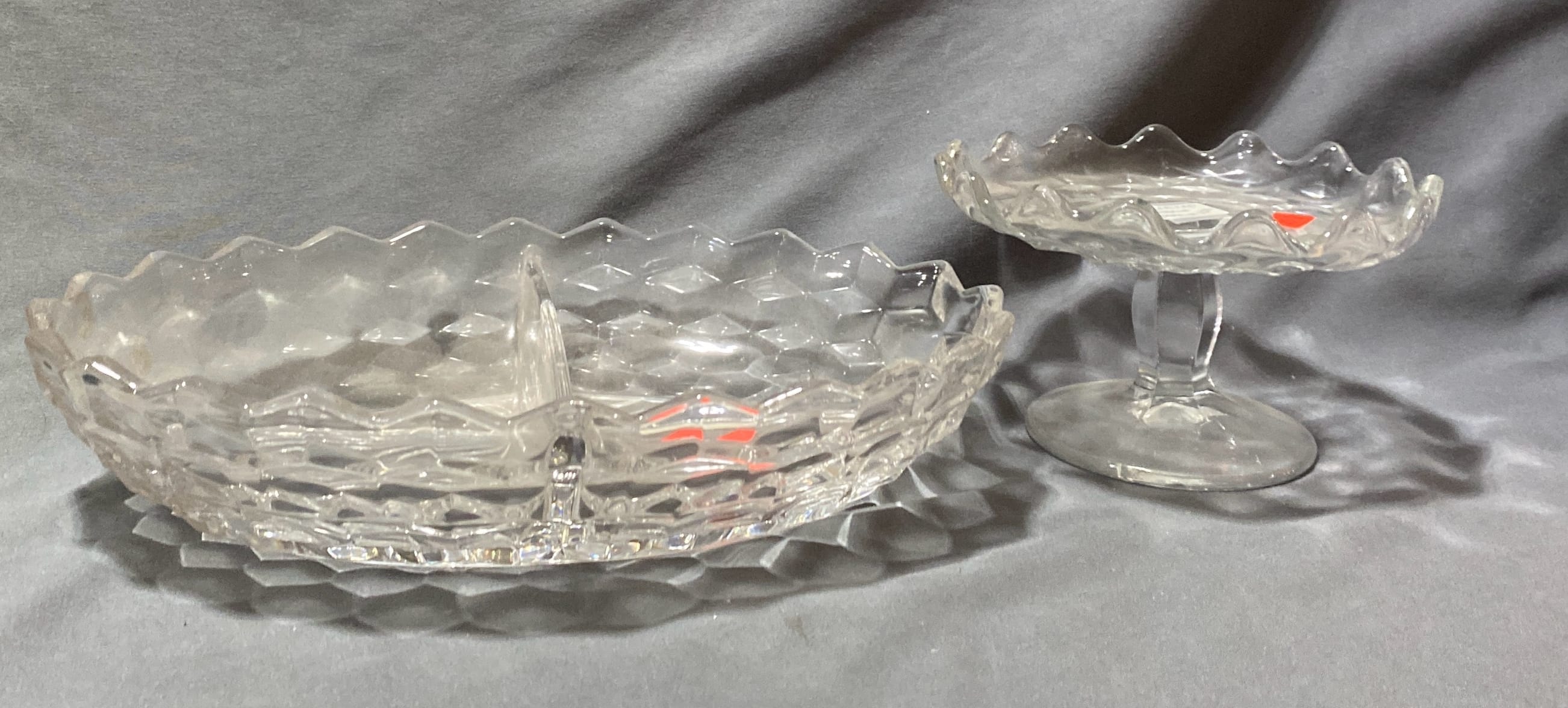 3007 Fostoria American Cheese Compote 5.5” & Divided Vegatable Dish 10”