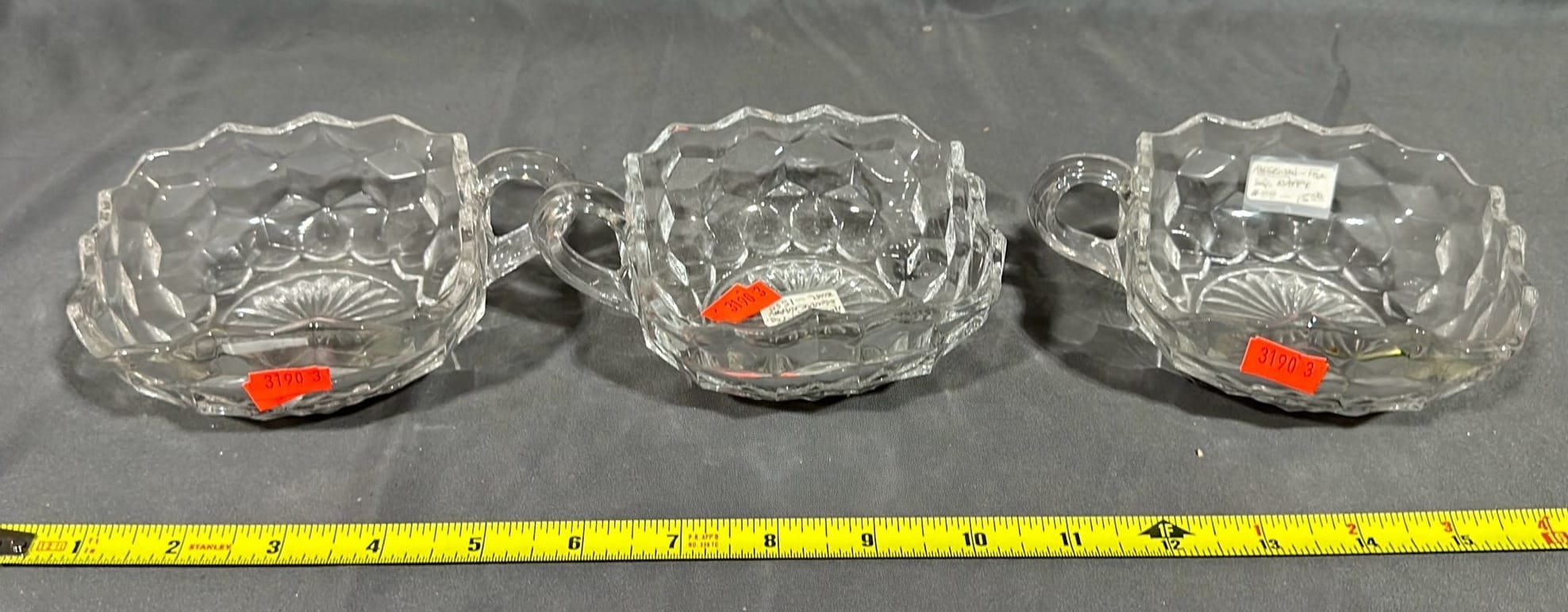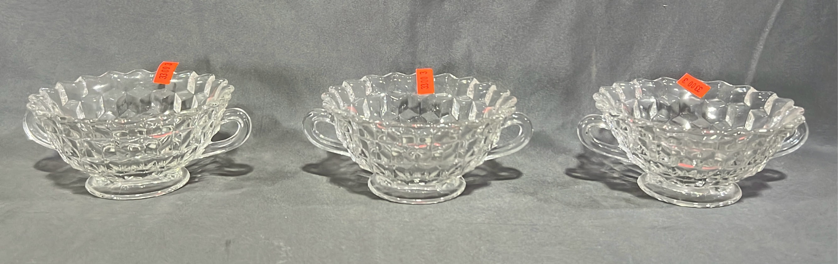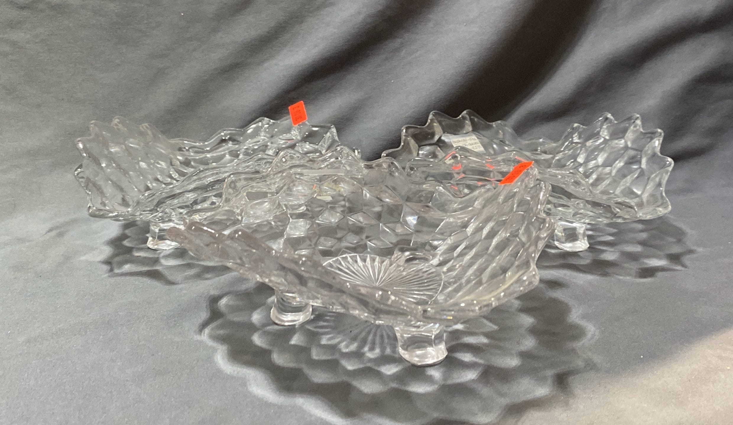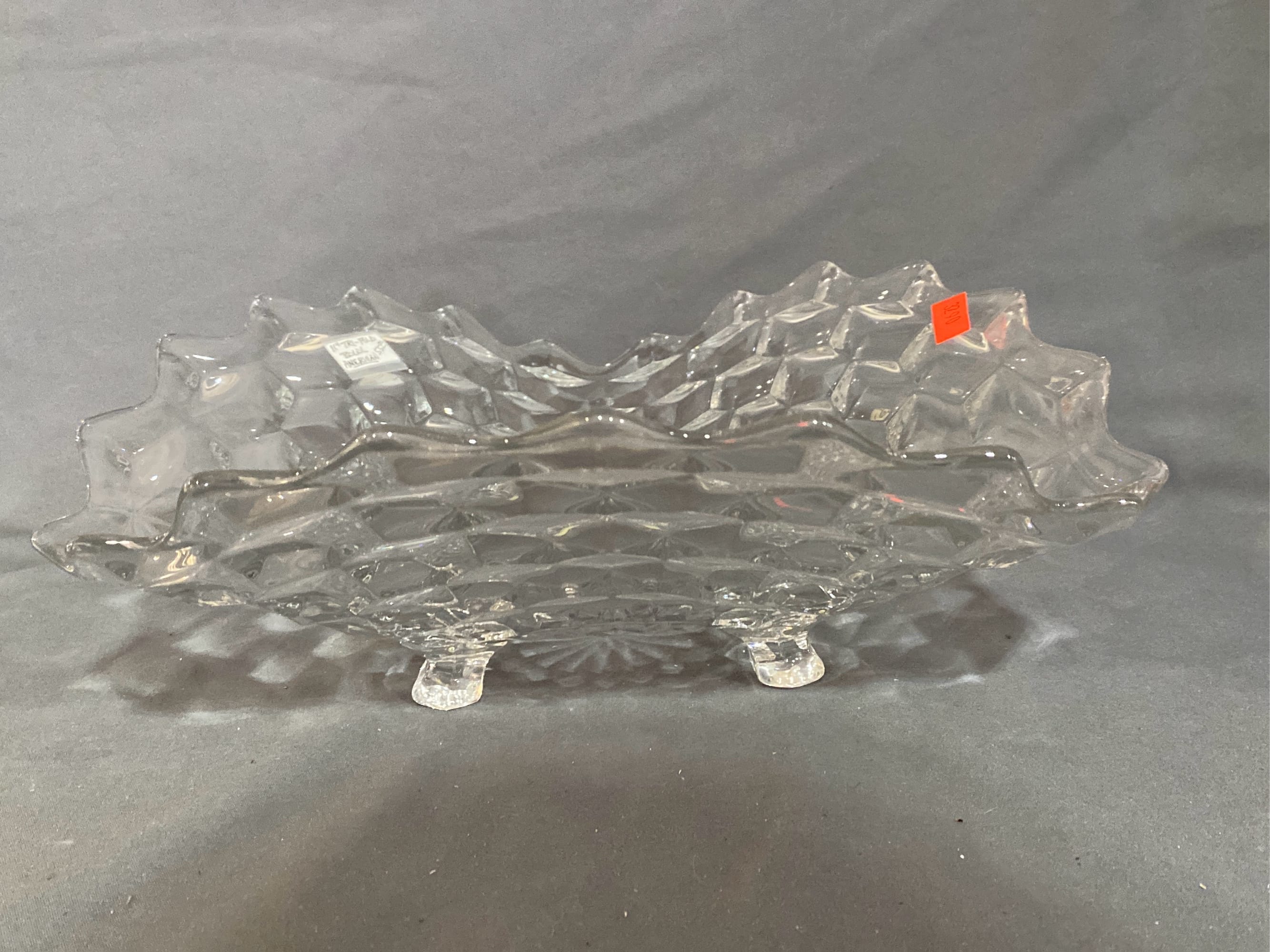 3008 Fostoria American Sm Tri-Corner Footed Dish 7”, 7.5”