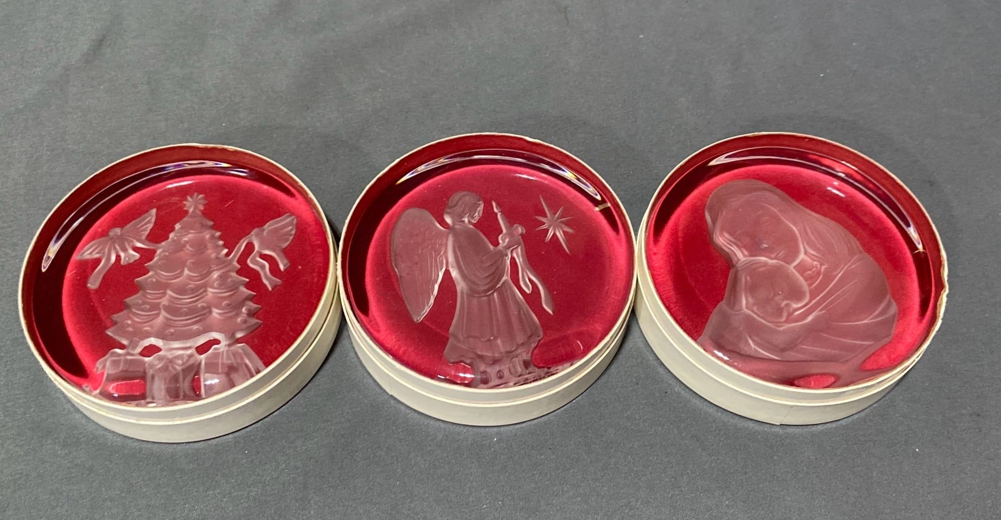 3013 Three - Danbury Mint Lead Crystal Paperweights 3.25”