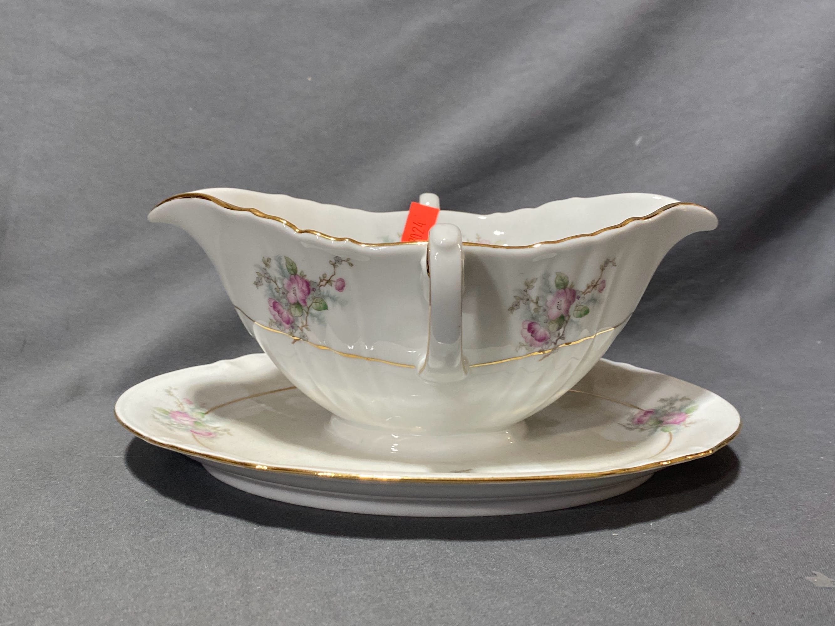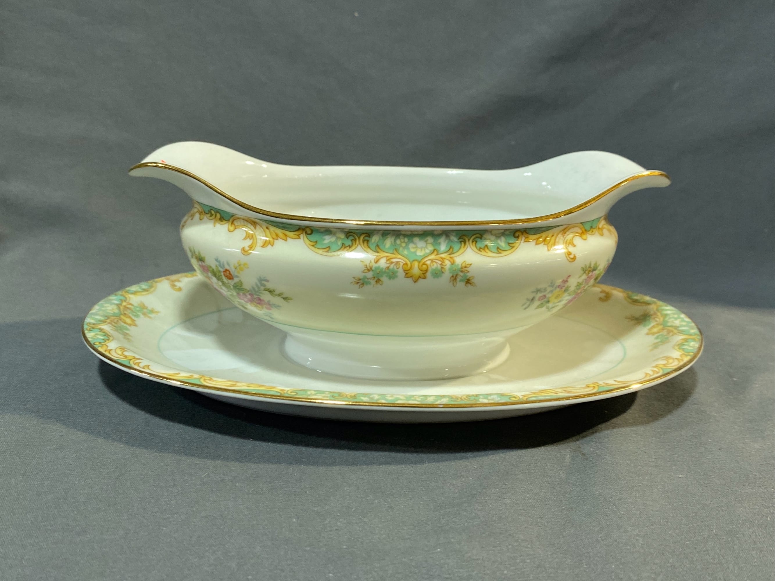 3031 Noritake China “Jasmine” #585 Gravy Boat with attached Plate 9”