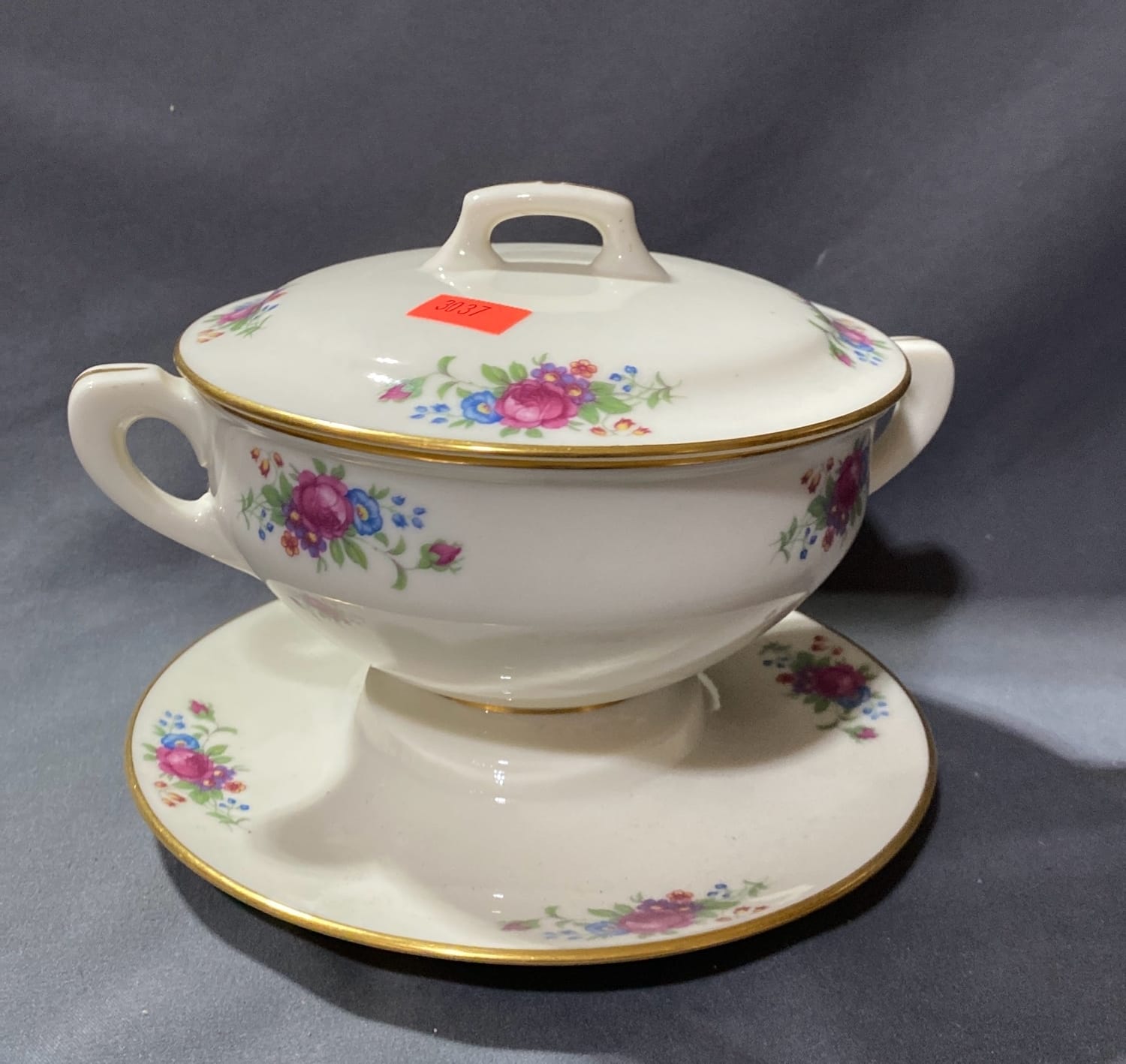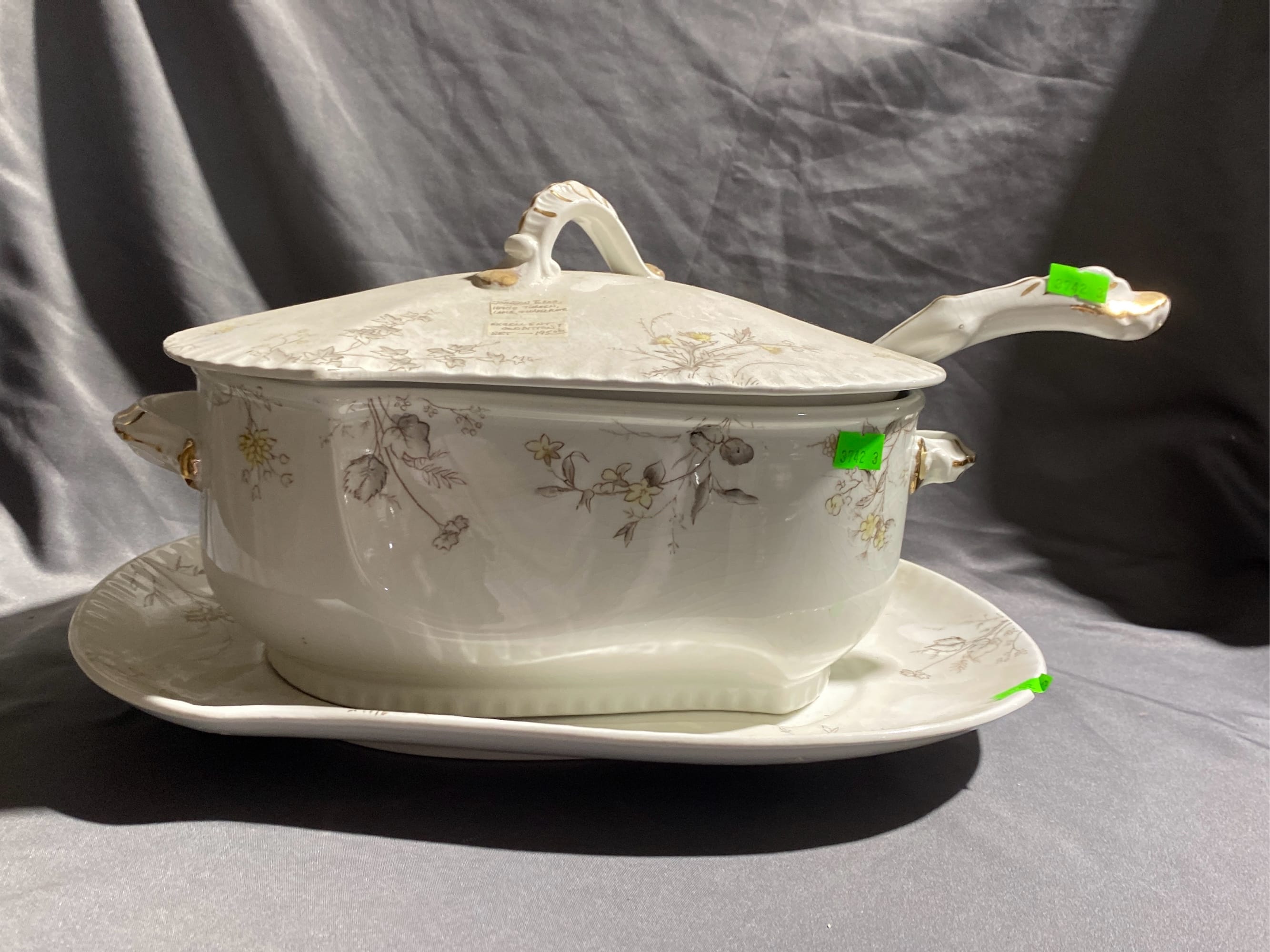 3742 Johnson Bros Soup Tureen 4.5" x 9 ", with Ladle, under plate 12" x 8"