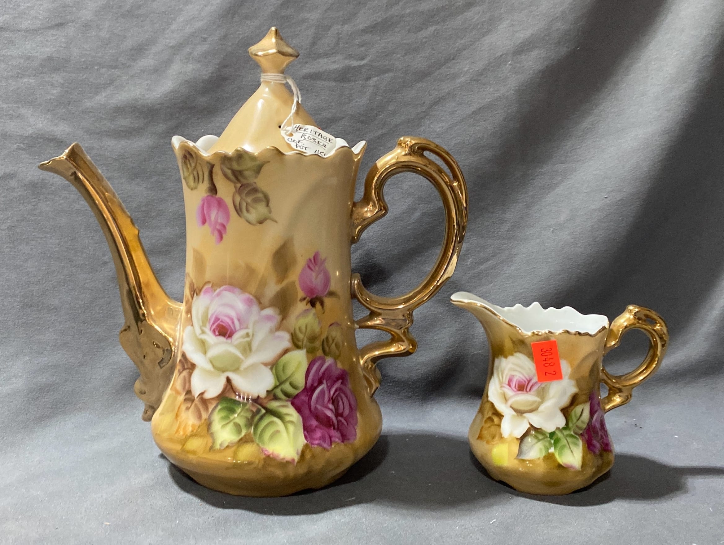 3048 Lefton China Cream #NE 1867 3.5” & Heritage Roses Coffee Pot #NE1866 9”